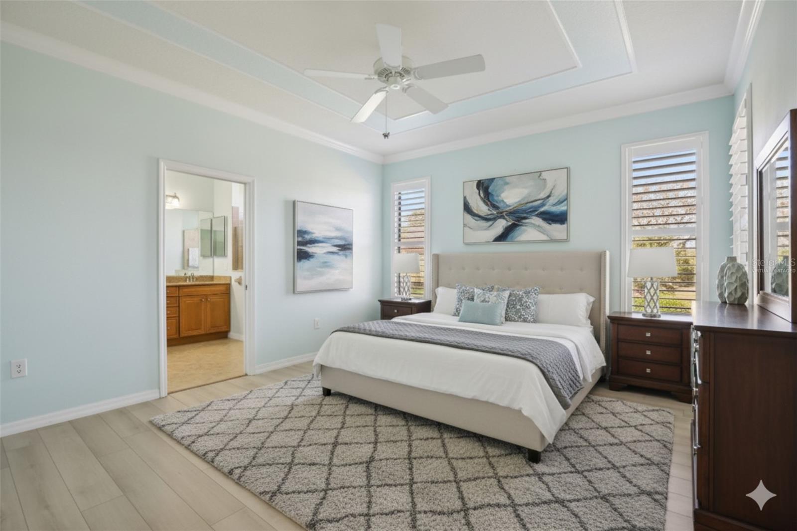 One or more photo(s) has been virtually staged. Welcome home to this sun-drenched, Lake-view home in the gated Venetian Falls community! If you have been searching for a place that feels like a private retreat while still being part of a vibrant neighborhood, this is it. You’ll immediately notice how well-loved this home is, from the stylish tile flooring in the main living areas to the warm bamboo floors in the bedrooms and den. The kitchen is a true standout, updated with rich wood cabinetry, granite countertops, and stainless steel appliances—including a convection oven for those who love to cook. Step outside to the massive 16x16 extended lanai, where you can sip your morning coffee or enjoy a quiet evening while looking out over the peaceful lake. Beyond your front door, life is just as inviting. The community offers a 16,000 sq. ft. clubhouse where there is always something happening, from fitness classes and lap swimming to billiards and arts and crafts. Whether you want to practice your short game on the putting green or take a stroll along the scenic walking paths, the options are endless. Plus, with a low monthly fee that covers lawn care, cable, and roof cleaning, you can spend less time on chores and more time enjoying the nearby Venice beaches and downtown dining. This home comes move-in ready—come see why so many people love calling this neighborhood home!