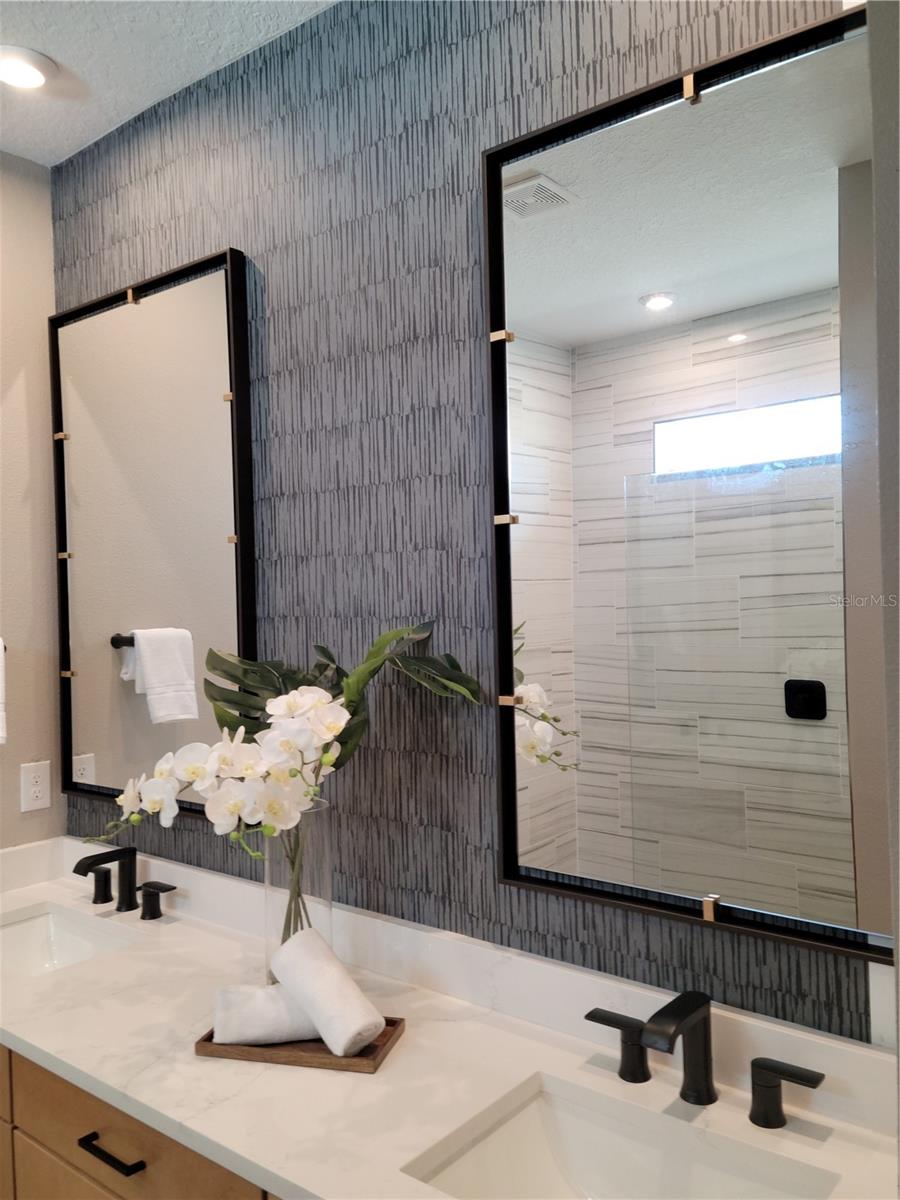 Step into the Sandstone, a beautifully crafted single-family home where natural light spills in, illuminating an open, airy layout designed for both comfort and sophistication. This thoughtfully appointed residence features 2 bedrooms, 2.5 baths, a study, and a spacious 2-car garage, all wrapped in the inviting charm of the Transitional elevation. The kitchen offers a refined, modern palette with soft linen-painted cabinetry featuring soft-close doors and drawers, white quartz countertops with subtle marble-like movement, a large island, and a stacked 6x6 textured tile backsplash that adds a touch of artisanal character. Throughout the main living areas, luxury vinyl plank flooring in a warm, natural wood-inspired tone provides both beauty and durability, while the bedrooms feature plush, flax-beige carpeting for added comfort. The owner’s suite feels like a retreat with its tray ceiling, spacious walk-in closet, dual sinks, and a walk-in shower fully tiled to the ceiling in a soft stone-gray hue with a coordinating mosaic shower floor. Bath 2 includes a recessed shower in place of a tub, continuing the upgraded tilework. Additional highlights include 8' interior doors, brushed-nickel finishes throughout, a pre-plumbed garage utility tub, a powder room, impact-rated windows, and a wide 12' sliding glass door opening to the screened lanai with paver flooring—perfect for quiet mornings or evening breezes. Residents also enjoy access to an impressive 11-acre amenity campus featuring a resort-style pool, lap pool, spa, pickleball and bocce courts, fitness studios, gathering lawns, scenic lakefront spaces, plus a vibrant dining and social scene with the Bright Bar and Daily Drip café—perfect for coffee, cocktails, and community connection. Brightmore’s exceptional location places you just minutes from Downtown Wellen’s waterfront dining, shopping, concerts, and events, and a short drive from Gulf beaches including Venice Beach, Caspersen Beach, Nokomis Beach, and Blind Pass, with access to more than 30 miles of scenic walking and biking trails throughout Wellen Park. This is the ideal blend of elevated living, exceptional design, and an amenity-rich lifestyle. ***Photos, renderings and plans are for illustrative purposes only and should never be relied upon and may vary from the actual home. Pricing, dimensions and features can change at any time without notice or obligation. The photos may be from a furnished model home and not the home offered for sale.