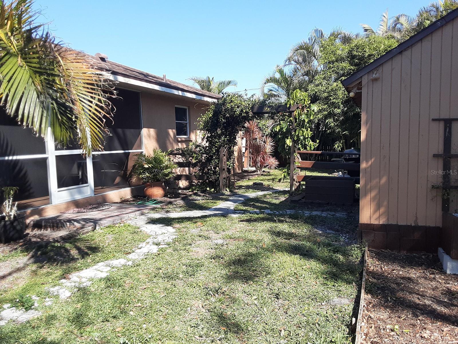 Welcome to your Florida hot tub dream home! This home has been immaculately maintained. It is being sold fully furnished and move-in ready for your permanent vacation or potentially as a short-term vacation rental. It is fully stocked from kitchen to bedding. Tile flooring throughout, with a split floor plan. The backyard creates a secluded tropical oasis with a screened-in lanai, complete with a hot tub to soak your cares away and surrounded by an Areca Palm, Banana Tree, Elephant Ear, and Bamboo Trees. The master bedroom on one side of the home features a walk-in closet and double multi-slide doors opening your space onto the screened lanai and the hot tub. The master bathroom has a full tub and shower. The guest bedroom is on the other side of the home and the guest bathroom features a walk-in shower. The open kitchen has been updated and features a custom wood coffer ceiling, dishwasher, microwave, range, garbage disposal, and tons of cabinet space. From the open design of the living and dining room, another set of double multi-slide doors expand the space and lead out onto the screened-in lanai and hot tub for that morning coffee or family cookout. Additional highlights include a shed, and full privacy fenced backyard. This home is only minutes away from Historic Downtown Venice, the popular Sharky’s On The Pier, Venice Beach, and the Venice Fishing Pier. There are No HOA rules or fees. Joining the optional South Venice Civic Association will give you access to the boat ramp, and access to the South Venice ferry which takes you to a private beach. Come see this beautiful home TODAY! All furnishings can be removed prior to close if requested.