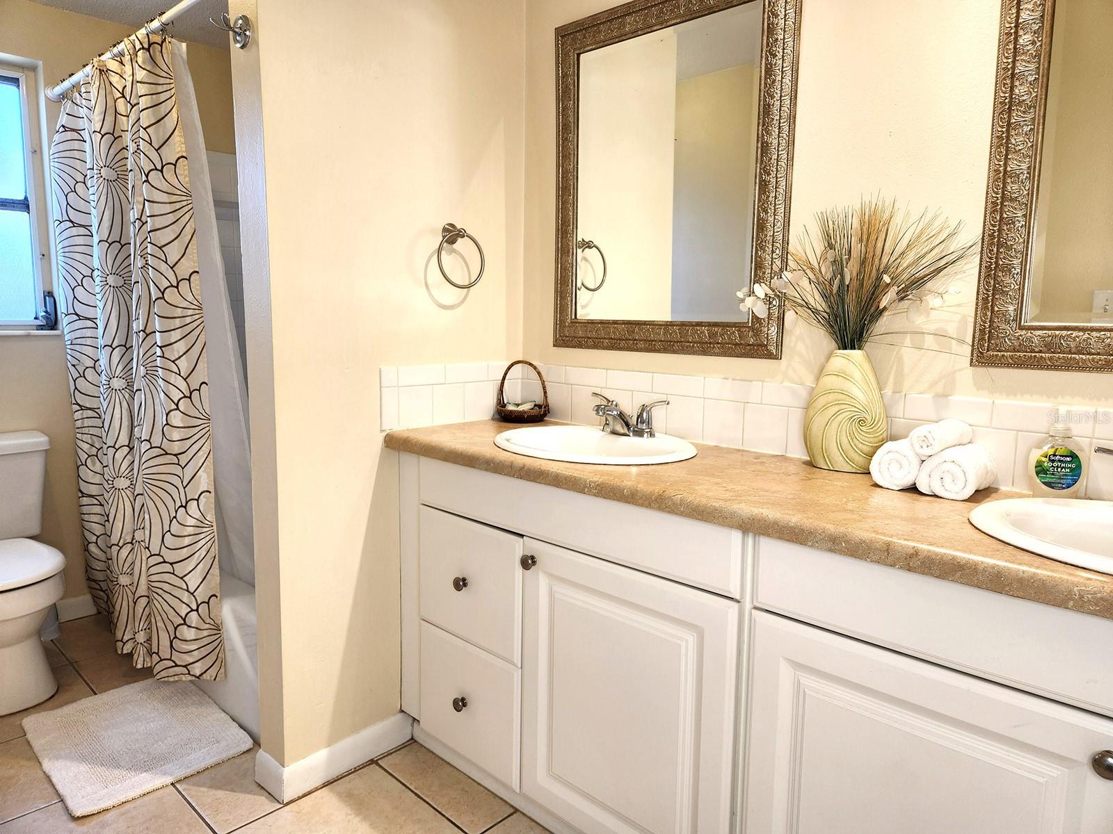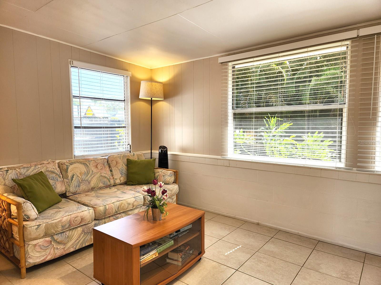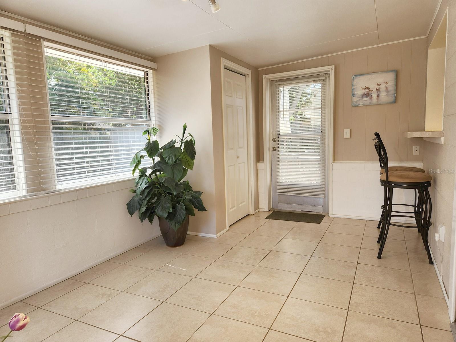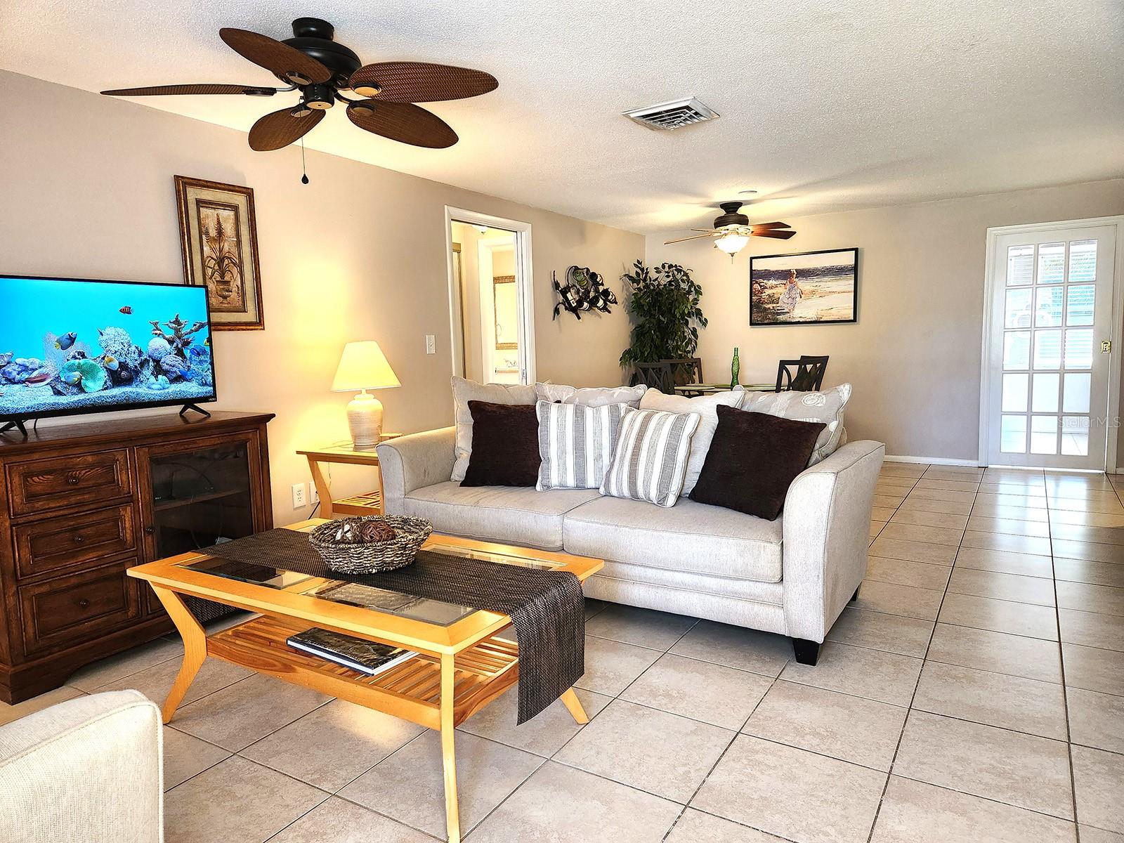Welcome to your Florida dream home! This home has been immaculately maintained. It is being sold fully furnished and move-in ready for your permanent vacation or potentially as a short-term vacation rental. It is fully stocked from kitchen to bedding.The floor plan is split with a fully fenced backyard.New roof installed in 2023, New AC in 2023. The main plumbing was retro-fit in 2021. A pocket door closes off the master suite creating a private retreat with a walk-in closet and plenty of room for a king-size bed. Also part of the master suite is a double-sided closet with sliding doors. The master bathroom has Jack and Jill sinks and a full tub and shower.The guest bedroom is on the other side of the home. The guest bathroom features a walk-in shower complete with an adjacent towel closet.The kitchen features a dishwasher, microwave range, flat-top stove and garbage disposal with plenty of cabinet and drawer space. An open pass-through with a counter looks out onto the Florida Room from the sink with bar stool seating.Neighboring the kitchen is the breakfast nook with a pantry. The breakfast nook has glass sliders out to the patio for your morning coffee or a cookout.From the open design of the living and dining room, a French pocket door leads out to a large enclosed Florida room with windows for those lazy days of reading. The pass-through from the kitchen into the Florida Room has bar seating at the counter. A door leads outside onto the patio Additional highlights include tile flooring throughout, a fully fenced backyard with rows of Areca palms along the back for additional privacy, parking for 1 in the garage and 4 in the driveway, and a shed. This home is only minutes away from Historic Downtown Venice, the popular Sharky's on the Pier, Venice Beach, and the Venice Fishing Pier. There are no HOA rules or fees. Joining the optional South Venice Civic Association will give you access to the boat ramp - for all you boaters and fishers - and to the South Venice ferry which takes you to a private beach. Come see this beautiful home TODAY!All furnishings can be removed prior to close if requested.