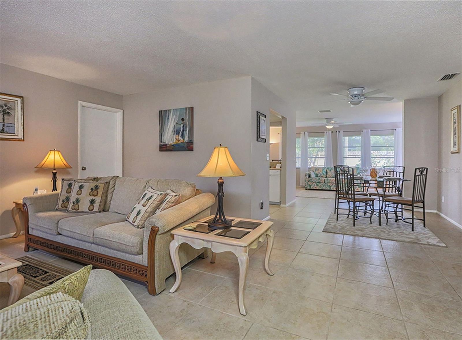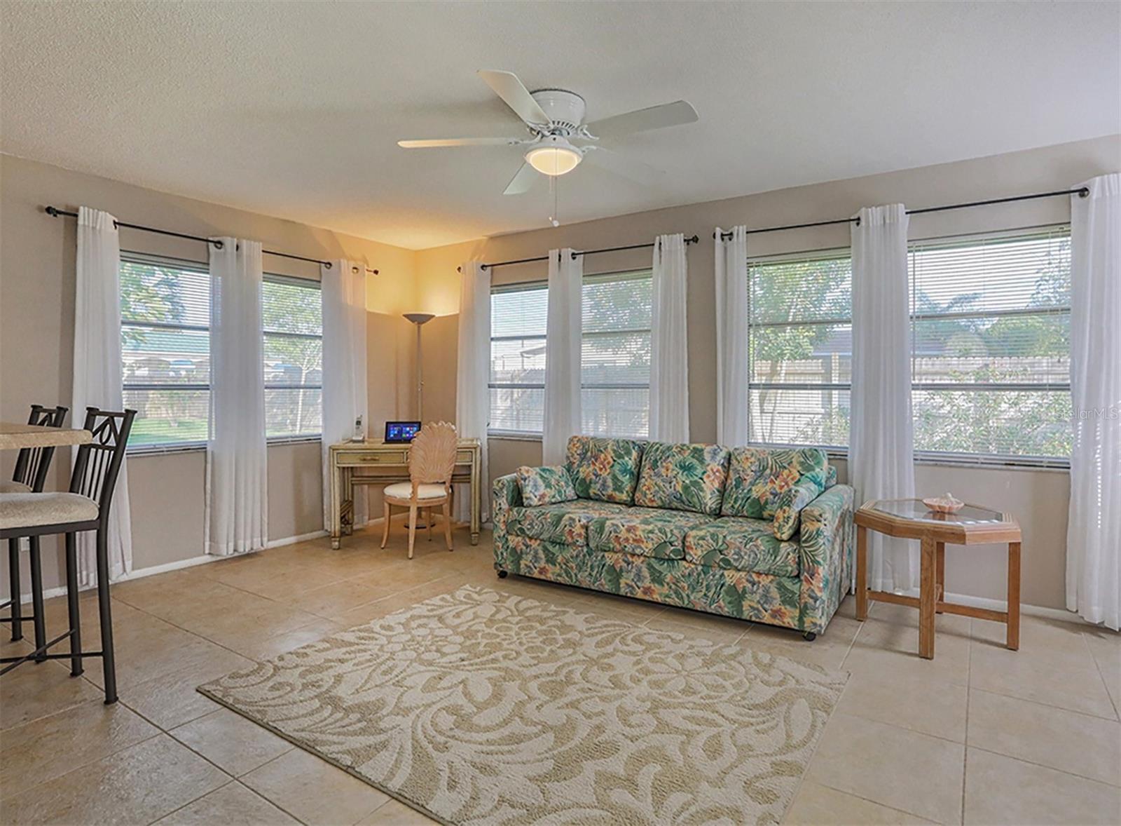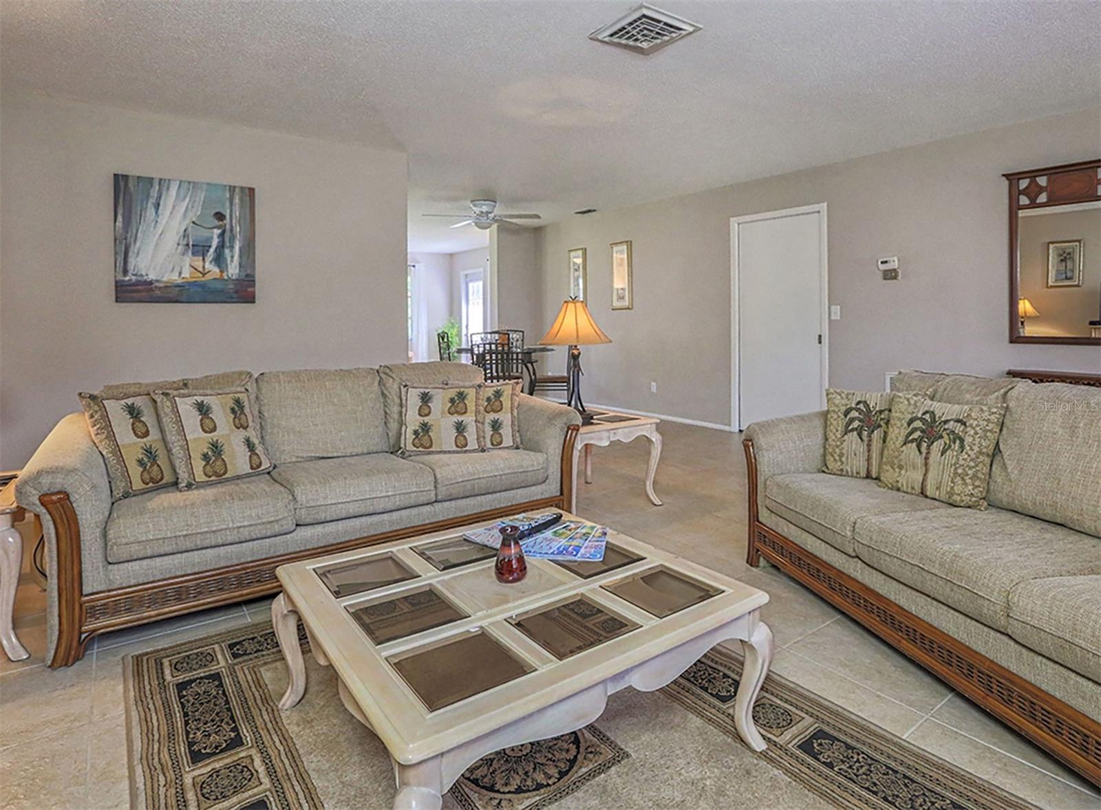 Welcome to this immaculately maintained Florida dream home . It is being sold fully furnished and move-in ready for your permanent vacation or potentially as a short-term vacation rental. It is fully stocked from kitchen to bedding.This single-story home has a split floor plan that is tiled throughout and sits on a large triple lot that is fully fenced.The kitchen features counters with a pass thru to bar seating for those quick breakfasts. A dishwasher, microwave, and plenty of cabinet space.From the open design of the living, dining, and entertaining area, a French door leads out onto the patio for that morning coffee or family cook out. The entertaining area features windows all around for natural light and fresh air. It also has a desk and chair for office use and a sitting area for reading or meditation. A fold out queen sofa bed completes the room. On one side of the home, the master suite has a walk-in closet and plenty of room for a king sized bed. The master bathroom has a tub and shower.On the other side of the home is a guest bedroom right next to the guest bathroom that has a walk-in shower.Extra large triple lot backyard is unique for this area and it has a large shed for storing bikes and all the toys. Additional highlights include seamless gutters, tile throughout, and parking for 1 car in the garage and up to 3 in the driveway.This home is only minutes away from Historic Downtown Venice, the popular Sharky's on the Pier, Venice Beach, and the Venice Fishing Pier. There are No HOA rules or fees. Joining the optional South Venice Civic Association will grant you access to the boat ramp and to the South Venice ferry which takes you to a private beach.Come see this beautiful home TODAY!Some of the furnishings and bedding in the photos for this listing may have been replaced or have a slight design change.All furnishings can be removed before close if requested.