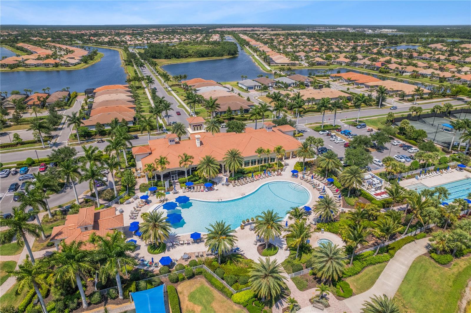 Beautiful Taft on the water. One year HOME WARRANTY for new buyer! Beautiful meticulously kept home in the upscale gated resort community of IslandWalk at the West Villages. This home is the Taft Street model with 2 bedrooms PLUS a flex room, 2 bathrooms, screened lanai, and a 2 car garage. A lakeview greets you from the large kitchen window and from the owner's suite. The kitchen has beautiful cabinetry with pull out shelving, an island, a "Lazy Susan", stainless steel appliances, and a large pantry. A French door leads out from the kitchen into the lanai. The owner's suite has a tray ceiling and an ensuite with a walk in shower, double sinks, and a large walk-in closet. The flex room has a double door entrance and Plantation Shutters. All the doors are 8 feet tall which adds an additional elegance to the home. Bring your golf cart! This is a dog friendly community too. Islandwalk is a maintenance-free community where your lawn, shrubs, and mulching are taken care of by the association. Islandwalk’s 5 star world class amenities include 2 heated resort pools, a separate heated lap pool for exercise, 2 hot tubs, 2 fitness centers with top of the line equipment and exercise class, pickleball, tennis, bocce, fire pits, small and large dog park, community garden, walking and biking paths, clubhouse, a 24 hour staffed security gatehouse, and a full-time activities director. The monthly newsletter is full of social events to attend. The beach is only 9 miles away. The new Wellen Park Downtown has boutique shopping, restaurants plus an 80-acre lake with recreational activities for all.