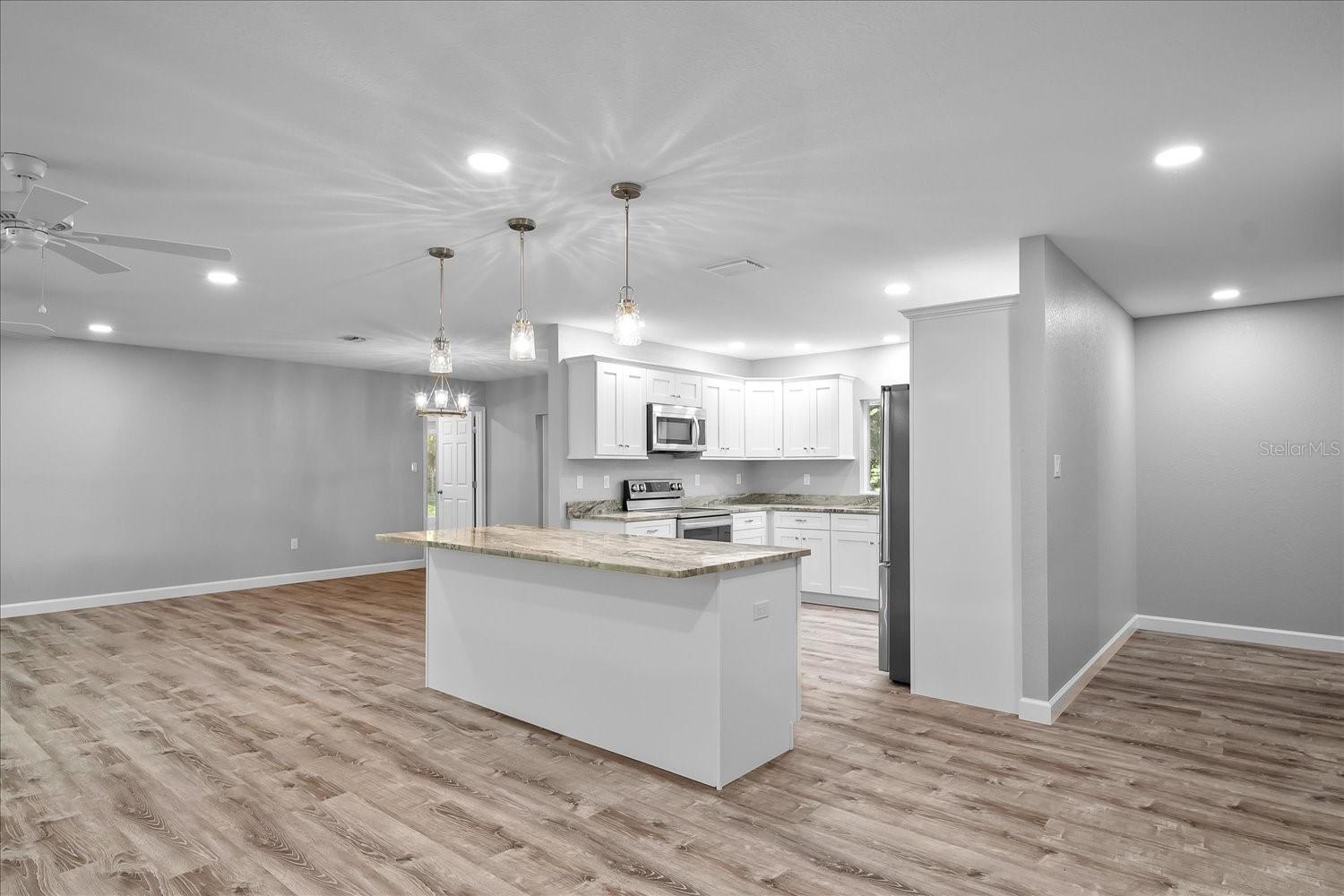 Nestled under a canopy of majestic oaks is a newly remodeled 3 bedroom x 2 bath home on 50 beautiful acres. A walking path from the back porch wanders under the oak Hammock to a covered barbecue picnic area for entertaining your guests. The equestrian enthusiasts would also appreciate the 5-horse stables with tack room. The fenced 50 acres is planted in high quality Bermuda pastures that your horses will enjoy. New stainless steel appliances and fixtures are in the kitchen and bathrooms. Everything in the house is move in ready new!