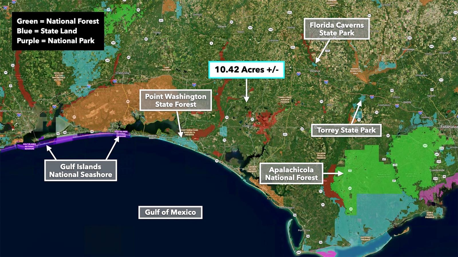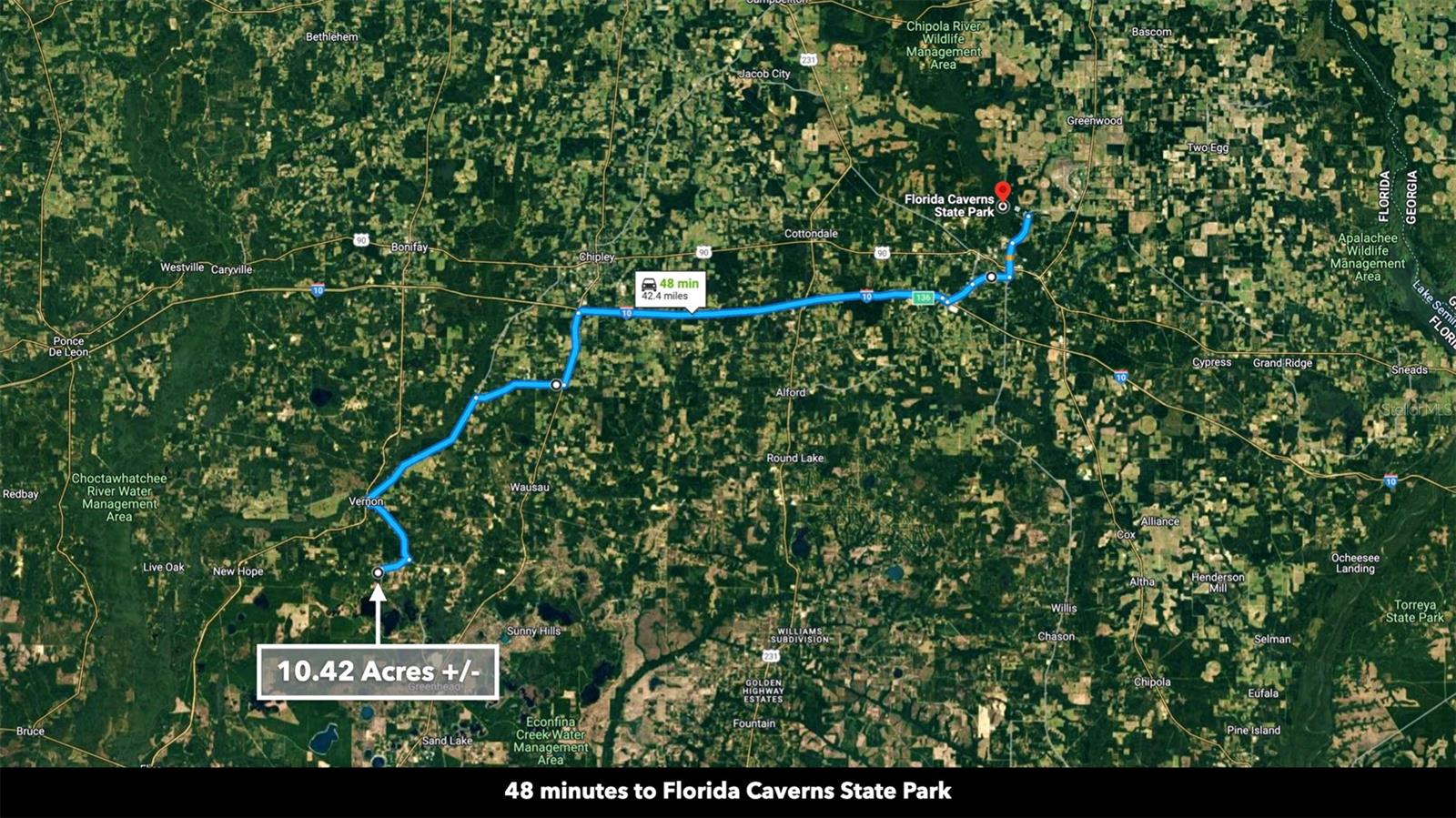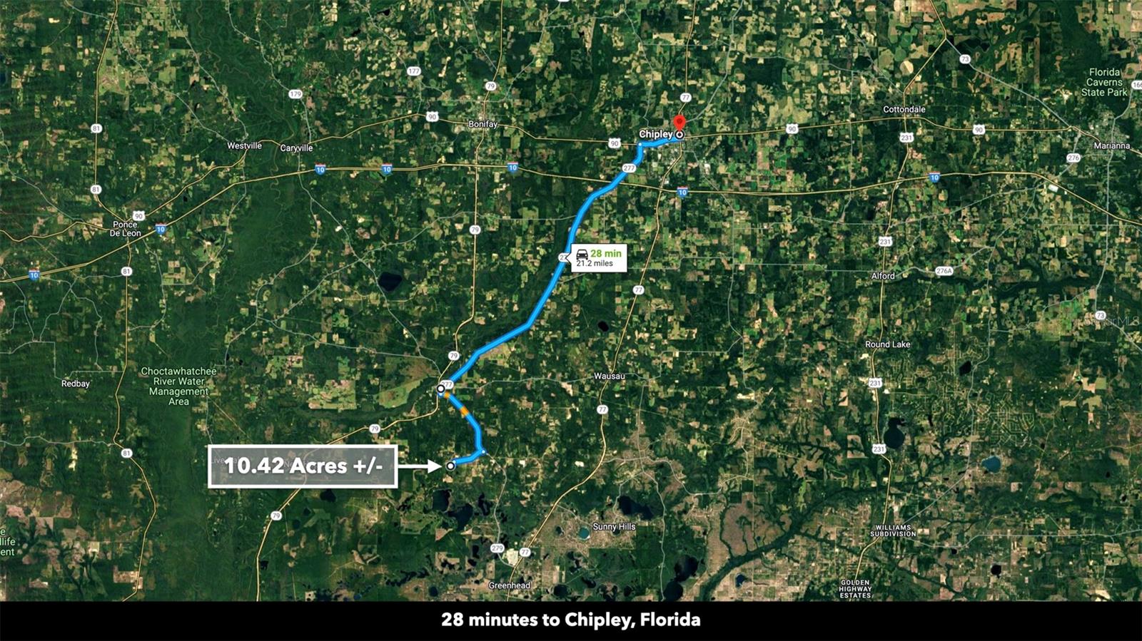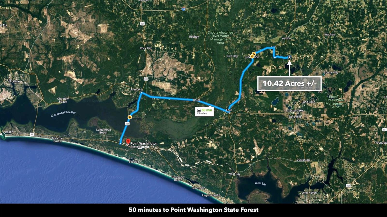You don’t have to go far for beautiful off-grid living in Washington County, Florida. This lush 10.42 Acre property is less than an hour from Panama City Beach. It’s close enough to what you need and far enough from what you don’t. Enjoy idyllic scenes of farms, woodlands, and well-spaced homesites. You won’t find tourists and beachcombers here among the serene pines, hardwoods, and farmland. This medium-sized property suits almost any vision: a tiny home, cozy cabin, seasonal RV base, or a spacious place to put down roots and call home. Make this beautiful space what you want, free of HOA restrictions, fees, and building time limits. Setting the Scene Leading to the property, mature trees and wooden rail fences line recently-paved New Jerusalem Road. The property has an excellent mix of vegetation and dry, flat space ideal for farming, gardening, or raising livestock. The wooded areas provide privacy, beauty, and soil reinforcement. 1,000 feet of a freshwater spring fed pond loops through the northeastern part of the property, offering added beauty and private fishing. This moderately wooded property is the perfect canvas for your vision. One neighbor has cleared his land lined with a functional and attractive plank fence, while another neighboring property remains undeveloped with mature trees and native vegetation. Several ponds in the area regularly attract wildlife like deer and waterfowl to the area. Farming & Gardening The mild to warm climate allows for year-round growing. Summer squash, zucchini, peppers, citrus fruits, okra, melons, tomatoes, corn, and more thrive in the warm summers. Meanwhile, leafy vegetables, lettuces, broccoli, carrots, and many herbs do well in the fall and winter. Fall is the perfect season to experience (and plant) the Florida panhandle’s vibrant wildflower display. Florida’s top four cash crops are tomatoes, oranges, sweet corn, and watermelon. Access & Electricity There is 500 feet of paved road frontage along the eastern boundary on New Jerusalem Road. There is also 475 feet of road frontage as well as electricity lines and poles along the western boundary. Location Less than ten minutes to Vernon, Florida, the property is close to a local market, dollar store, schools, churches, sports fields, eateries, a café, and a post office. The rural-suburban town features newly paved roads surrounded by beautiful grassy spaces and wooded areas. The property is near what is considered some of "America's Best Beaches". Nearby Panama City Beach and Destin are a treasure trove of shopping and entertainment. If you’re longing for a beach day or an adrenaline-pumping saltwater fishing excursion, the Panama City Beach is less than an hour away. New housing developments and commercial expansion is in full tilt here. Just a few miles away the new Latitude Margaritaville resort community is building out. The area is one of the biggest real estate growth markets in the state. A recently built international airport (38 minutes from the property) has made access to the area seamless for travelers. It’s exciting to be have an unrestricted, large-acreage properties, in the path of this monumental growth. Real estate opportunity in momentum markets like this, is hard to come by.
