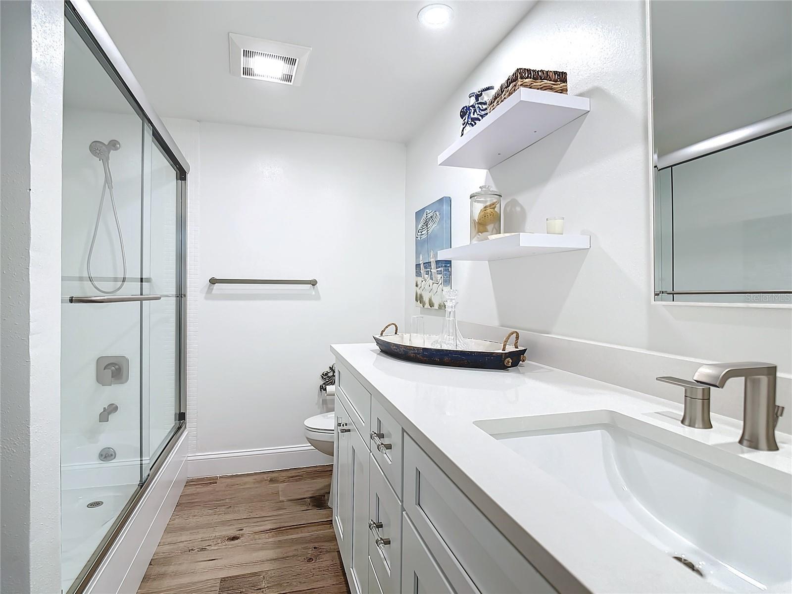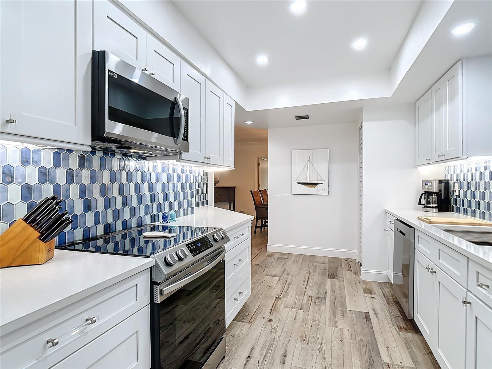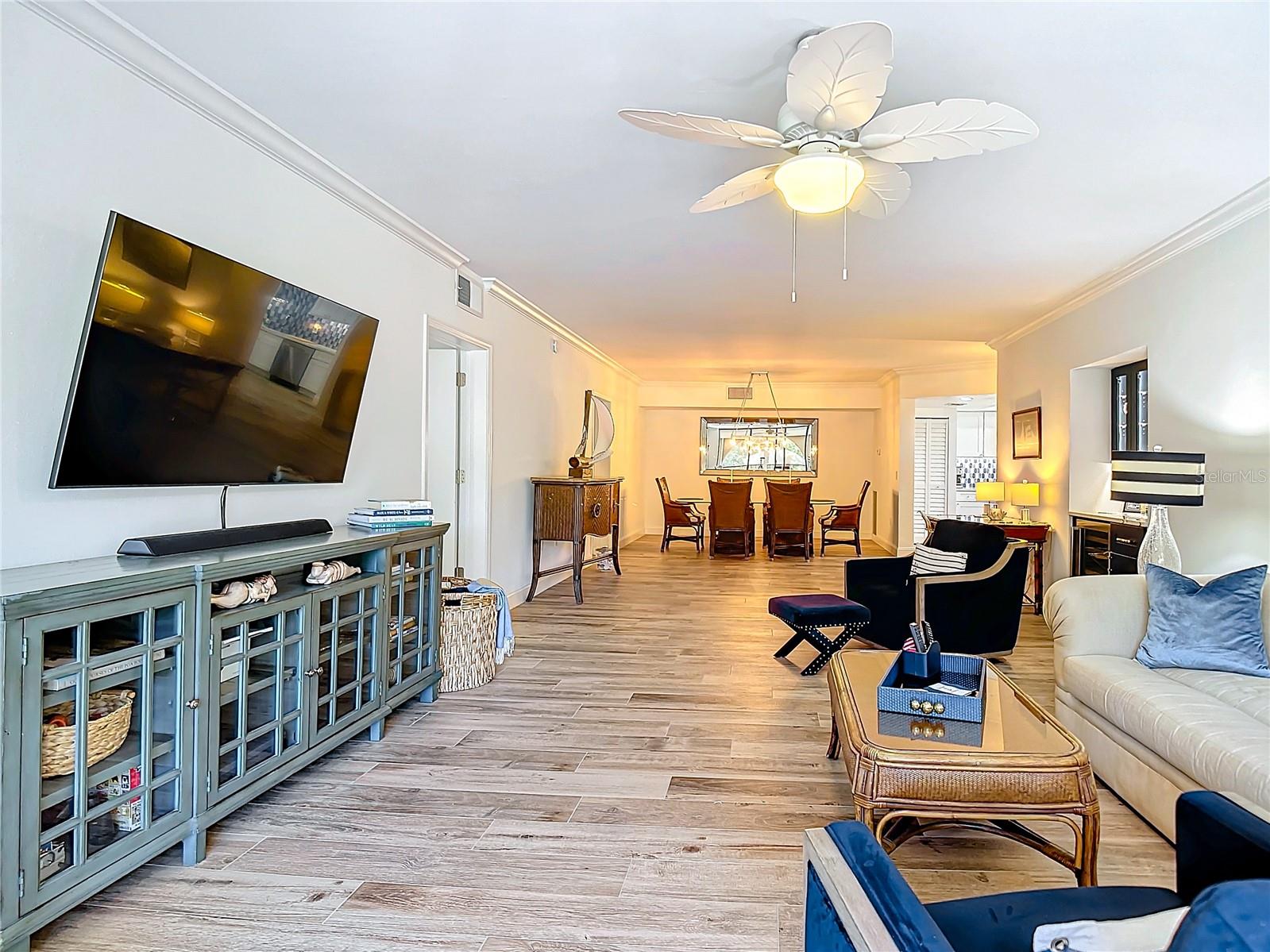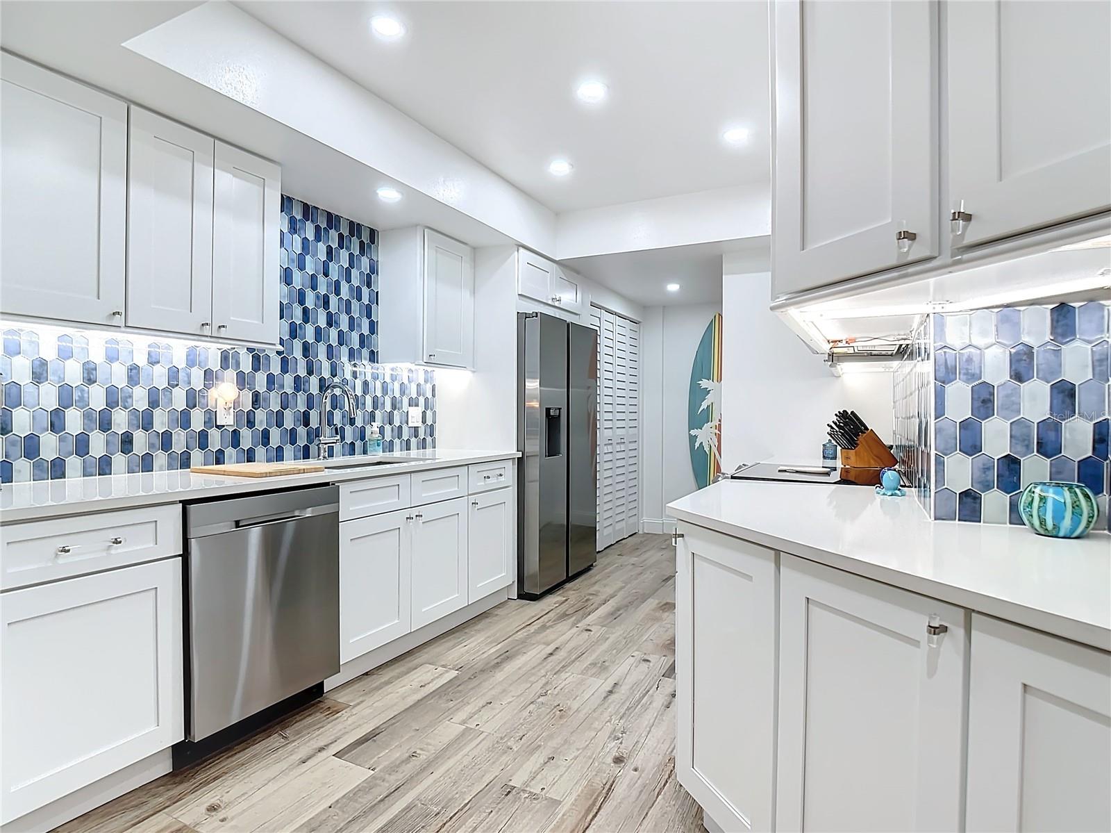 COMPLETELY REMODELED. More than $150K in updates. STUNNING – Light & Bright 3 Bedroom / 3 Bath, 2,400 sq. ft. appointed with wood plank tile floors throughout, quartz countertops, upgraded electrical, tankless hot water, built-in wine refrigerator and stainless-steel appliances. Storm shutters on double oversized balconies with floor to ceiling glass doors, 2 covered parking spots next to elevator. Close to multiple beach accesses. Pool, Clubhouse, Tennis.