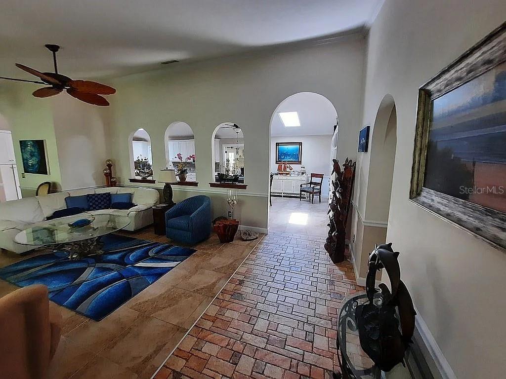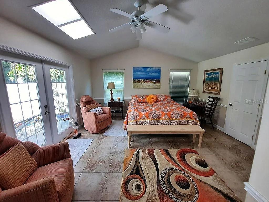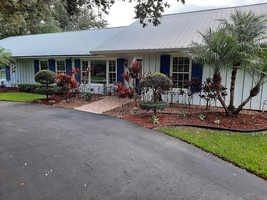 Resort-style estate living at its finest in this beautifully updated home surrounded by majestic mature oak trees. Designed for both everyday comfort and functionality, the property features two garages, one attached 2 car garage and another detached 30'x40' garage with 3 hurricane rated garage doors, both air-conditioned with a total of five bays, ideal for car enthusiasts, hobbyists, or additional toys and equipment. A spacious pool anchors the home with views from the master suite, Florida room and separate sun room creating a seamless indoor-outdoor living experience. The kitchen and bathrooms have been completely renovated, highlighted by a custom hand-crafted cherry-top island, while impact-rated, double-pane tinted windows enhance energy efficiency and storm protection all situated on a on a private road in a very private neighborhood.