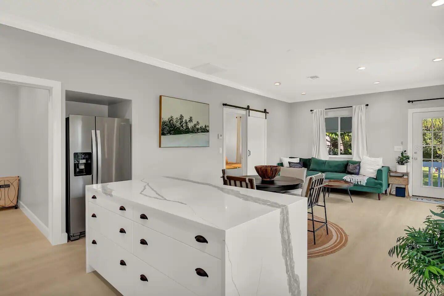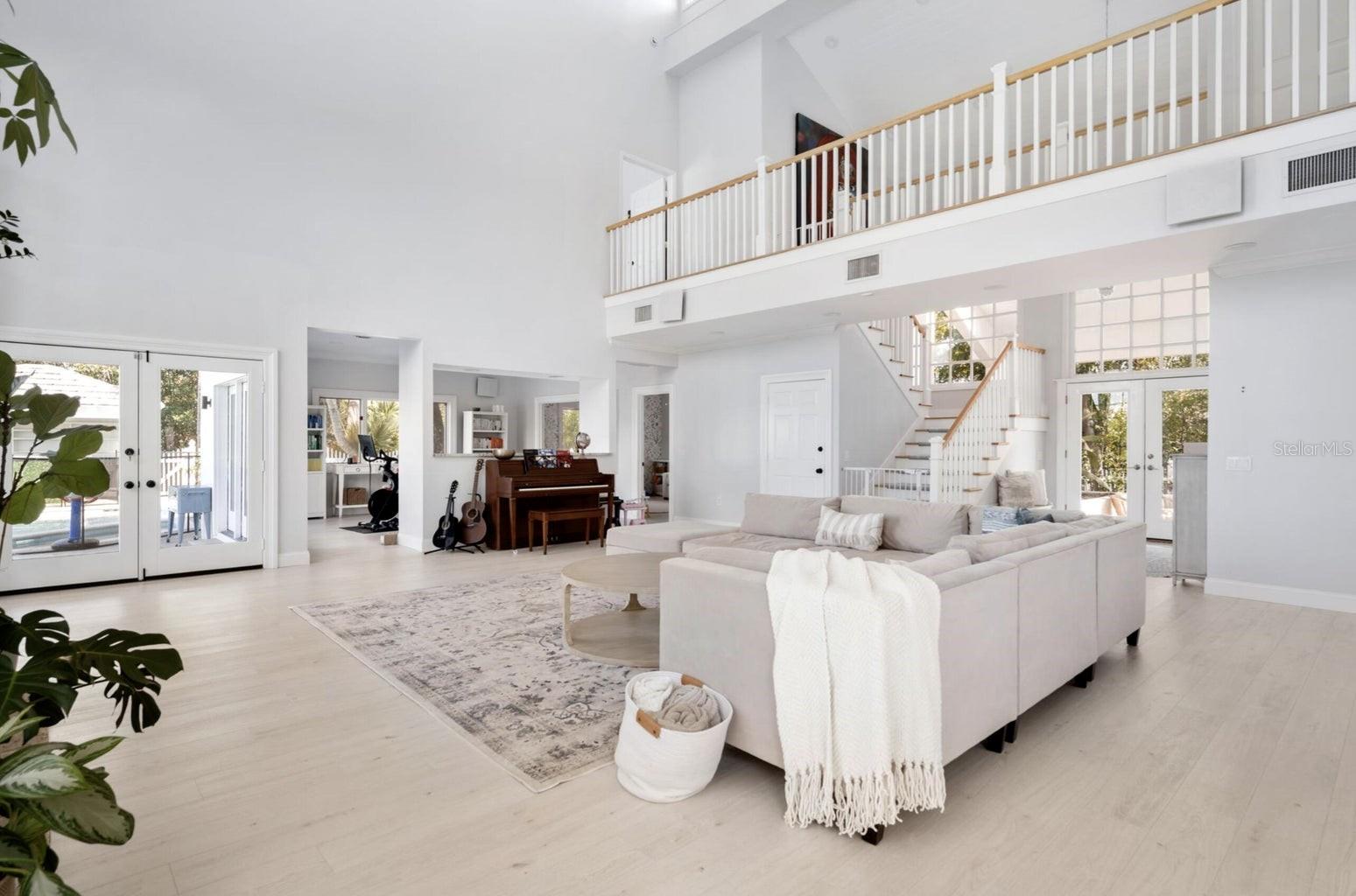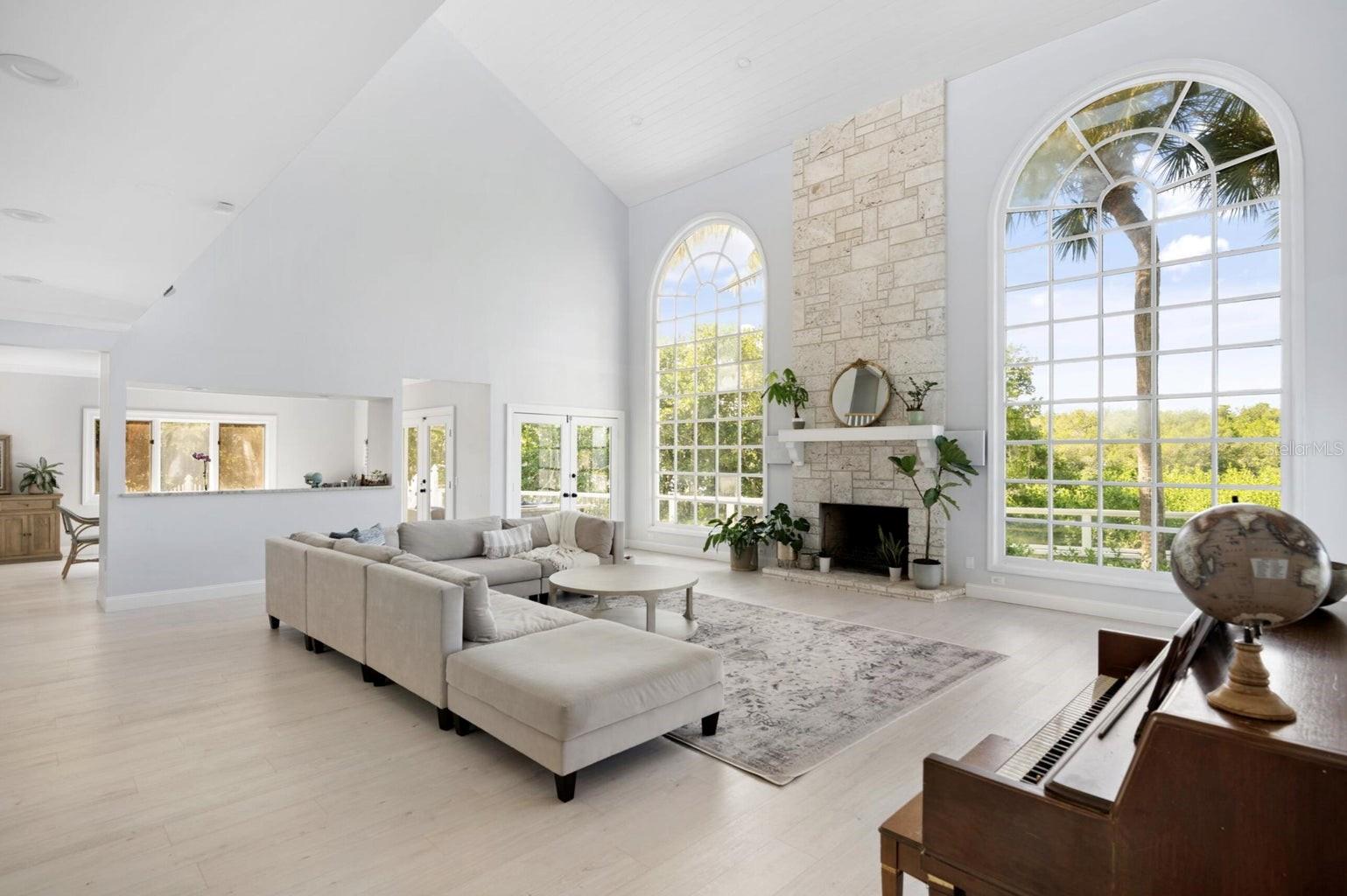Welcome to Peaceful Estate, located on Billionaire's Row in Vero Beach, Florida. Spanning nearly three acres of beautifully landscaped grounds and featuring 125 feet of pristine river frontage, this extraordinary property embodies coastal luxury and timeless charm, tailored for the most discerning tastes. As the largest riverfront lot currently available in Vero Beach, this estate is a rare and exceptional opportunity. Located just four miles south of Vero Beach's premier financial district, the estate offers the perfect combination of privacy and convenience. Whether you seek a serene retreat or an entertainer's paradise, Peaceful Estate delivers a sophisticated lifestyle enhanced by breathtaking natural beauty and world-class amenities. Wake up to unparalleled views of the Indian River, where the gentle sound of dolphins and manatees swimming in your cove greet you each morning. Boating enthusiasts will delight in direct river and ocean access, with no fixed bridges obstructing your journey. Your personal dock invites endless opportunities for water activities and exploration, making this home a haven for recreation and relaxation. The main residence features four spacious bedrooms and three-and-a-half bathrooms, with high ceilings, graceful architectural details, and expansive windows that showcase stunning river views. The open-concept design creates a seamless flow, ideal for intimate family moments or hosting grand celebrations. Halfway down the property, the guest house has been recently renovated down to the studs, and offers two additional bedrooms and two bathrooms, ensuring visiting family and friends enjoy the same level of luxury and comfort. Both homes are thoughtfully designed with premium finishes and attention to detail. For car enthusiasts, the property includes a climate-controlled three-car detached garage and an additional four-car garage beneath the guest house, totaling seven spaces, a true collector's dream. An Almost Heaven luxury sauna adds to the allure, seating 8-10 people and featuring a top-of-the-line electric heater. From within, you can watch the sun set over the river, creating a serene and rejuvenating experience like no other. Adding to the estate's potential, there is ample space to build additional homes, transforming this property into a stunning family compound. Whether for multi-generational living or as a legacy estate to be passed down for generations, the possibilities are endless. Beyond the property, enjoy easy access to fine dining, world-class golf courses, vibrant nightlife, and the Treasure Coast's pristine beaches. With its unique combination of seclusion and convenience, Peaceful Estate offers the best of both worlds. Opportunities to own a three-acre riverfront estate of this caliber are exceedingly rare. This is more than a home, it's a sanctuary where memories are made, dreams are realized, and a legacy is built. Each evening, breathtaking sunsets over the Indian River will provide the perfect backdrop to your new extraordinary retreat.