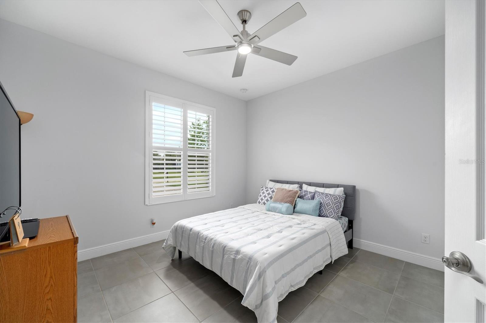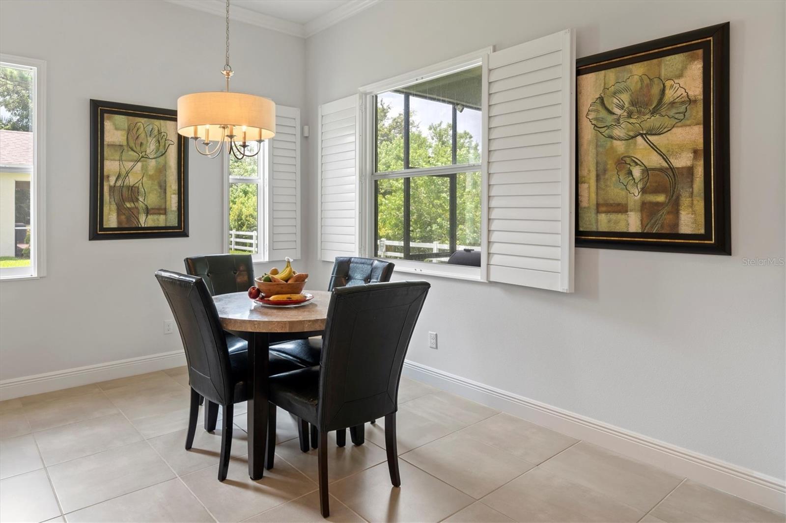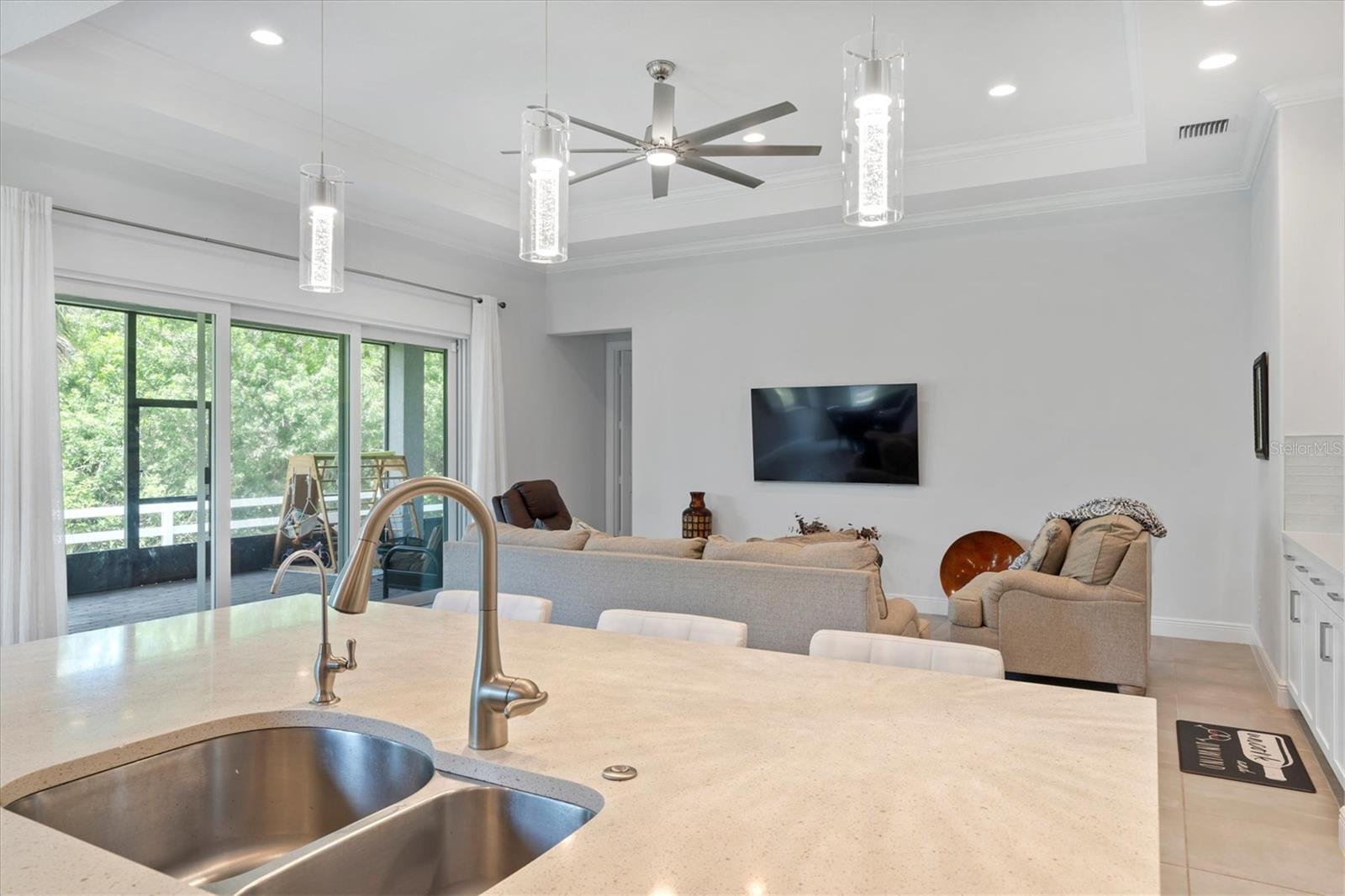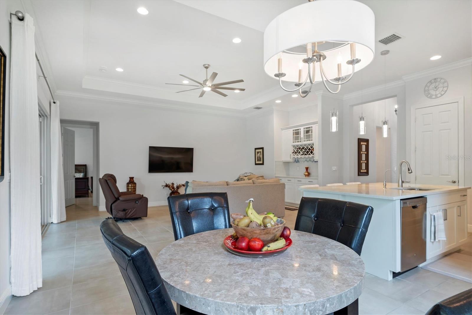 Seller is offering $10,000 closing credit! You'll love this thoughtfully designed 3-bedroom home with 2.5 baths, plus a flexible den/office! This layout just makes sense. The spacious gourmet kitchen is a standout. It features a center island, striking tile backsplash, wall oven, and a built-in bar area perfect for easy entertaining. Throughout the home, you'll find elegant tile flooring, impact windows accented with Bahama shutters, and a beautiful tray ceiling that adds a touch of architectural interest. The oversized en suite is a dream, offering two separate vanities and one of the largest showers you'll see - with dual shower heads and generous space. A nearly 50-foot wide, the covered and screened lanai extends your living area outdoors. Enjoy the perks of a community pool and fitness center while living in a home that feels both elevated and easy.