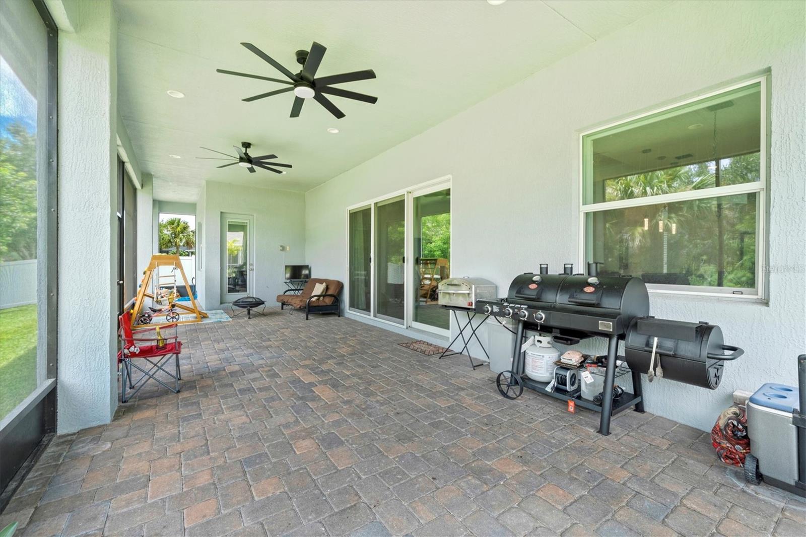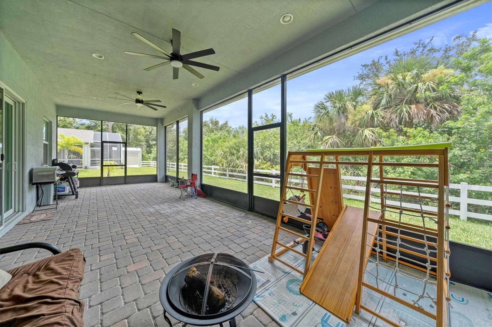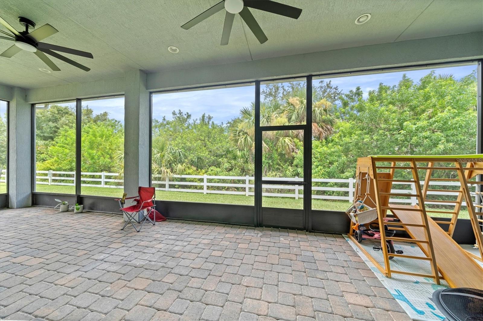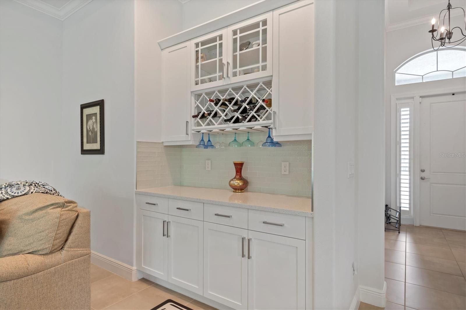 Seller is offering $10,000 closing credit! You'll love this thoughtfully designed 3-bedroom home with 2.5 baths, plus a flexible den/office! This layout just makes sense. The spacious gourmet kitchen is a standout. It features a center island, striking tile backsplash, wall oven, and a built-in bar area perfect for easy entertaining. Throughout the home, you'll find elegant tile flooring, impact windows accented with Bahama shutters, and a beautiful tray ceiling that adds a touch of architectural interest. The oversized en suite is a dream, offering two separate vanities and one of the largest showers you'll see - with dual shower heads and generous space. A nearly 50-foot wide, the covered and screened lanai extends your living area outdoors. Enjoy the perks of a community pool and fitness center while living in a home that feels both elevated and easy.