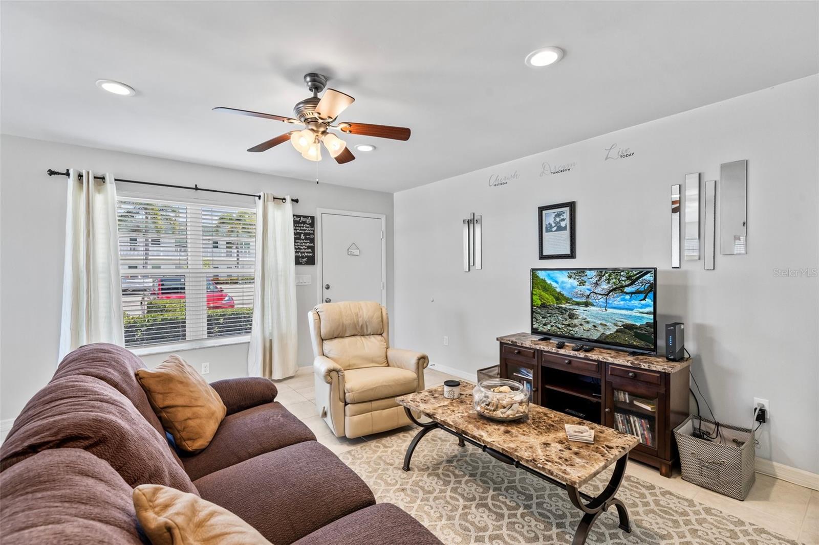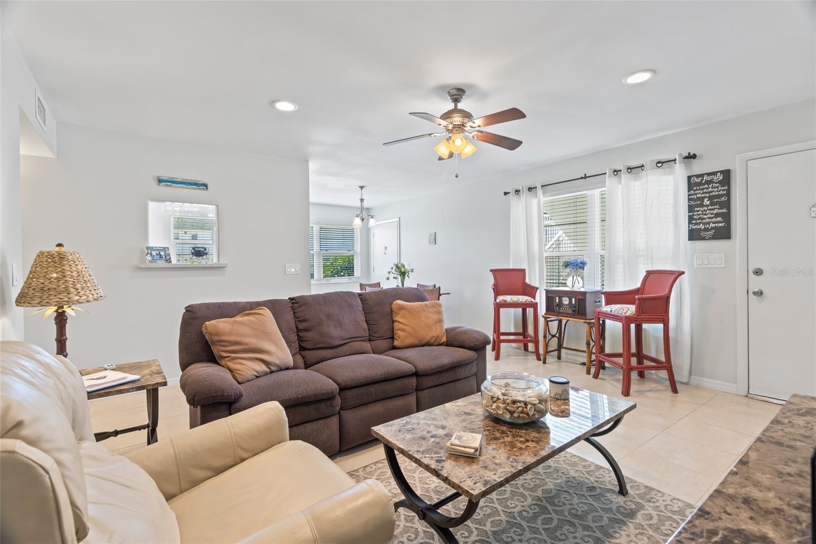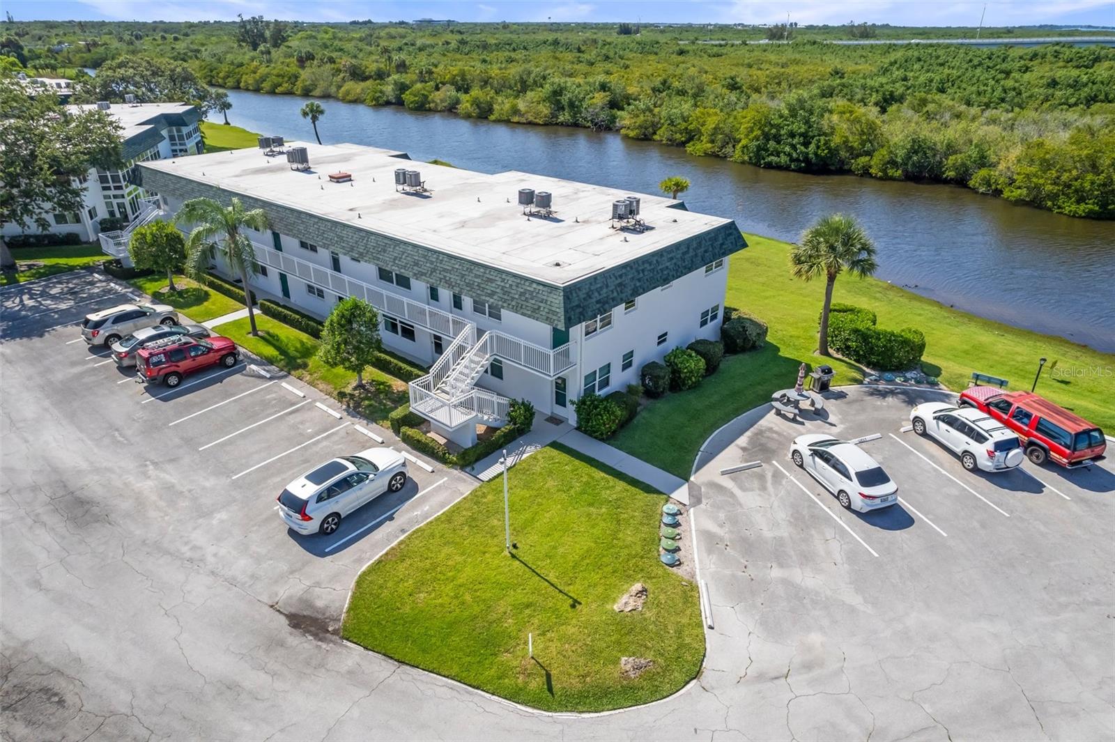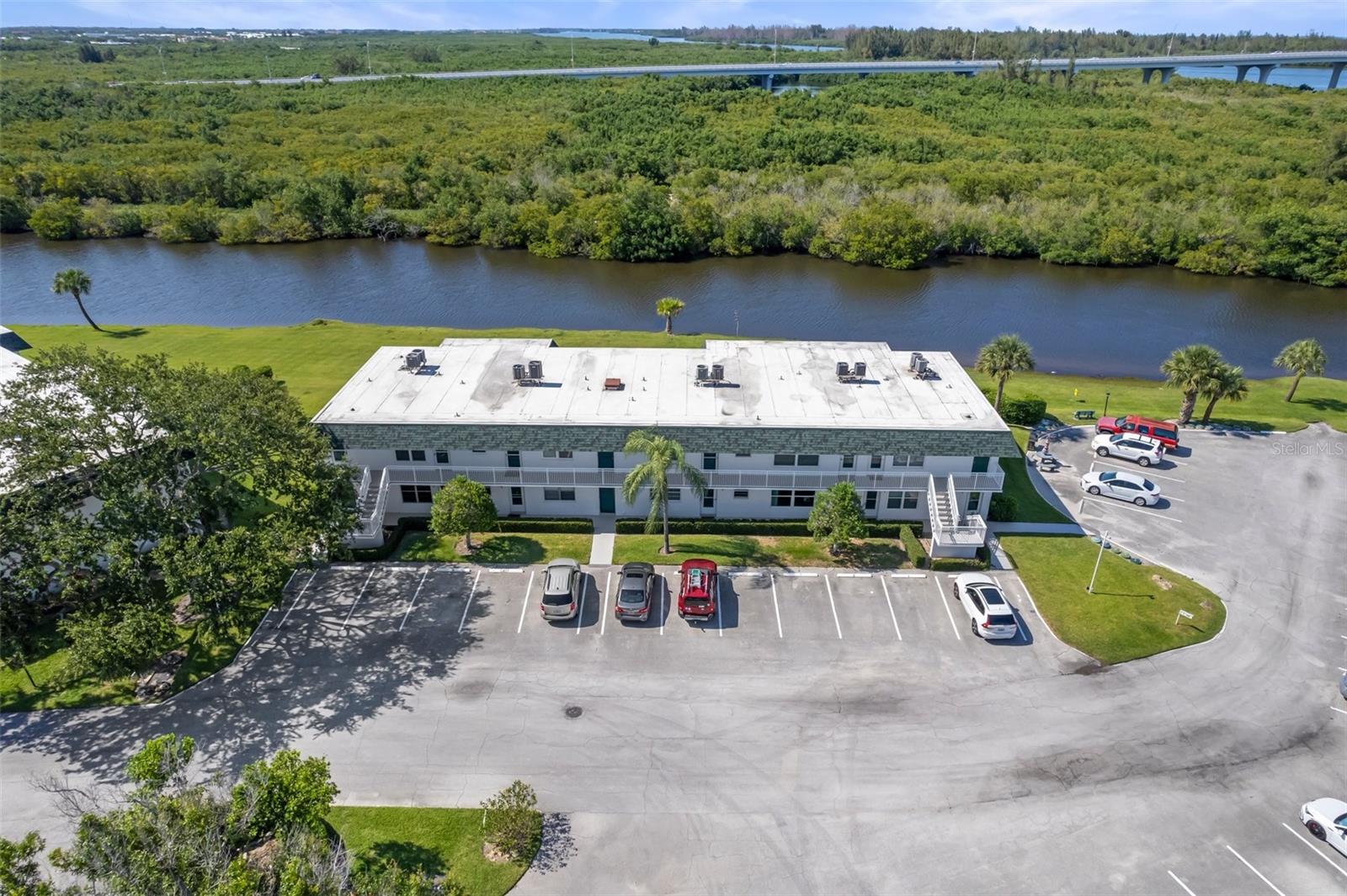 Enjoy water views from every room from this sought-after first floor 2/2 corner unit in desirable 55+ community! Updated kitchen and baths, tile floors throughout, impact windows. Community features pool, clubhouse, shuffleboard, dock for fishing/relaxing. Restuarants and specialty shops just around the corner on Royal Palm Pointe. Only minutes from the bridge and all the island has to offer...restaurants, museum, theater and beaches!