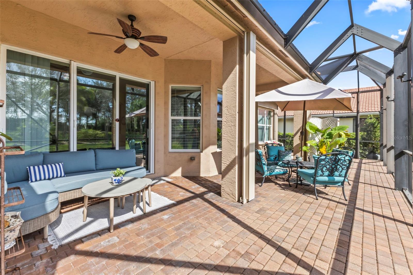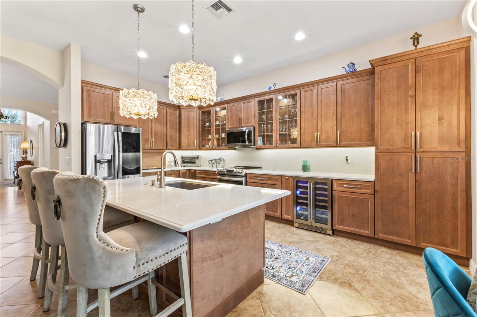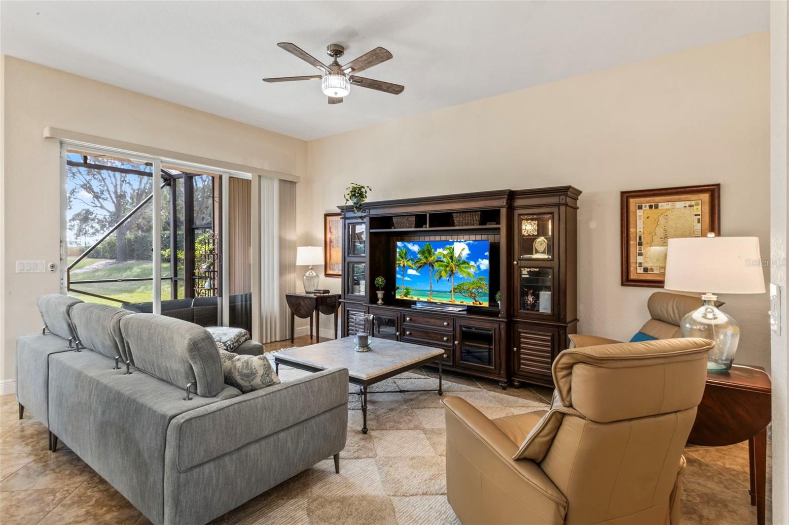 BRAND NEW KITCHEN! Maple cabinets, newer SS LG appliances, induction range, built-in wine cooler, quartzite countertops, perfect for entertaining. This spacious 2 Bedroom plus Den/office home features Diagonal tile in living areas, wood floors in bedrooms, custom closets in main bedroom, living and family room, breakfast nook & dining room, large extended lanai and whole house generator. Close to community amenities including resort-style pool, clubhouse, fitness room, play area and tennis courts. Gated community.
