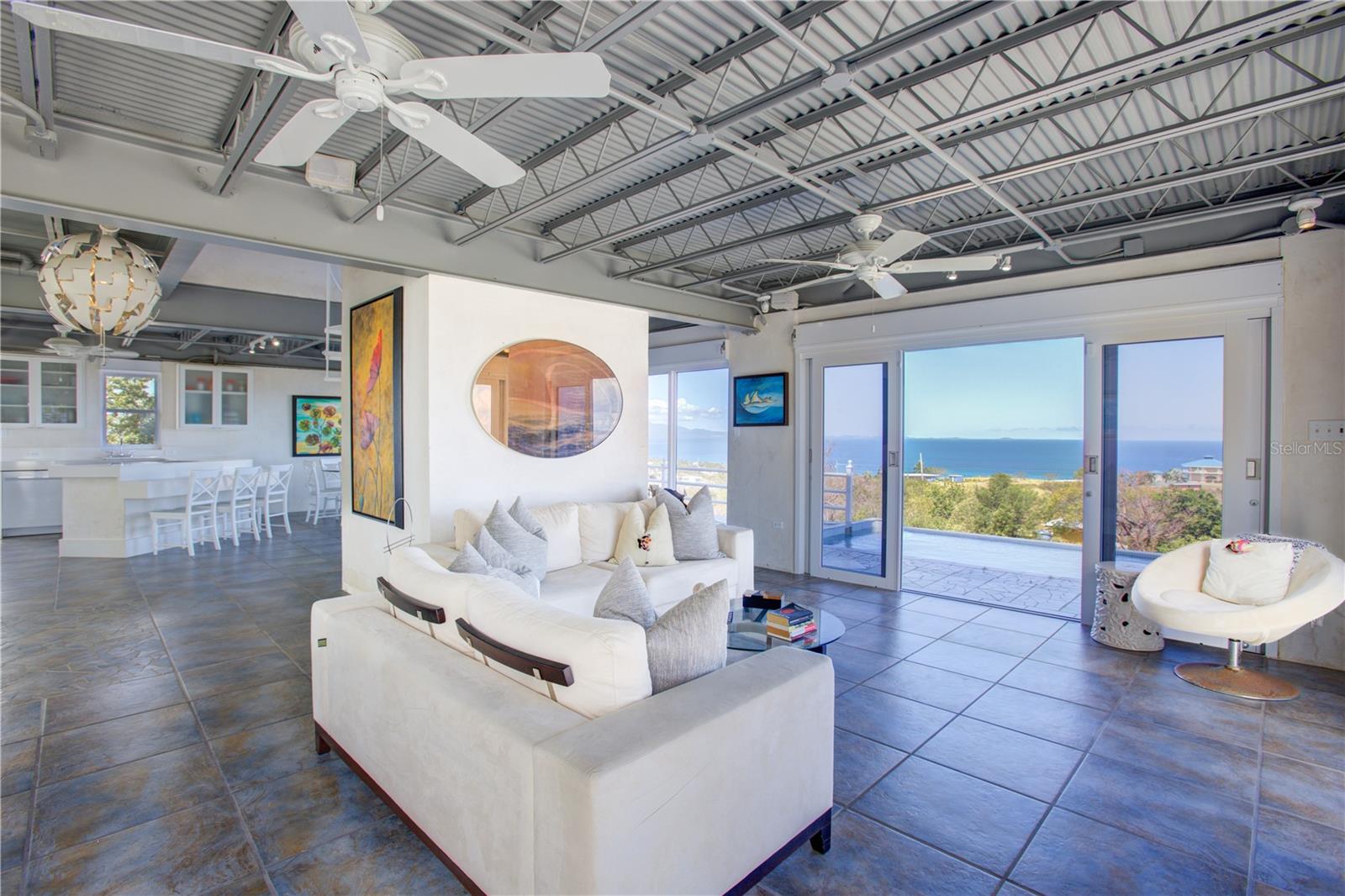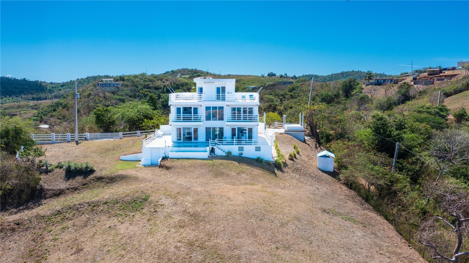 Casa Caracola is a truly captivating retreat nestled in Vieques, offering breathtaking panoramic views of mainland Puerto Rico and the neighboring islands of Culebra, and St. Thomas. The estate spans over 5,660 square feet on nearly an acre of land providing ample space and privacy. With 4 bedrooms, 5 bathrooms and boosting 3 levels of luxury living, this remarkable layout and design is the ideal private island oasis. Upon entering the main floor, you'll be greeted by open and grand spaces that seamlessly blend the kitchen, dining, living, and entertaining areas, making it a perfect place for hosting events and family gatherings. Be mesmerized by the inspiring panoramic views that serve as a stunning backdrop for any occasion. The second floor features two-bedroom suites, each with their own private balconies showcasing stunning ocean views. These suites also offer en-suite bathrooms, ensuring comfort and convenience for residents and guests. On the third floor, you'll find a sizable room that can be used for multiple purposes, along with a dreamy rooftop terrace to relax, enjoy al-fresco dining in a serene and tranquil atmosphere surrounded by expansive green spaces and take in the breathtaking sunsets. In addition, there is a guest bedroom suite with a kitchenette and full bathroom, accessible through its own independent entrance. Situated on one of the most prominent vantage points of Vieques Island, the purchase of this pristine home includes the adjacent lot, ensuring the preservation of the panoramic vistas and the outmost seclusion and privacy. Some notable features of the house include its open concept design, which seamlessly integrates indoor and outdoor living spaces, as well as its light-filled and airy atmosphere with cathedral ceilings and floor-to-ceiling windows. The property is equipped with an elevator, hurricane proof security windows and doors, automatic hurricane shutters assuring safety and peace of mind. An array of amenities await. Including a plethora of outdoor entertainment spaces, an infinity pool with a saltwater filtering system and a water cistern, providing a self-sufficient and sustainable lifestyle as well as inverter split AC units ensuring energy efficiency and climate control. Casa Caracola is conveniently located just a short drive from Isabel Segunda and Vieques' most renowned sandy beaches, historical landmarks such as the Conde de Mirasol Fort and natural wonders like the bioluminescent bay. Vieques Island offers a myriad of activities, including bike strolls through nature, snorkeling and scuba diving, horseback riding, and a shooting range. Access to mainland Puerto Rico is easy, with a 30-minute ferry trip, a quick 6-minute plane ride to Ceiba Airport or 20-minute plane ride to Isla Grande Airport in San Juan. Immerse yourself in the enchanting tropical island flair of Vieques and take privilege in owning your own private sanctuary. This sun-kissed property offers a prime real estate opportunity with incomparable views in a highly desirable location. Whether you're seeking a move-in ready primary residence or a vacation home, don’t look any further than Casa Caracol.