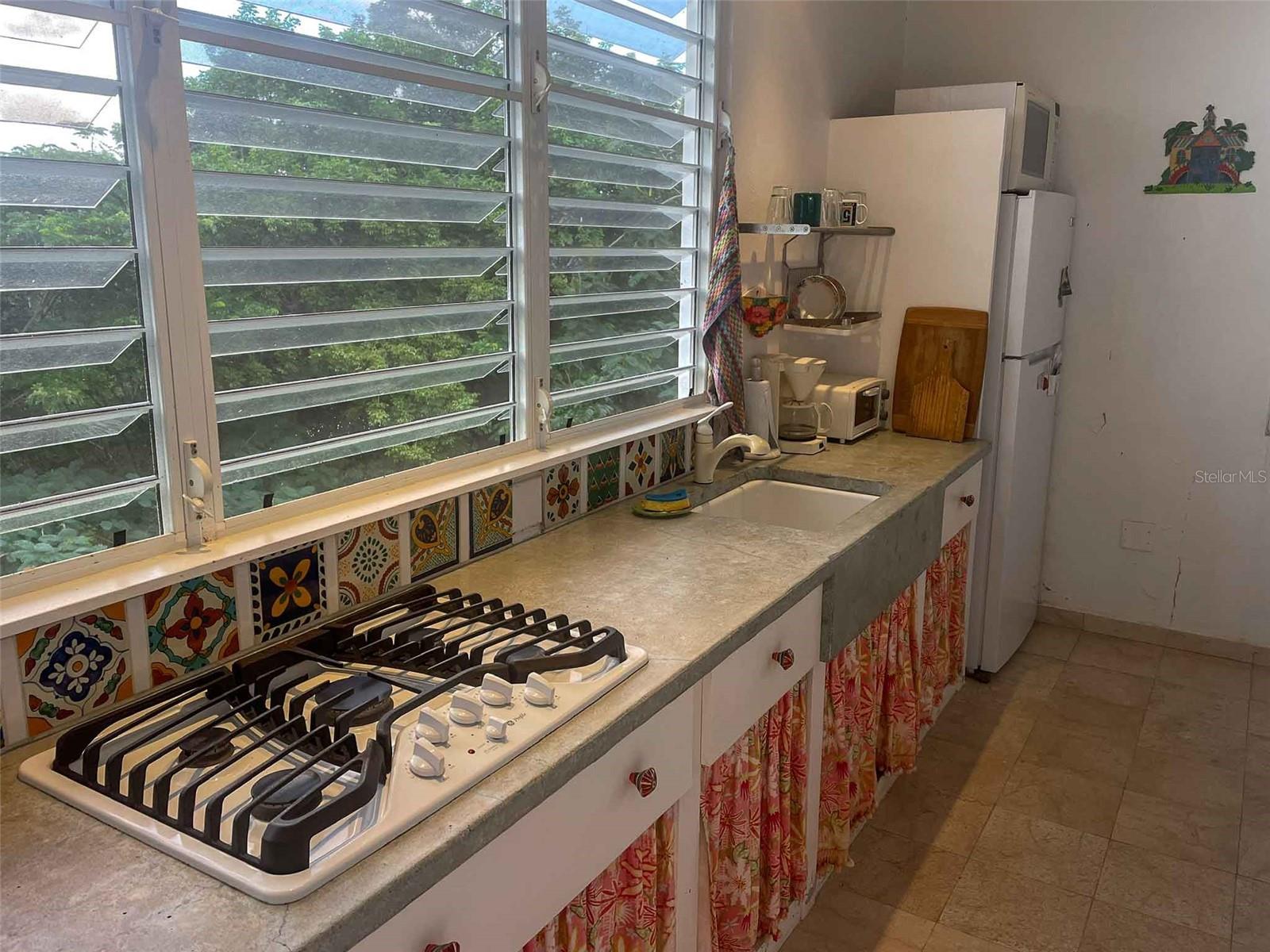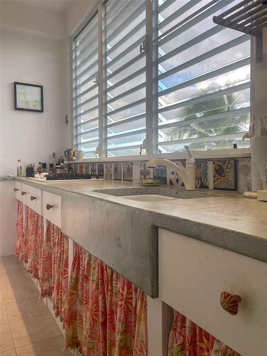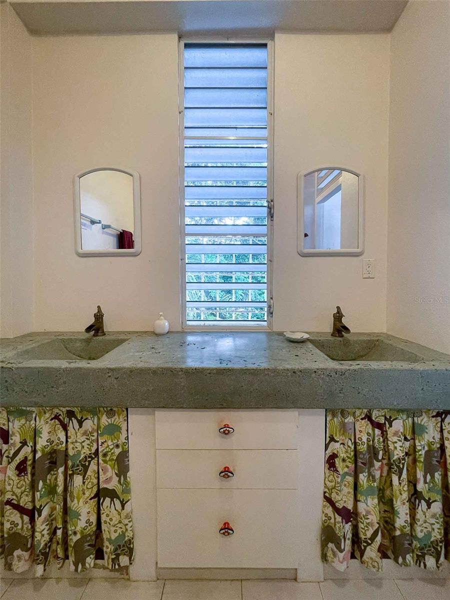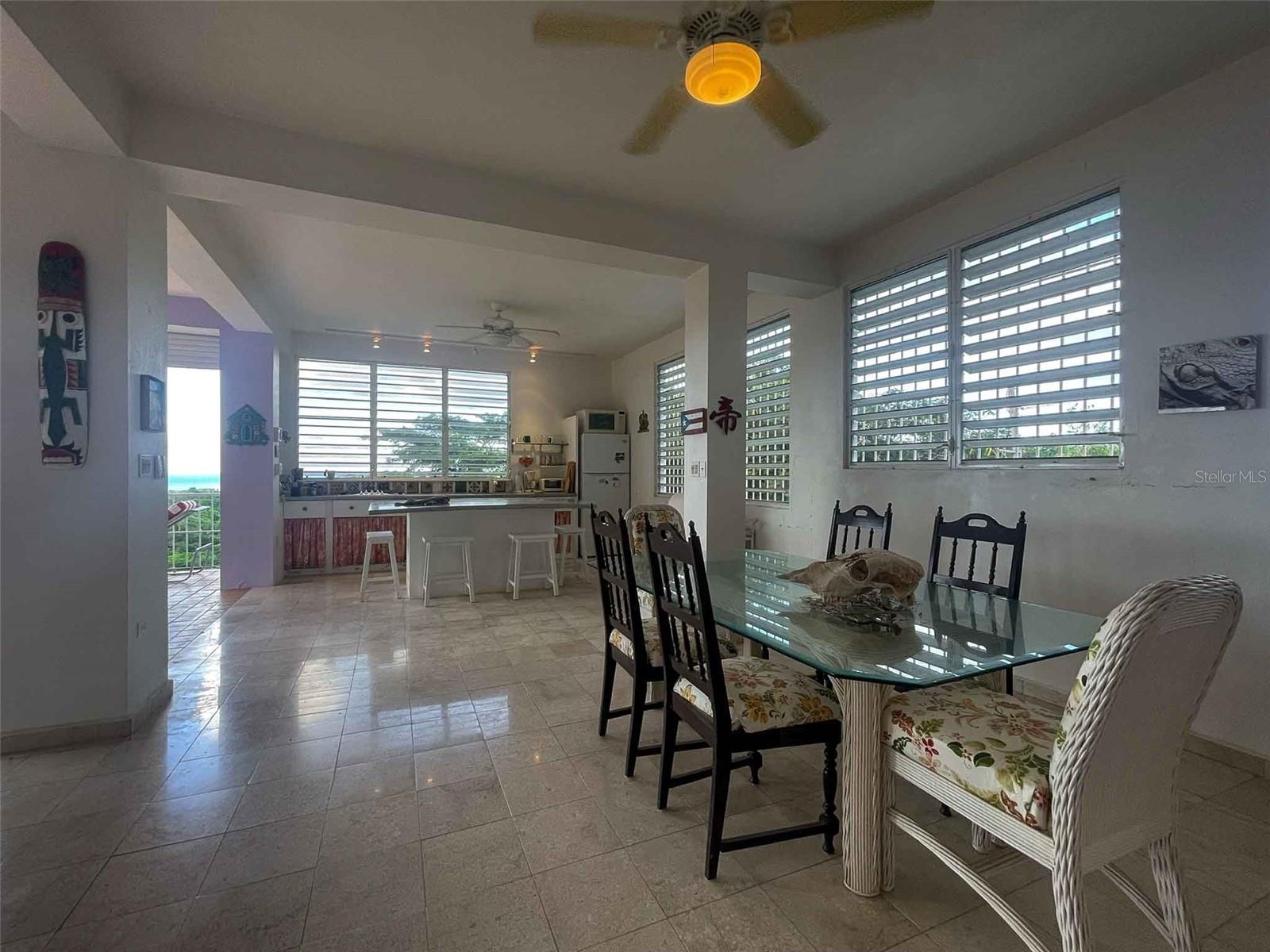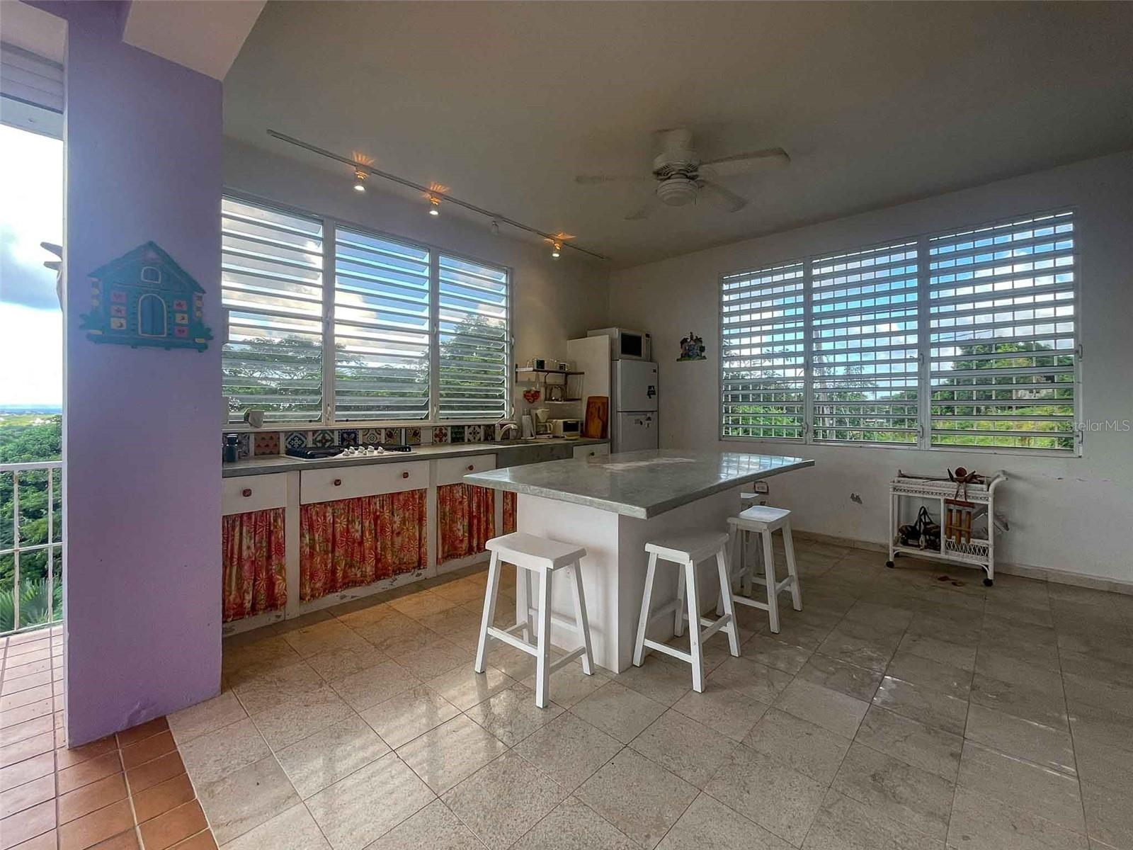 Introducing "Casa Verde," an enchanting 2-bedroom concrete structure nestled within the lush landscapes of Vieques, Puerto Rico, aptly named after the verdant greenery embracing the house and its surroundings. This two-story home offers an exceptional opportunity, featuring stairs leading to an unfinished roof deck that holds the promise of becoming a breathtaking third-floor space. The first floor boasts a storage room and convenient parking while being embraced by a meticulously landscaped garden sprawled across half an acre, creating an oasis of tranquility. Surrounded by pristine pasturelands, this property offers awe-inspiring vistas of the Caribbean Sea, mainland Puerto Rico, Vieques’ sister-island of Culebra, Isabel Segunda, and the north shore of Vieques. From the open balcony living room to the potential third-floor deck, immerse yourself in captivating sunrises, sunsets, and the rhythmic dance of ferries voyaging to and from Ceiba. Embracing an open-concept design, the interconnected kitchen, dining room, and living room invite both entertainment and the soothing trade winds from the east. The primary bedroom indulges in space for a king bed and furnishings, complemented by an ensuite full bath featuring a glass block shower. Step outside to a back patio with an outdoor shower and bathtub, inviting you to unwind amidst the harmonious blend of nature and ocean vistas. Convenience meets elegance with a laundry closet within the primary bedroom, while an adjacent office area off the main entrance and dining room offers versatility, potentially serving as an additional bedroom. A second full bathroom with shower and ample closet space caters perfectly to guests or occupants of the second bedroom. The second bedroom, delineated from the living room, includes a spacious closet, allowing for potential privacy enhancements. The kitchen, adorned with a concrete countertop, gas stove, and decorative tiles, is illuminated by a wall of windows that infuse the main floor with natural light. A kitchen island provides versatility for baking, crafts, or casual dining. The property is fenced and adorned with mature plants, with palm trees framing the mesmerizing views from the house. Situated atop the hills above Monte Santo, this haven resides at the road's end, ensuring tranquility with minimal street traffic, fostering an oasis of peace. Boasting tall ceilings and abundant windows facilitating gentle light and refreshing breezes, Casa Verde embodies comfort, elegance, and the quintessential Vieques lifestyle. Paraiso Realty cordially invites you to experience this captivating property, where each corner narrates a tale of serenity and unparalleled vistas, promising an idyllic retreat in the heart of Vieques, Puerto Rico.