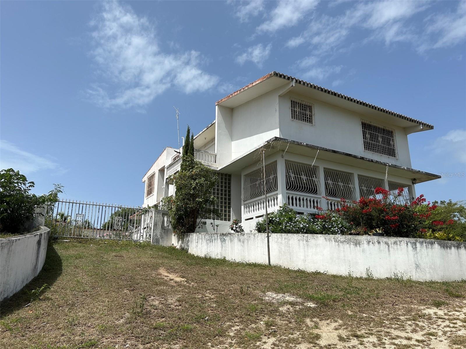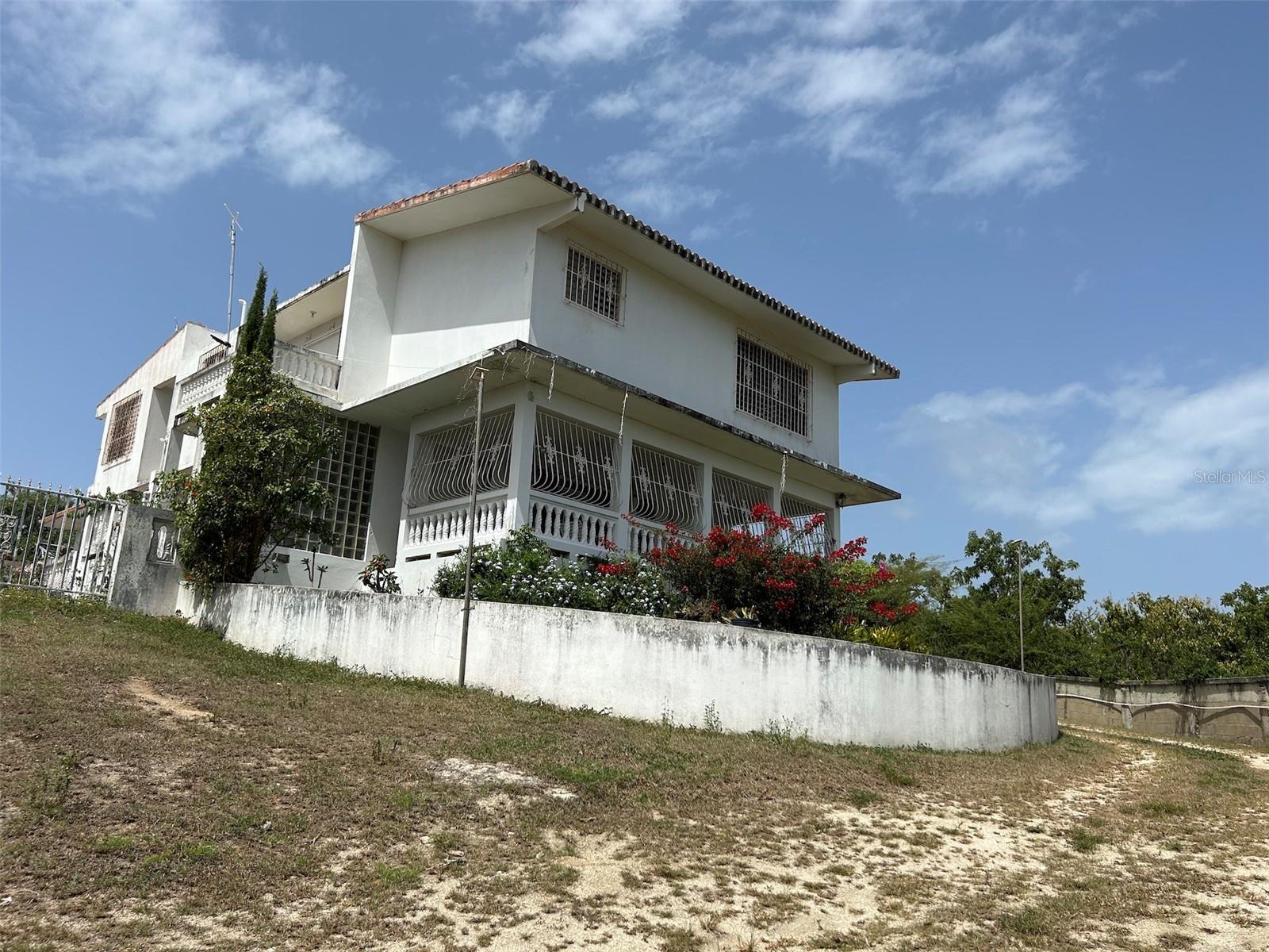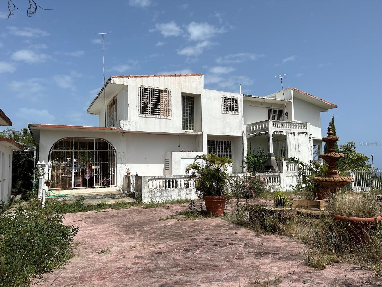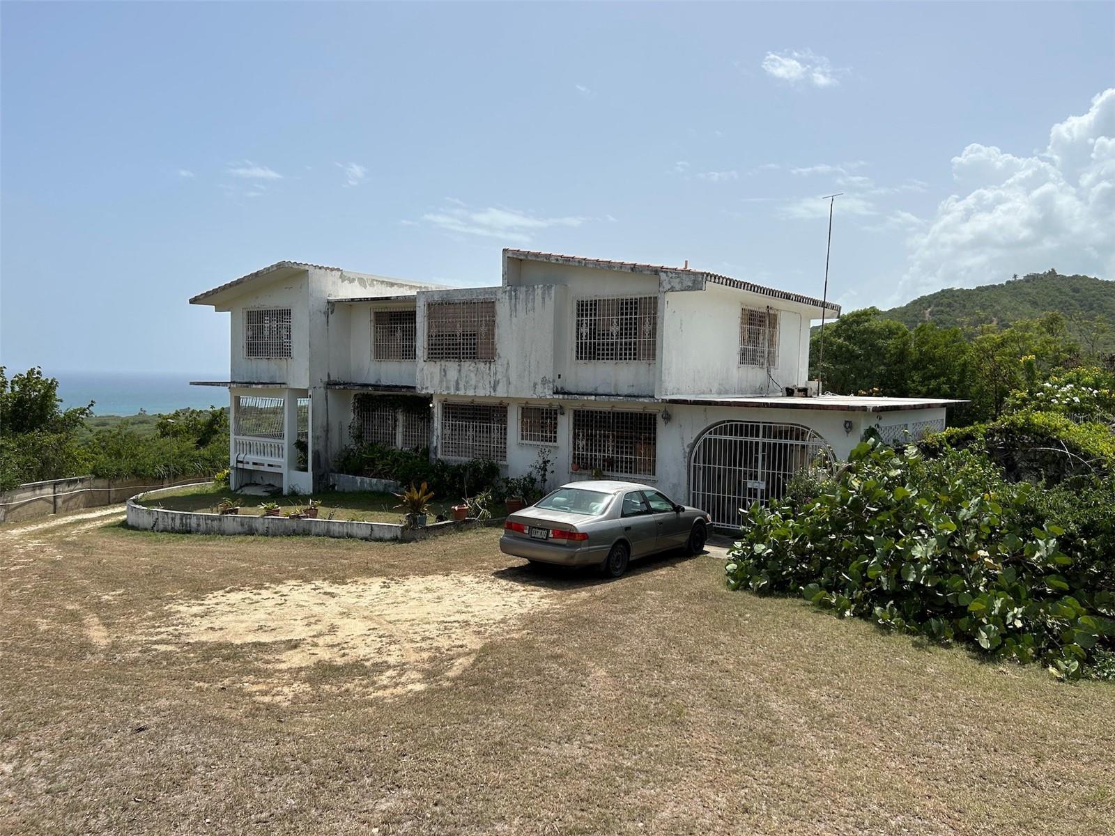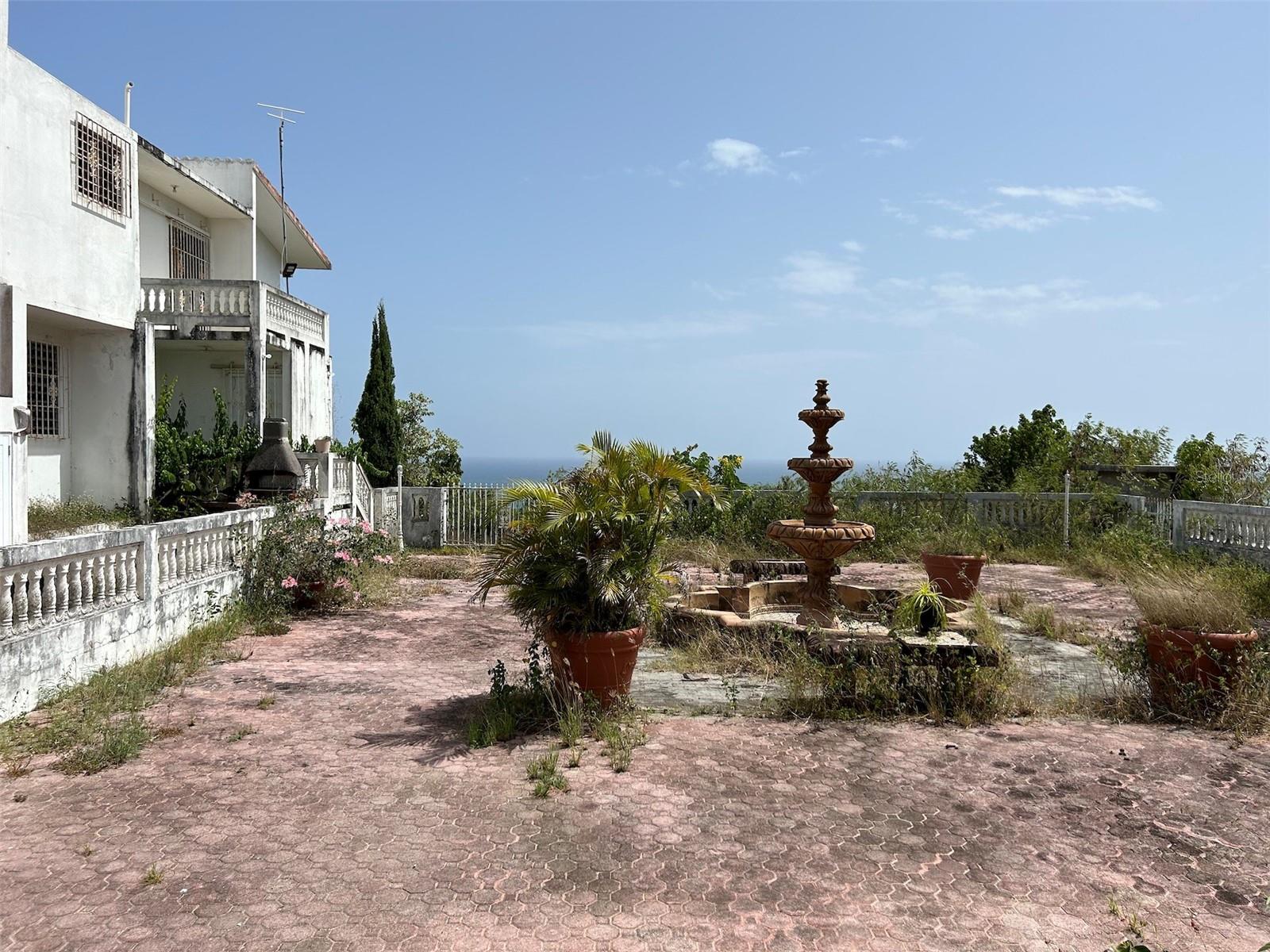 A grand residence with acreage, exceptional views, perched on one of Puerto Real’s highest hills! The home’s first floor is a comfortable, cozy space with a veranda, a foyer, a half bathroom, laundry closet & an open kitchen-dining-living room area that opens to an ample balcony with grand views. A spanish colonial style stairway leads to the second floor with five bedrooms and a full bathroom. The master bedroom has an unfinished bathroom area. The immense ground level courtyard together with it’s adjacent Great Room and two half bathrooms, is a great area for entertaining friends and guests..! The home also features a free standing, two car garage. All this on approximately two “Cuerdas” of land with sweeping views of the Caribbean Sea and the keys off Esperanza bay. Palomar Puerto Real boasts classic Spanish Caribbean home design, a private, partially walled, serene setting with some of the best views Vieques can offer. One of the most strikingly beautiful beaches is right down the hill: Playa Negra & El Malecon, with it’s restaurants and stores, a mere five minutes by car.
