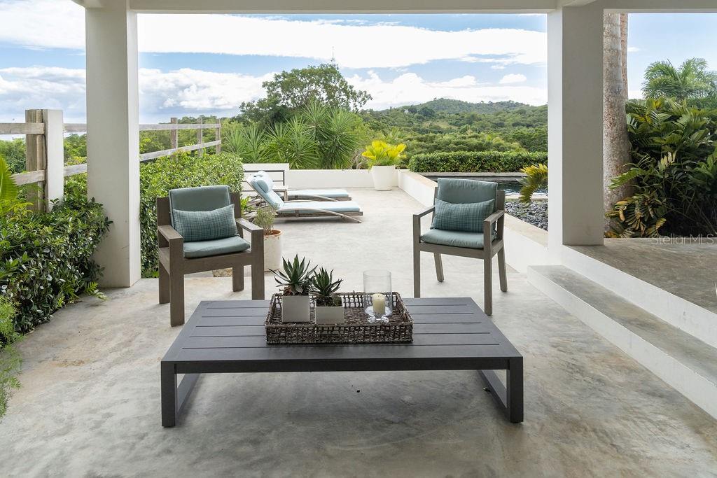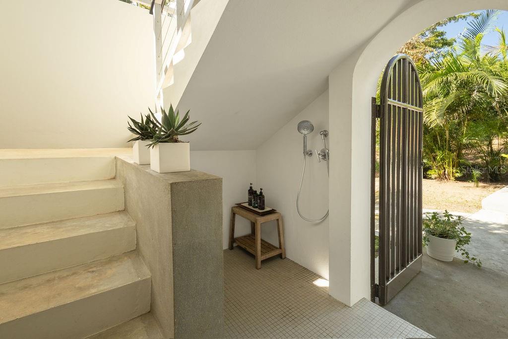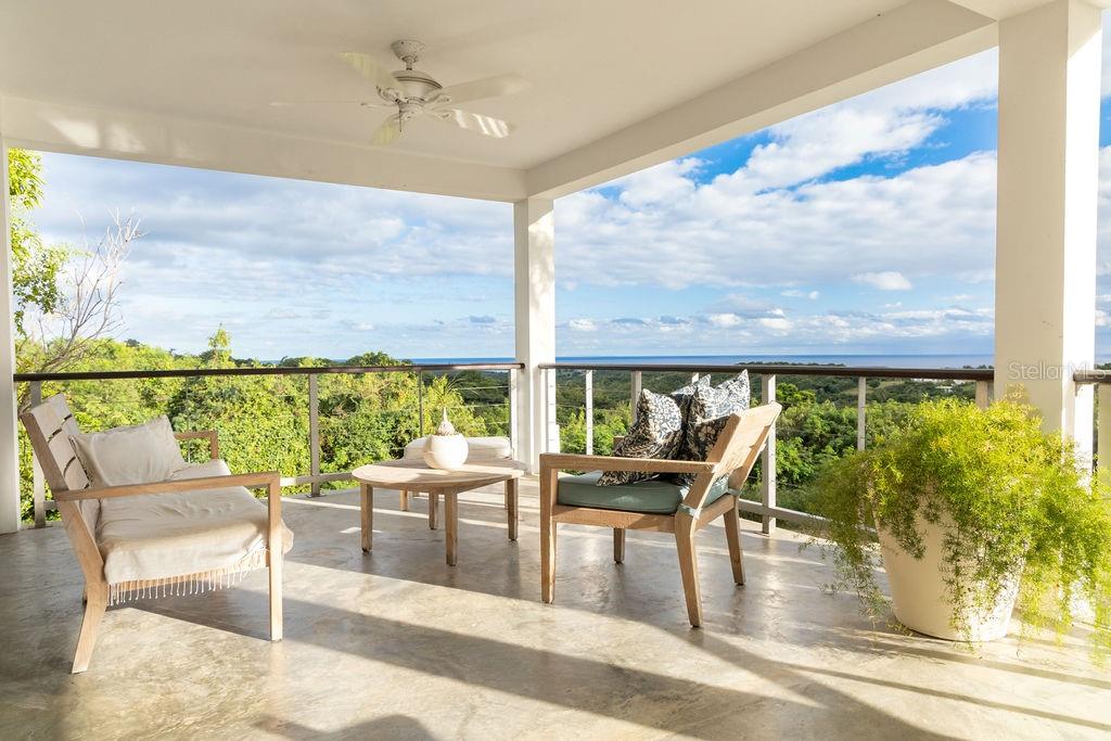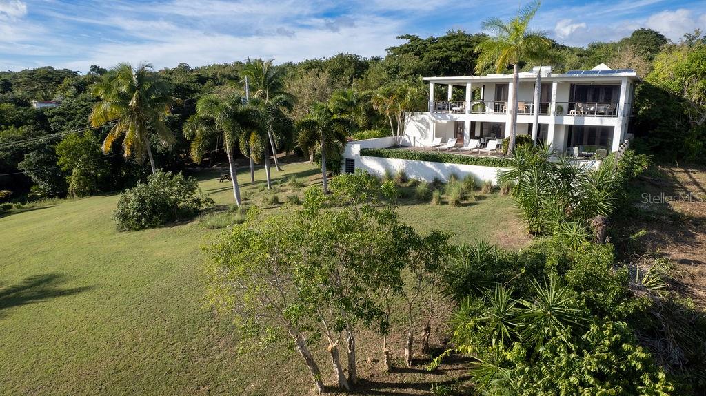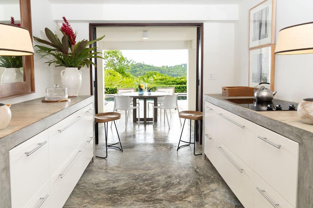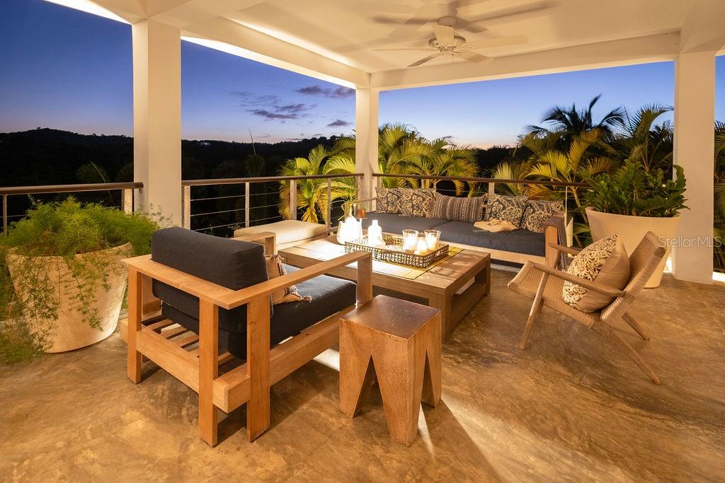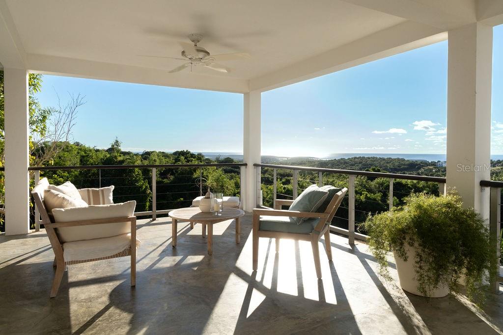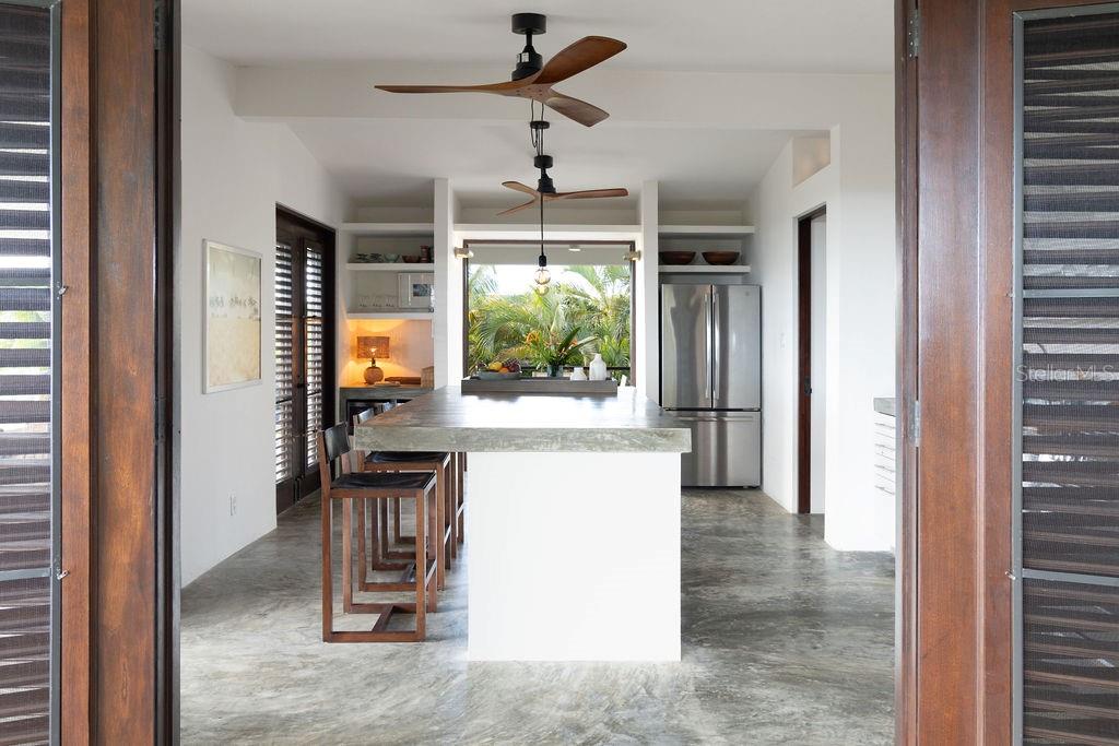 Un Poco De Fe, featured in Coastal Living magazine, is a state of the art villa located in the coveted tropical hills of el Pilón. As you enter into the property, a long tree-lined driveway leads to the highest point of the private lot, revealing this hidden architectural gem. The magical setting with stunning water views of the Caribbean sea is surrounded by nearly three acres of undeveloped lush land, giving the property a feel of seclusion without isolation. Embracing outdoor living, the house is wrapped in balconies and patios, gracefully opening out into nature and the expansive panoramic horizon. With custom Mahogany floor-to-ceiling French louvered doors and windows, the home was designed to maximize the gentle breeze and views of the Caribbean, St. Croix, and the rolling hills of Vieques. The south-facing home almost acts as a sundial, highlighting the changing light from sunrise to sunset through the day. Renowned Interior Designer Ray Booth designed the home, interiors and landscapes, harmoniously blending tropical and minimalist elegance. The open and spacious floor plan is evocative of Downtown loft meets Caribbean Hacienda, a perfect canvas to showcase a great collection of art. Warm lighting throughout the property creates an intimate ambience both in the private quarters and the many outdoor living and dining areas. The upper level has its principal living and dining areas, along with a principal bedroom suite. Among its many beautiful features, is a distinctive wrap-around terrace with outdoor dining and living spaces where the enchanting water views can be taken in. At the heart of the living space is an open gourmet kitchen, which has hand-crafted polished cement floors and counters surrounding a massive island with bar seating. On the eastern-side, the principal bedroom opens up to perfectly frame the sunrises and the ocean views. An adjacent private sitting room with ceiling height closets, can be a perfect spot for reading, study or a quiet work-from-home space. The large and airy bathroom has double sinks and an indulgent outdoor shower that welcomes in the afternoon sun. On the lower level are two bedroom, two bathroom private suites with a generous centrally located second full kitchen, outdoor dining and living areas, and work-from-home office with inspiring views. The king sized bedroom and study, which mimic their upper level counterparts, open out to the outdoor sitting area and pool-side lounge, which are all greeted by the sunrises and morning sun. On the western side, a queen sized bedroom opens up to the pool terrace and deck area, a perfect spot to catch the afternoon sun and watch the sunset over the hills. Each bathroom has a double-sink vanity, separate water closet and a spa-like outdoor shower. The Diamondbrite gunite pool’s warm and inviting waters create a mirror-like effect reflecting the changing sky throughout the day. Encompassed by mature gardens, an exquisite collection of palms, including two Royal Palms, bougainvillea, dracaena and other tropical plants, this property completely captivates with its picturesque lush tropical surroundings. The laundry room downstairs has a solar powered refrigerator and freezer and solar mechanicals. The home is partially solar powered, fully fenced and is a successful luxury rental, with 20-years of rental income. Can be easily utilized as a two-family house. Will be sold fully furnished with custom and imported pieces.