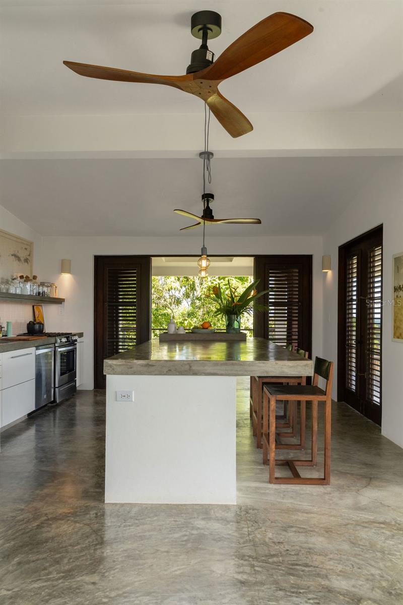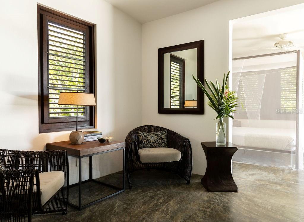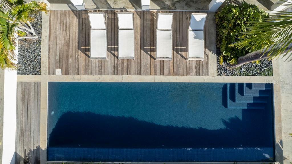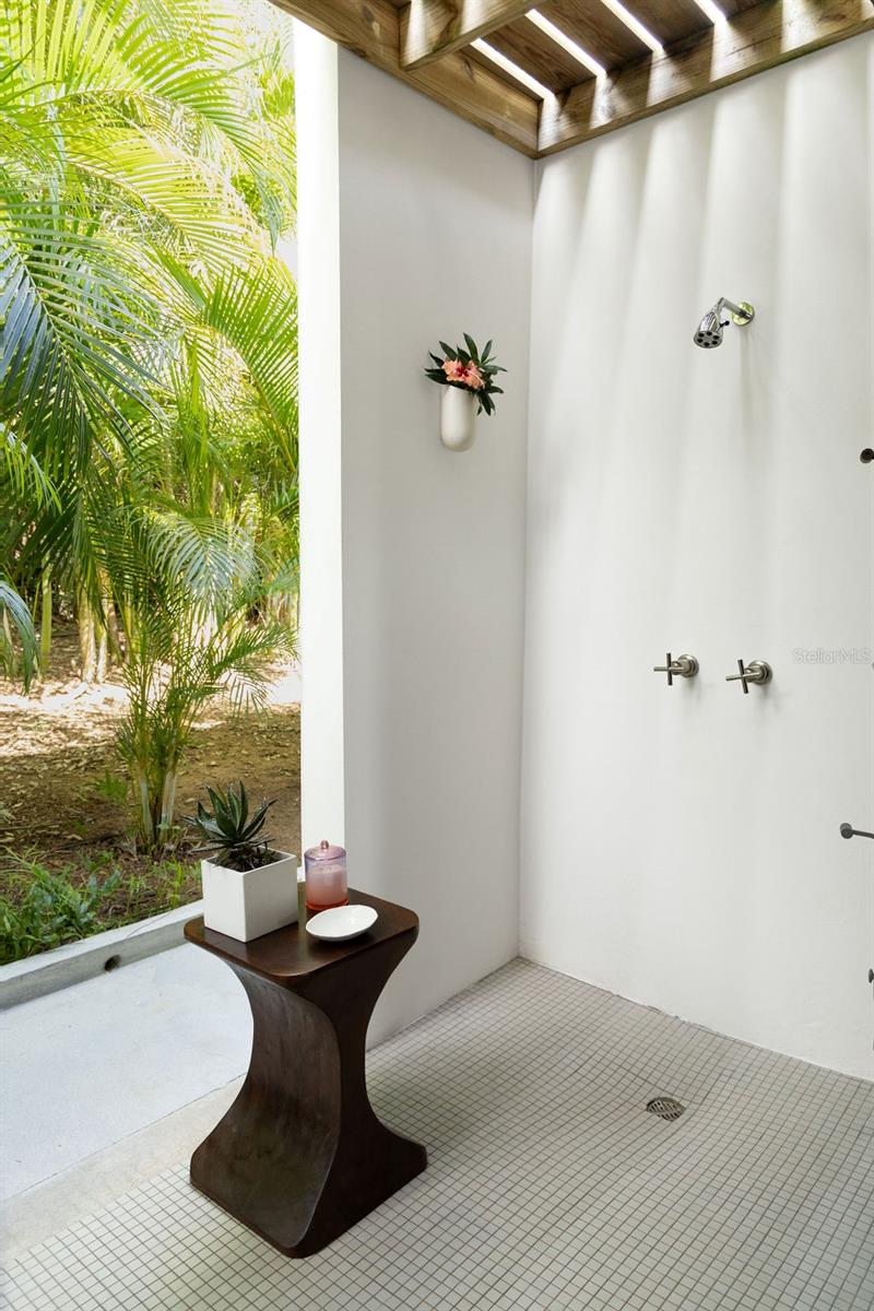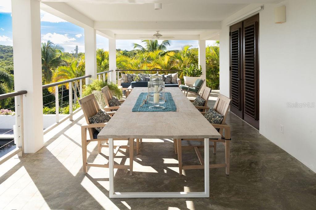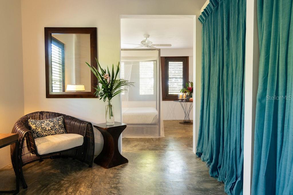Un Poco De Fe, featured in Coastal Living magazine, is a state of the art villa located in the coveted tropical hills of el Pilón. As you enter into the property, a long tree-lined driveway leads to the highest point of the private lot, revealing this hidden architectural gem. The magical setting with stunning water views of the Caribbean sea is surrounded by nearly three acres of undeveloped lush land, giving the property a feel of seclusion without isolation. Embracing outdoor living, the house is wrapped in balconies and patios, gracefully opening out into nature and the expansive panoramic horizon. With custom Mahogany floor-to-ceiling French louvered doors and windows, the home was designed to maximize the gentle breeze and views of the Caribbean, St. Croix, and the rolling hills of Vieques. The south-facing home almost acts as a sundial, highlighting the changing light from sunrise to sunset through the day. Renowned Interior Designer Ray Booth designed the home, interiors and landscapes, harmoniously blending tropical and minimalist elegance. The open and spacious floor plan is evocative of Downtown loft meets Caribbean Hacienda, a perfect canvas to showcase a great collection of art. Warm lighting throughout the property creates an intimate ambience both in the private quarters and the many outdoor living and dining areas. The upper level has its principal living and dining areas, along with a principal bedroom suite. Among its many beautiful features, is a distinctive wrap-around terrace with outdoor dining and living spaces where the enchanting water views can be taken in. At the heart of the living space is an open gourmet kitchen, which has hand-crafted polished cement floors and counters surrounding a massive island with bar seating. On the eastern-side, the principal bedroom opens up to perfectly frame the sunrises and the ocean views. An adjacent private sitting room with ceiling height closets, can be a perfect spot for reading, study or a quiet work-from-home space. The large and airy bathroom has double sinks and an indulgent outdoor shower that welcomes in the afternoon sun. On the lower level are two bedroom, two bathroom private suites with a generous centrally located second full kitchen, outdoor dining and living areas, and work-from-home office with inspiring views. The king sized bedroom and study, which mimic their upper level counterparts, open out to the outdoor sitting area and pool-side lounge, which are all greeted by the sunrises and morning sun. On the western side, a queen sized bedroom opens up to the pool terrace and deck area, a perfect spot to catch the afternoon sun and watch the sunset over the hills. Each bathroom has a double-sink vanity, separate water closet and a spa-like outdoor shower. The Diamondbrite gunite pool’s warm and inviting waters create a mirror-like effect reflecting the changing sky throughout the day. Encompassed by mature gardens, an exquisite collection of palms, including two Royal Palms, bougainvillea, dracaena and other tropical plants, this property completely captivates with its picturesque lush tropical surroundings. The laundry room downstairs has a solar powered refrigerator and freezer and solar mechanicals. The home is partially solar powered, fully fenced and is a successful luxury rental, with 20-years of rental income. Can be easily utilized as a two-family house. Will be sold fully furnished with custom and imported pieces.