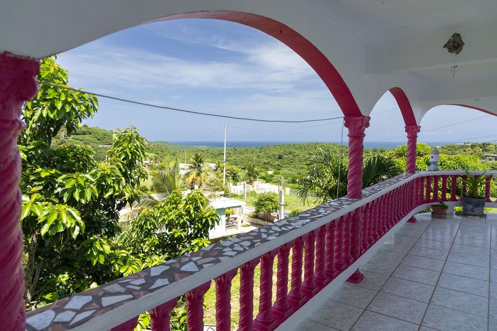 Situated at the top of a quiet dead-end street in Monte Carmelo, Casa Genoveva’s elevation provides a constant breeze and tremendous scenery. A full wrap around balcony and rooftop access maximize the views of the hillside and both the southern and northern shores of Vieques. The spacious and comfortable home sits on a sizable .44 acre lot. The house opens up to a kitchen with bar seating and a large living room with French doors that help open up the space even more. The generous principal bedroom has a seating/dressing area, a walk-in closet, and an en-suite bathroom. The residence also has a full guest bathroom and bedroom. In addition to the main carport, below is a storage / covered parking area which could easily be transformed into a second unit or loft with high ceilings. This beautiful property can also be built up, with the beginnings of a kitchen in place. The structure has been well maintained, has a 1,000 gallon cistern, and is wheel chair accessible.