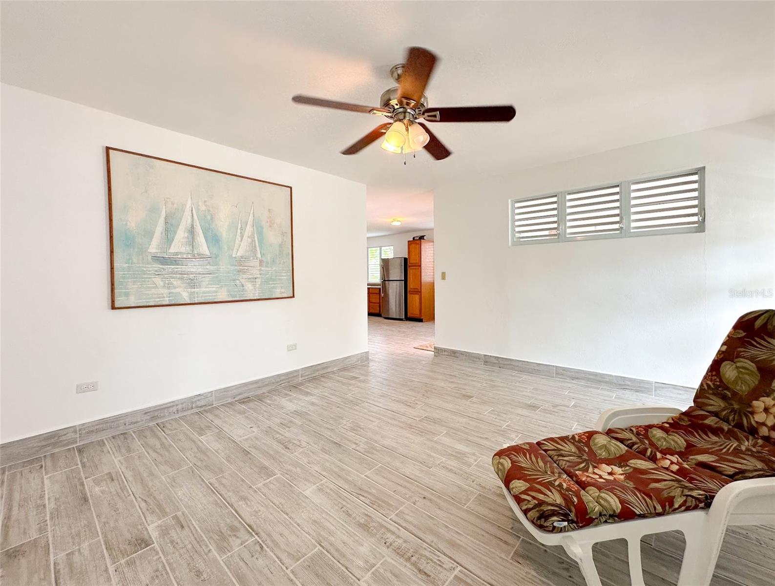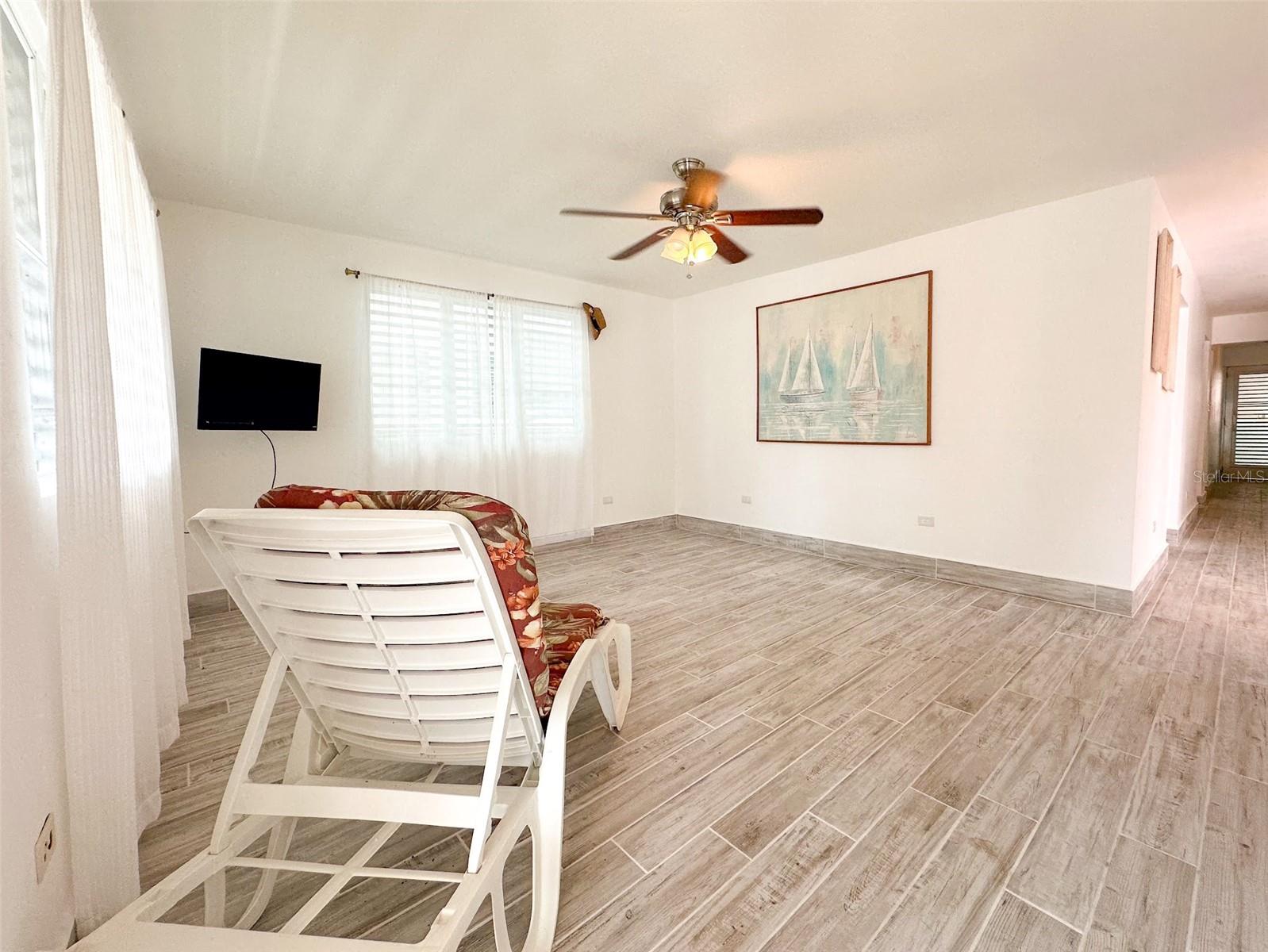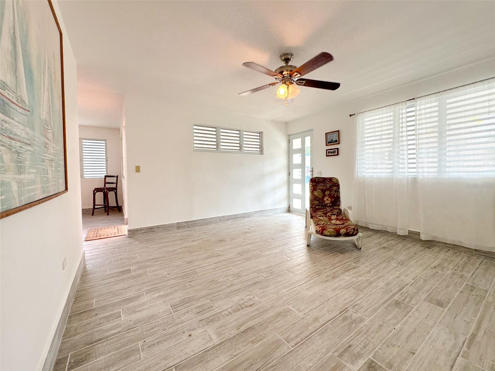 Discover this beautiful and well-maintained Esperanza home, featuring 3 bedrooms and 2 bathrooms, with approximately 1,000 sq. ft. of interior living space. Enjoy an additional 560 sq. ft. of space in the marquesina and front porch, plus another 250 sq. ft. of covered back porch area. The home includes an eat-in kitchen with a separate entrance into the dining area, and a spacious living room at the front of the house. The bedrooms are conveniently located off the main hallway, along with a spacious primary bathroom. Step out the back door to a serene retreat featuring a covered back porch, a second full bathroom, and a laundry area. This space offers potential for an additional unit, a large master suite, or an office. The property includes a small banana patch and green space on the south side, creating an in-town oasis feel. You'll find ample closet and storage space throughout the home. The garage can accommodate 4 cars or be reconfigured for additional living space or another bedroom. Recent updates include new windows and doors in the living areas, all new interior doors, lighting and beautiful coastal gray tile throughout. Both bathrooms have been fully remodeled including all fixtures, tiles and doors. The home features 3 air-conditioned bedrooms, all appliances included, making it move-in ready. Located in the prime area of Esperanza, you'll be close to the world-famous Sunbay Beach, restaurants, shopping, and the natural wonder of the bioluminescent bay. Schedule your showing today as this Esperanza gem will not last long on the market.