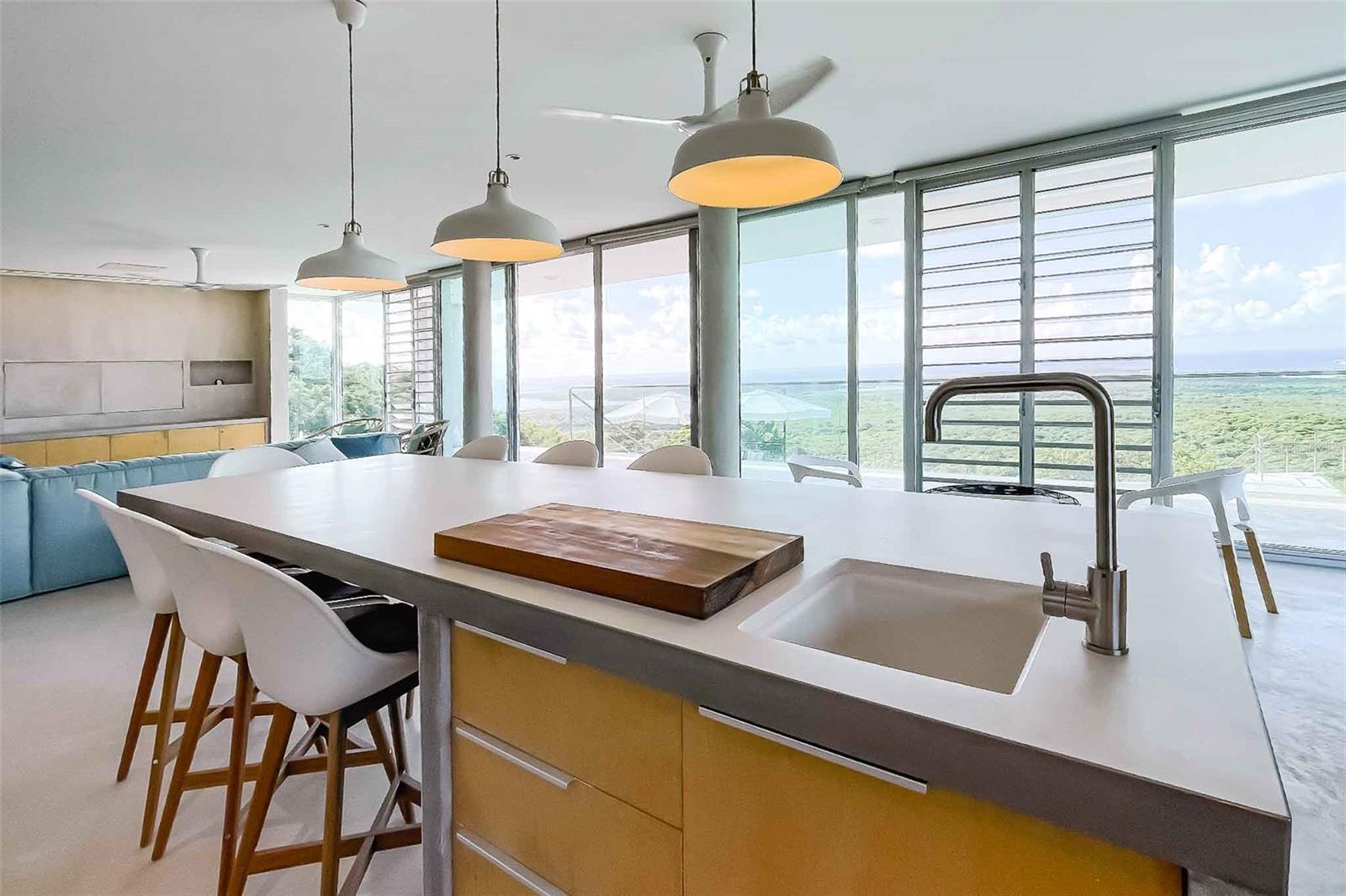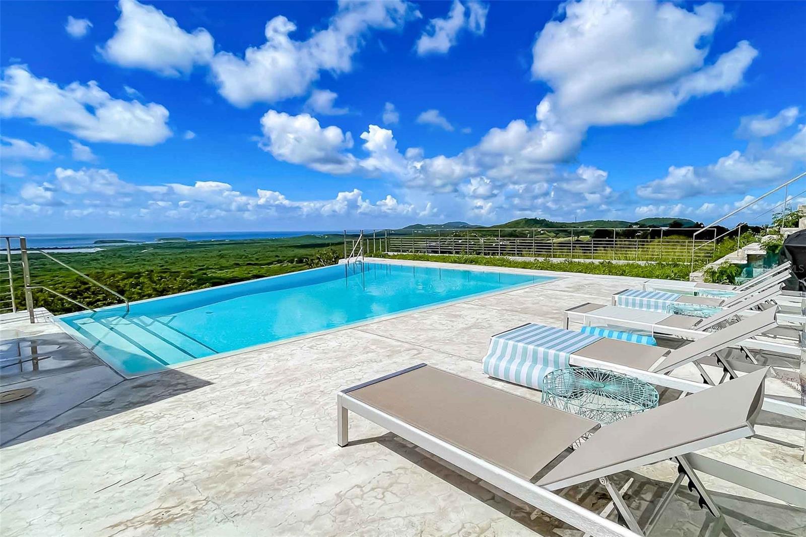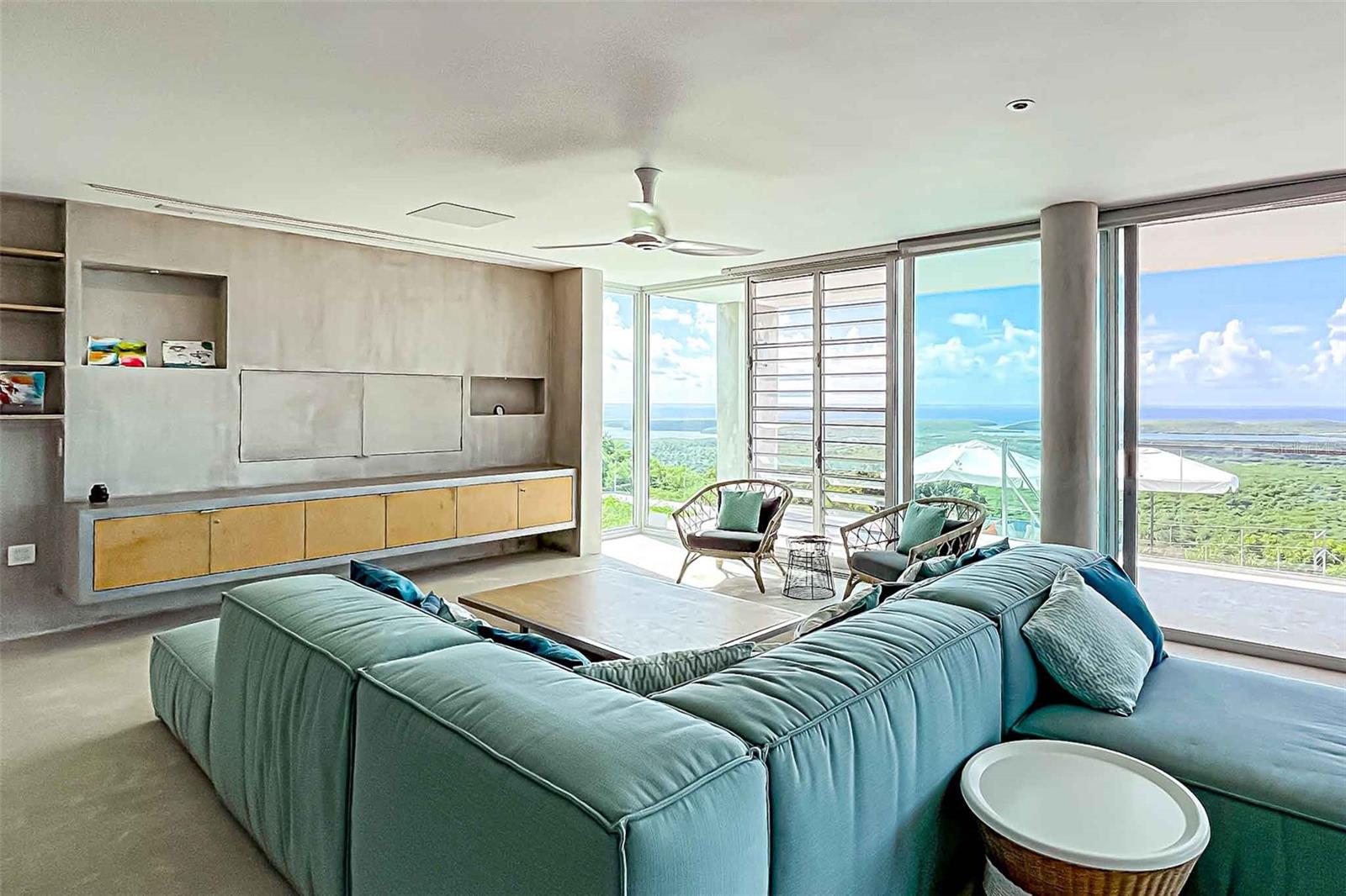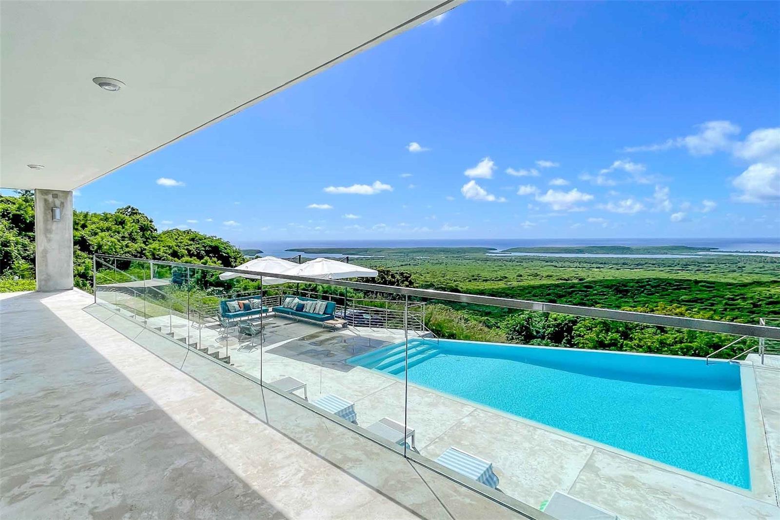 Casa Viento Norte on Vieques Island offers a luxurious Caribbean lifestyle. Imagine waking up to the Caribbean sun through floor-to-ceiling glass doors, with the scent of fresh coffee from your state-of-the-art kitchen. Located in the sought-after Los Chivos neighborhood, this property is more than just a home; it’s your dream Caribbean retreat. Designed by renowned architect Carlos Fierro, this contemporary tropical home features a polished concrete plaster finish, blending modern aesthetics with earthy appeal. Situated on one of the highest points of Vieques, Casa Viento Norte offers unobstructed views of both the north and south coasts. From the comfort of your home, gaze at the shimmering Caribbean Sea, the lush terrain towards Mount Pirata, and even catch a glimpse of El Yunque rainforest on the Puerto Rican mainland. Casa Viento Norte embraces its natural surroundings while offering modern luxury. The house is fully furnished with custom-made pieces crafted in Puerto Rico, so all you need is your toothbrush. The open-plan first floor seamlessly integrates indoor and outdoor spaces, perfect for entertaining or relaxing. Expansive sliding glass doors create a curtain wall of glass, leading you from the living area to the poolside patio and balcony. A large automatic cinema screen and recessed projector offer a cinematic experience at home. The chef’s kitchen centers around a sleek poured concrete island that seats eight and doubles as a bar or serving area. Top-of-the-line stainless steel appliances, custom-built cabinets, and modern finishes create a kitchen that’s as functional as it is stylish. The infinity-edge pool is the heart of Casa Viento Norte, offering breathtaking views of the world-famous BioBay, Esperanza, Puerto Ferro Bay, and Sun Bay. Solar-powered with automatic water level sensors, the pool is designed for effortless luxury. The second floor features three beautifully designed bedrooms, each with sliding glass doors opening onto a shared balcony. The primary bedroom is a private retreat with a king-size bed, en-suite bathroom, and a private terrace nook. The second bedroom can be configured with twin beds or a king-size bed, while the third bedroom offers a twin-full-trundle bunk bed. The shared bathroom includes a rain shower for a spa-like experience. The rooftop terrace, spanning 1400 square feet, offers another level of outdoor living space, perfect for yoga, sunset cocktails, or stargazing. Casa Viento Norte’s mechanical systems, including an 8000-gallon cistern and Danish pumps, ensure consistent water pressure, and circuits are ready for solar power, making off-grid living possible. The Rainbird soil irrigation system keeps the outdoor landscape lush and vibrant. Since its completion in 2022, Casa Viento Norte has been a popular short-term rental and family vacation home, offering a luxurious base to explore Vieques. Now, it’s your turn to experience the magic of Casa Viento Norte. This home is truly move-in ready, offering everything you need to start living your Caribbean dream. Whether you’re seeking a permanent residence, a vacation home, or an investment property, Casa Viento Norte is ready to welcome you. Contact us today to start your Caribbean adventure.