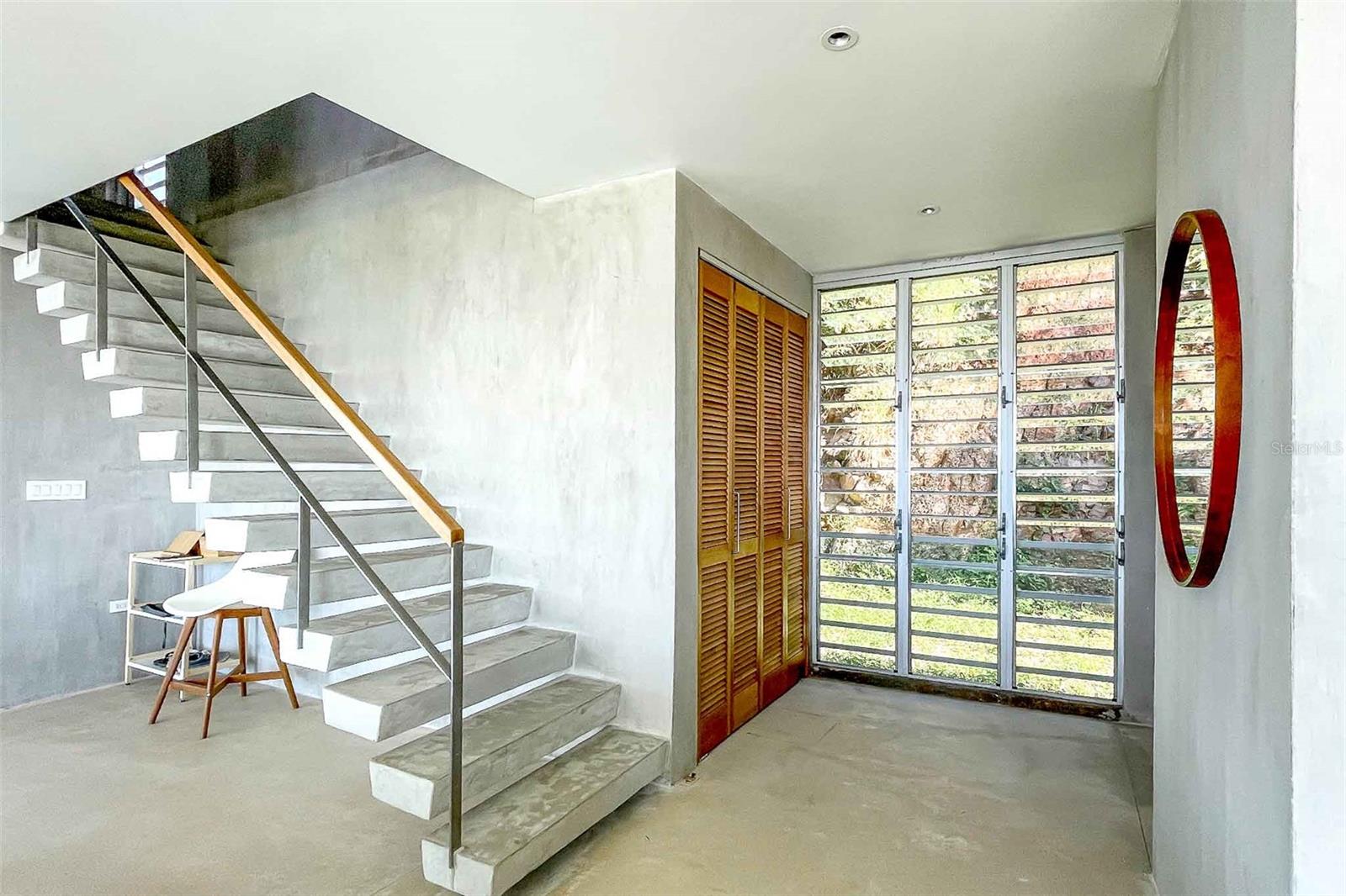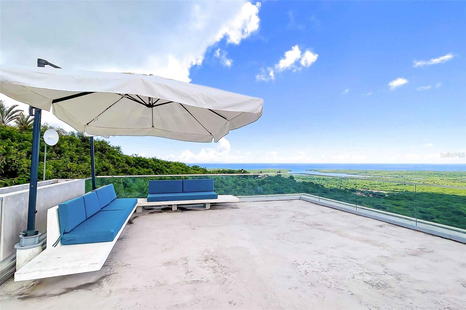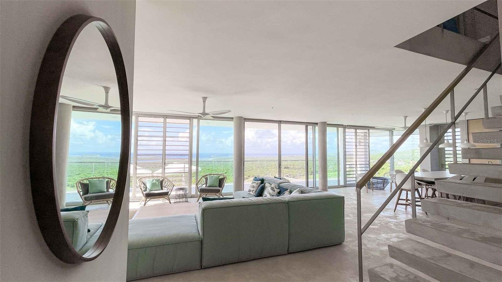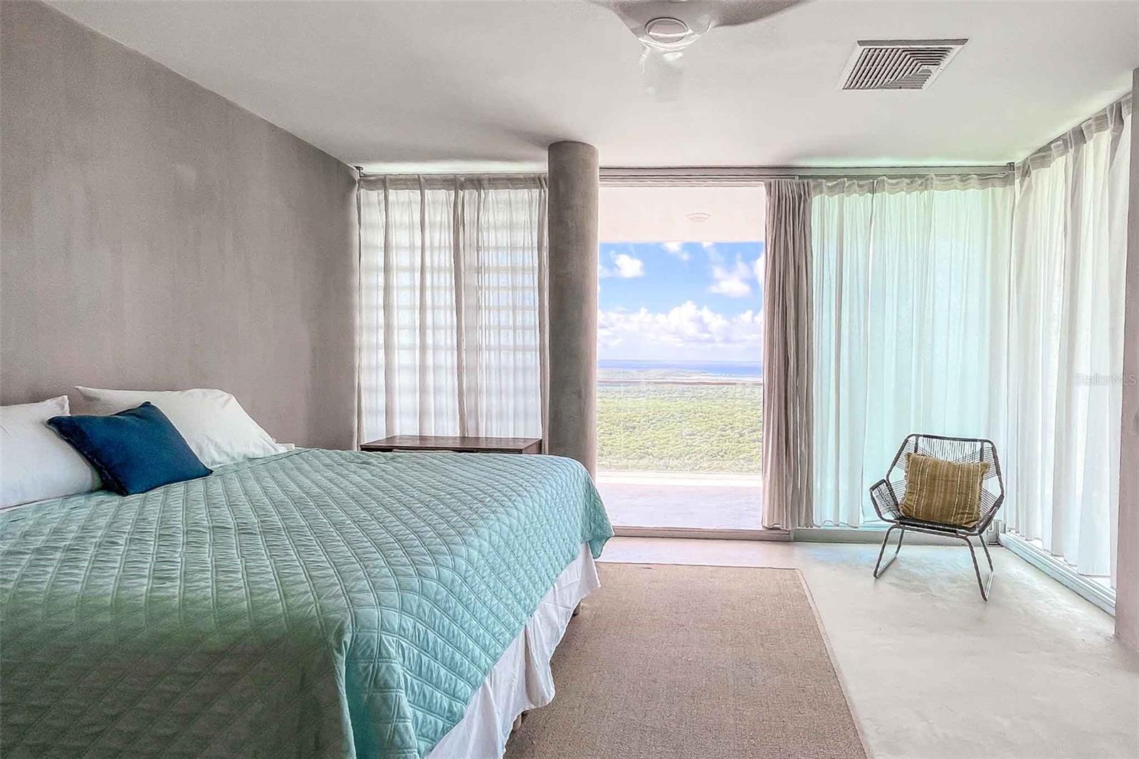 Casa Viento Norte on Vieques Island offers a luxurious Caribbean lifestyle. Imagine waking up to the Caribbean sun through floor-to-ceiling glass doors, with the scent of fresh coffee from your state-of-the-art kitchen. Located in the sought-after Los Chivos neighborhood, this property is more than just a home; it’s your dream Caribbean retreat. Designed by renowned architect Carlos Fierro, this contemporary tropical home features a polished concrete plaster finish, blending modern aesthetics with earthy appeal. Situated on one of the highest points of Vieques, Casa Viento Norte offers unobstructed views of both the north and south coasts. From the comfort of your home, gaze at the shimmering Caribbean Sea, the lush terrain towards Mount Pirata, and even catch a glimpse of El Yunque rainforest on the Puerto Rican mainland. Casa Viento Norte embraces its natural surroundings while offering modern luxury. The house is fully furnished with custom-made pieces crafted in Puerto Rico, so all you need is your toothbrush. The open-plan first floor seamlessly integrates indoor and outdoor spaces, perfect for entertaining or relaxing. Expansive sliding glass doors create a curtain wall of glass, leading you from the living area to the poolside patio and balcony. A large automatic cinema screen and recessed projector offer a cinematic experience at home. The chef’s kitchen centers around a sleek poured concrete island that seats eight and doubles as a bar or serving area. Top-of-the-line stainless steel appliances, custom-built cabinets, and modern finishes create a kitchen that’s as functional as it is stylish. The infinity-edge pool is the heart of Casa Viento Norte, offering breathtaking views of the world-famous BioBay, Esperanza, Puerto Ferro Bay, and Sun Bay. Solar-powered with automatic water level sensors, the pool is designed for effortless luxury. The second floor features three beautifully designed bedrooms, each with sliding glass doors opening onto a shared balcony. The primary bedroom is a private retreat with a king-size bed, en-suite bathroom, and a private terrace nook. The second bedroom can be configured with twin beds or a king-size bed, while the third bedroom offers a twin-full-trundle bunk bed. The shared bathroom includes a rain shower for a spa-like experience. The rooftop terrace, spanning 1400 square feet, offers another level of outdoor living space, perfect for yoga, sunset cocktails, or stargazing. Casa Viento Norte’s mechanical systems, including an 8000-gallon cistern and Danish pumps, ensure consistent water pressure, and circuits are ready for solar power, making off-grid living possible. The Rainbird soil irrigation system keeps the outdoor landscape lush and vibrant. Since its completion in 2022, Casa Viento Norte has been a popular short-term rental and family vacation home, offering a luxurious base to explore Vieques. Now, it’s your turn to experience the magic of Casa Viento Norte. This home is truly move-in ready, offering everything you need to start living your Caribbean dream. Whether you’re seeking a permanent residence, a vacation home, or an investment property, Casa Viento Norte is ready to welcome you. Contact us today to start your Caribbean adventure.
