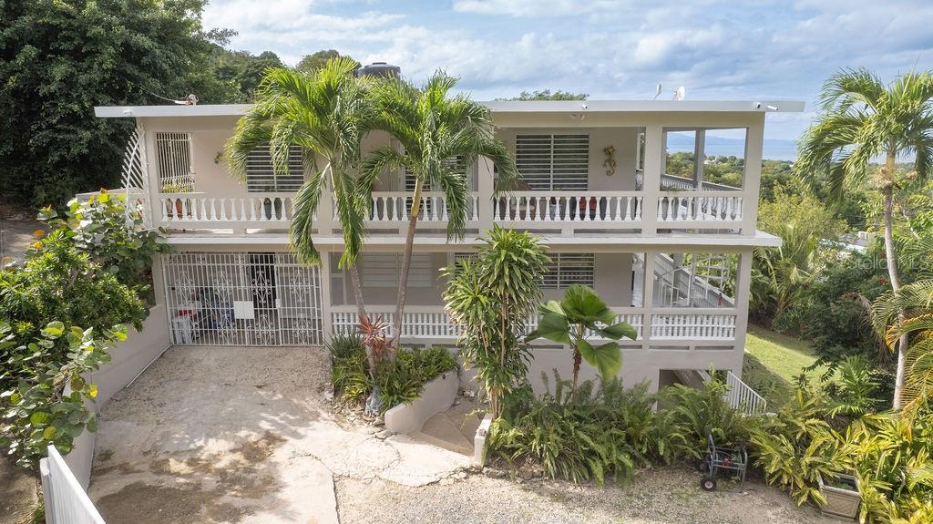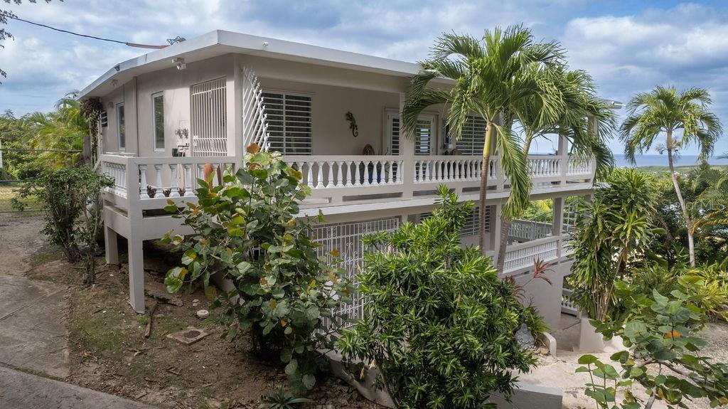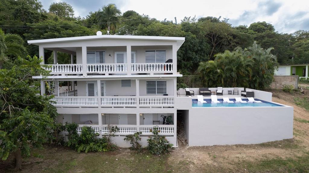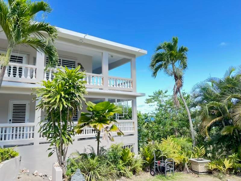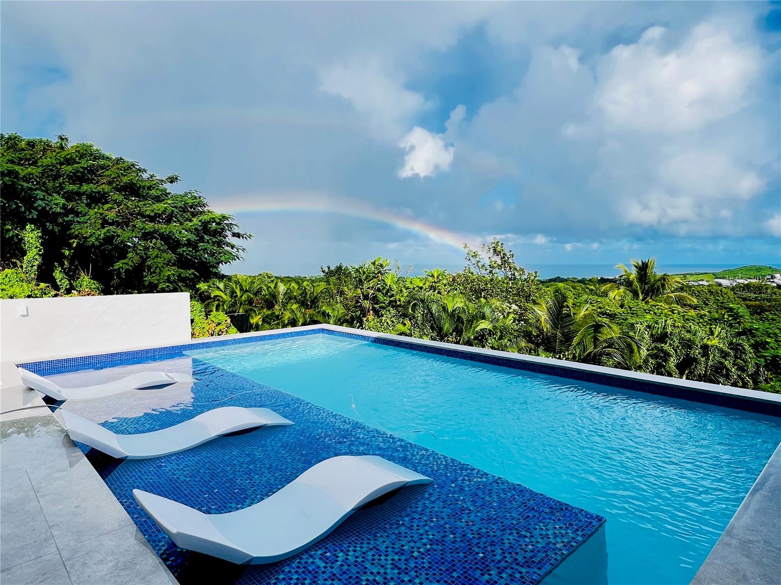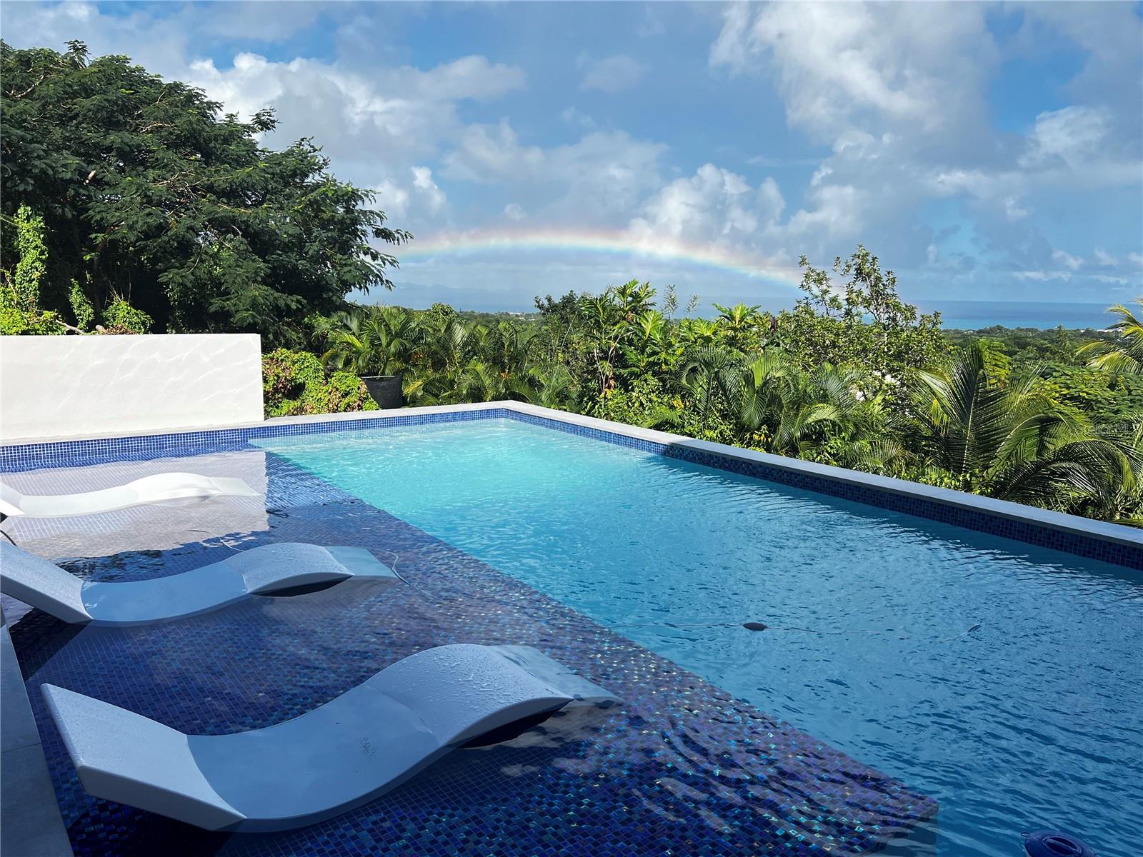 Mar Vista is nestled into the hillside in the Los Chivos neighborhood on Vieques Island and has extraordinary views of the North coast including Culebra Island and Cayo Blanco and the main island of Puerto Rico. Mar Vista is a classic Caribbean style home with three bedrooms and two bathrooms on two levels and surrounded by lush tropical gardens and a stunning, new swimming pool. Under new ownership many changes have been made including beautiful new bathroom renovations, , new windows, new mini-split air conditioners , new interior doors, new furniture, removal of trees to enhance the views and new equipment. This is a must see! The top level has the primary bedroom and bathroom both being very spacious. The bathroom is newly renovated with beautiful concrete counters, white fixtures and contemporary tiles. The upper level with primary bedroom is the main gathering area with a large open concept living area featuring panoramic ocean views from inside as well as from the oversized wrap around balconies. The very large kitchen is functional and has white kitchen cabinets and beautiful granite counter tops. The cook top has six burners and is gas. The middle level of the home is reached connected by a stairway and is completely self contained second unit. There are two guest rooms sharing an all newly renovated bathroom. The home has a generous open floor plan with kitchen, living room and dining area all sweeping out to large outdoor balconies. The pool is easily accessed through the back door of the home. There large storage area, craft room or shop on this level as well. The lower level of the home features a laundry for the whole property and ample owner's storage space. The home has secure off street parking and beautiful mature tropical landscaping. All three bedrooms have mini split air conditioning systems, security systems and the home is sold turn key furnished. The home features a back up water cistern and a solar hot water heater and an electric back-up generator. Mar Vista is surrounded by tropical gardens that will delight you. There are beautiful palm trees, succulents, colorful Bougainvillea and Heliconia, ferns and many other delights.