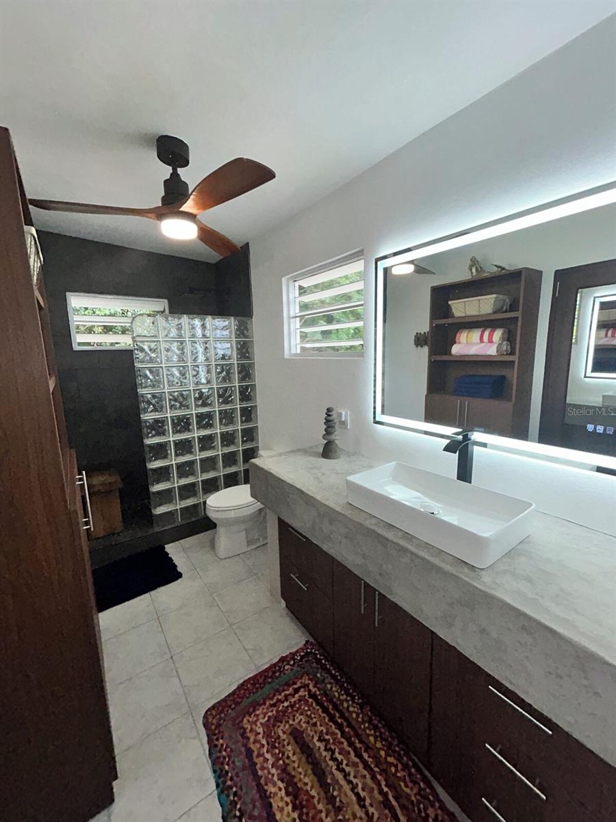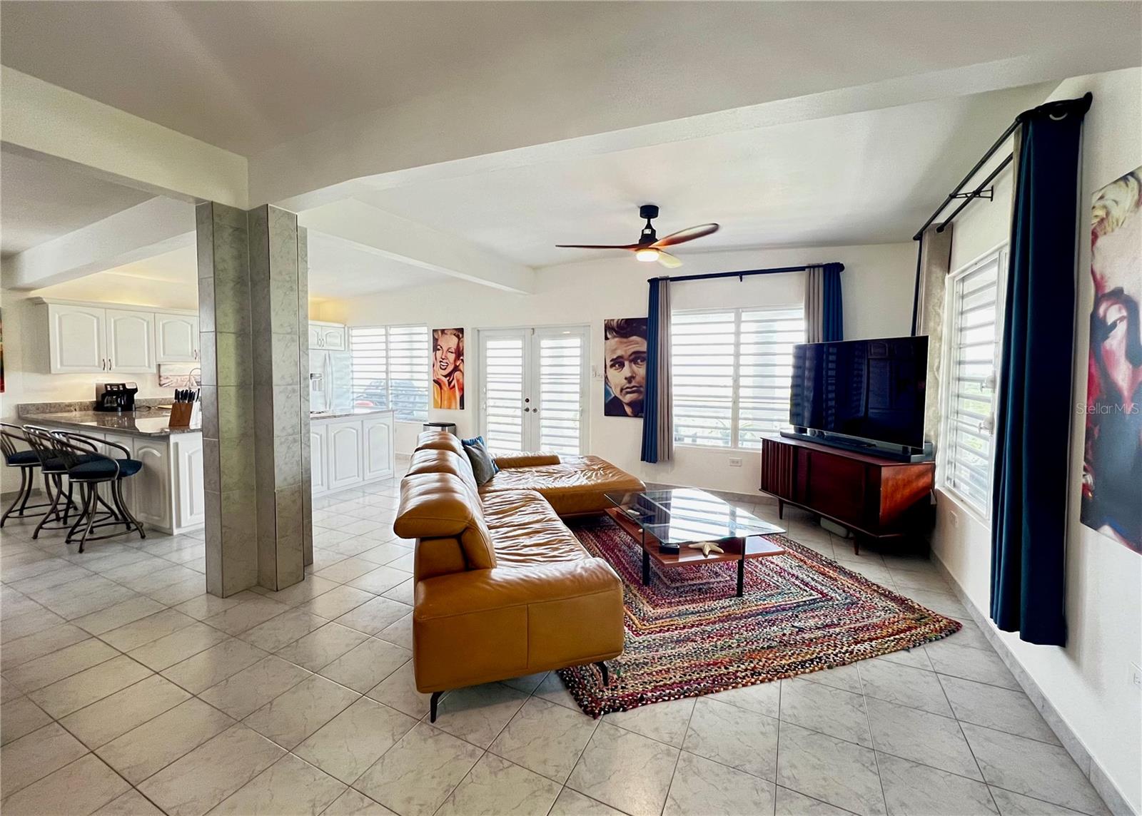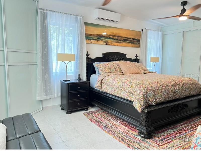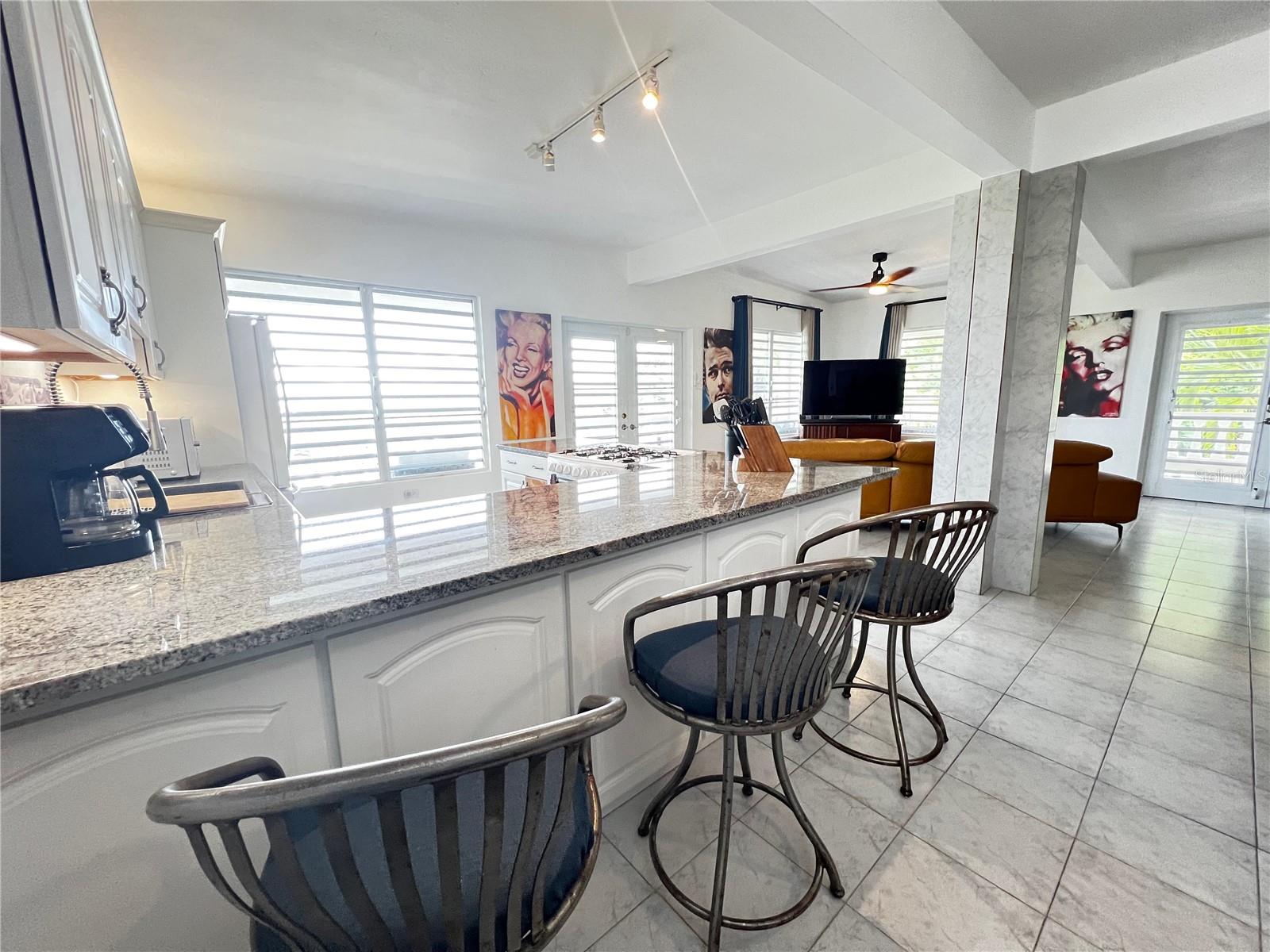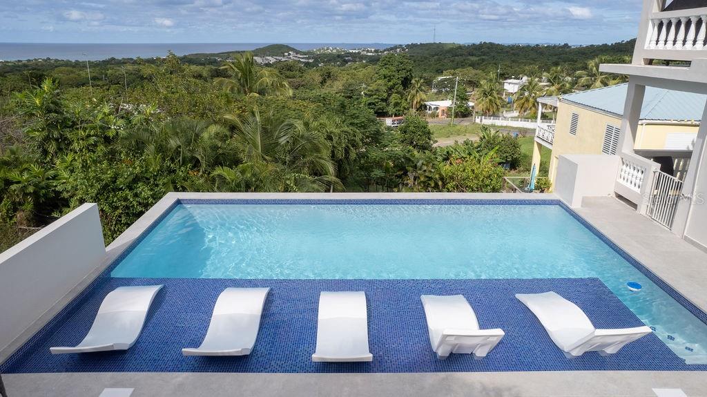 Mar Vista is nestled into the hillside in the Los Chivos neighborhood on Vieques Island and has extraordinary views of the North coast including Culebra Island and Cayo Blanco and the main island of Puerto Rico. Mar Vista is a classic Caribbean style home with three bedrooms and two bathrooms on two levels and surrounded by lush tropical gardens and a stunning, new swimming pool. Under new ownership many changes have been made including beautiful new bathroom renovations, , new windows, new mini-split air conditioners , new interior doors, new furniture, removal of trees to enhance the views and new equipment. This is a must see! The top level has the primary bedroom and bathroom both being very spacious. The bathroom is newly renovated with beautiful concrete counters, white fixtures and contemporary tiles. The upper level with primary bedroom is the main gathering area with a large open concept living area featuring panoramic ocean views from inside as well as from the oversized wrap around balconies. The very large kitchen is functional and has white kitchen cabinets and beautiful granite counter tops. The cook top has six burners and is gas. The middle level of the home is reached connected by a stairway and is completely self contained second unit. There are two guest rooms sharing an all newly renovated bathroom. The home has a generous open floor plan with kitchen, living room and dining area all sweeping out to large outdoor balconies. The pool is easily accessed through the back door of the home. There large storage area, craft room or shop on this level as well. The lower level of the home features a laundry for the whole property and ample owner's storage space. The home has secure off street parking and beautiful mature tropical landscaping. All three bedrooms have mini split air conditioning systems, security systems and the home is sold turn key furnished. The home features a back up water cistern and a solar hot water heater and an electric back-up generator. Mar Vista is surrounded by tropical gardens that will delight you. There are beautiful palm trees, succulents, colorful Bougainvillea and Heliconia, ferns and many other delights.