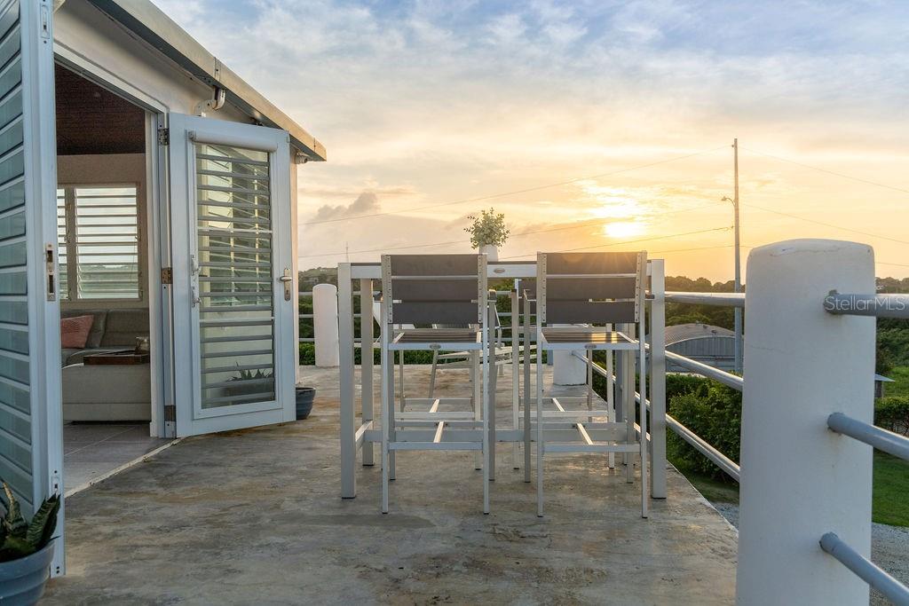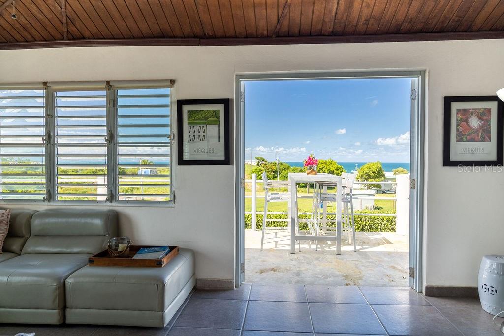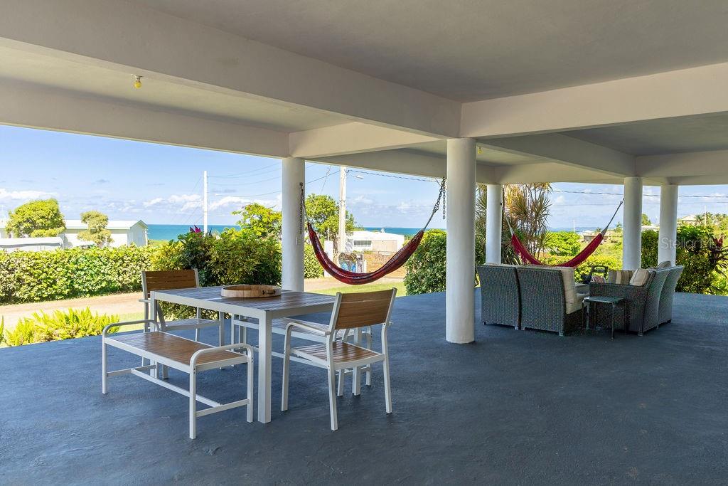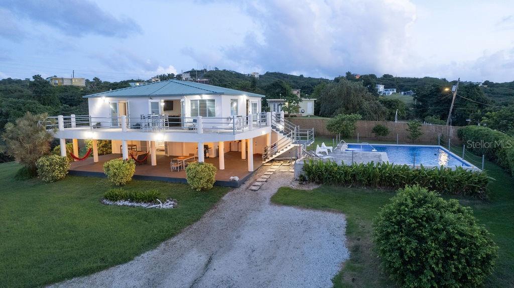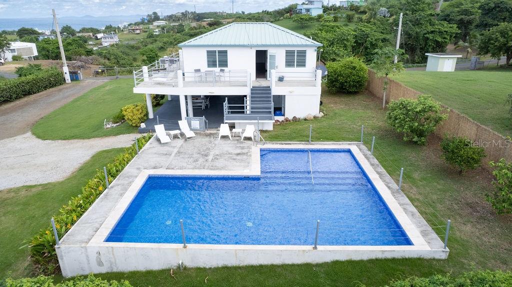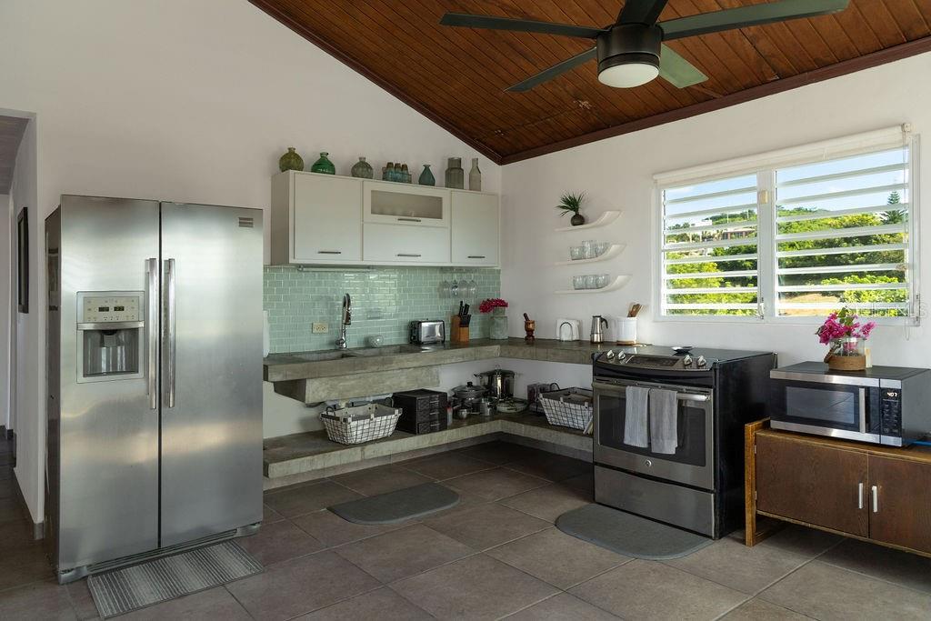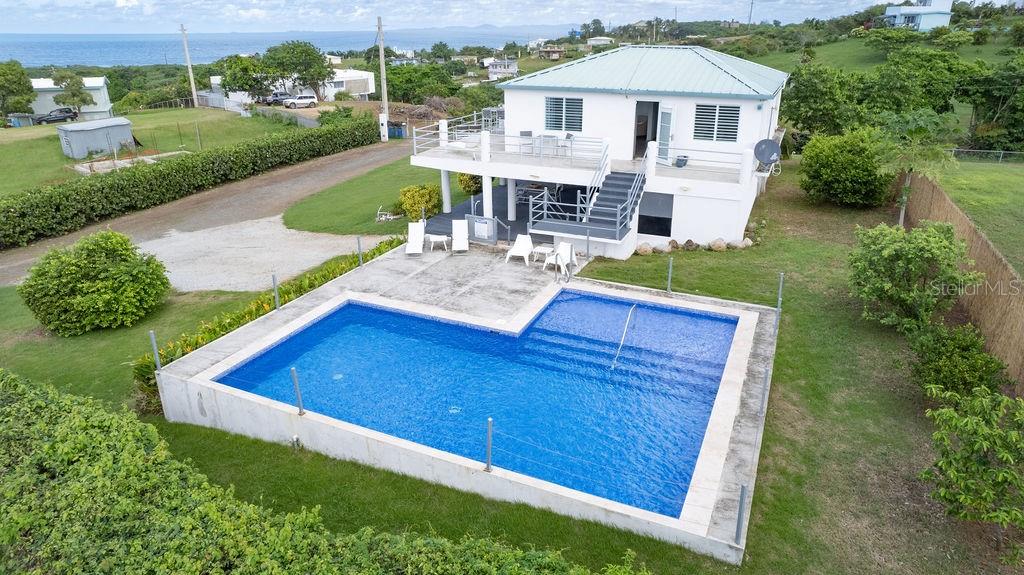 This recently constructed home offers a peaceful retreat with panoramic ocean vistas stretching toward Culebra and the main island. Located on a quiet and generous half acre of land and just a fifteen minute walk from the pristine sands of Bastimento Beach, this property provides the perfect balance of comfort and tranquility. The modern and solidly built two-story structure with Caribbean Lower Antilles-style architecture consists of two private units that exude elegance and style. It’s thoughtful design captures the essence of laid-back island living. The upper level unit is bound by an expansive wrap-around balcony excellent for outdoor dining or relaxing while soaking in the views of the sparkling waters. Inside, the functional open-concept layout seamlessly integrates the kitchen, living, and dining areas, enhanced by vaulted ceilings that amplify the sense of space and natural light. The spacious principal bedroom enjoys ocean views, with a large bathroom shared with the guest bedroom. Downstairs’ the property continues to impress with its expansive covered outdoor terrace, perfect for entertaining or enjoying the outdoors. The lower unit is a spacious open loft with a full bathroom, kitchenette and bar height seating for versatile use - perfect for guests or as a stand-alone vacation rental unit. The property is beautifully landscaped, with a tiled pool positioned to capture the stunning sunsets each evening, offering an additional layer of luxury. Currently a profitable vacation rental, this home is a great opportunity to enjoy island living while generating income. Whether you're looking for a family retreat or a profitable vacation rental, this home offers incredible potential for its next owner.