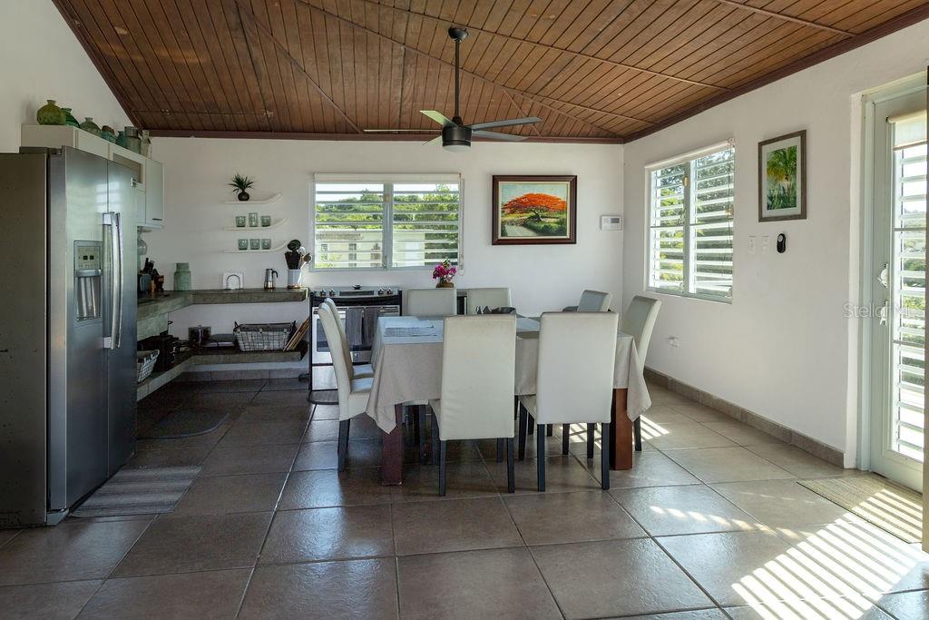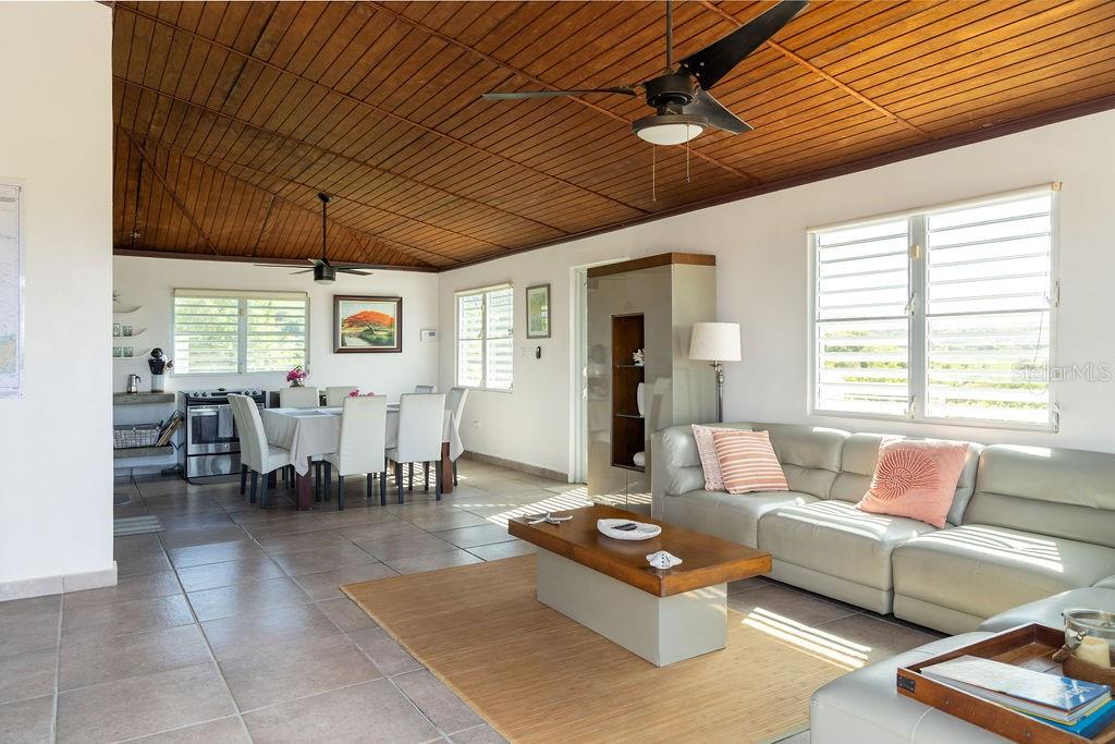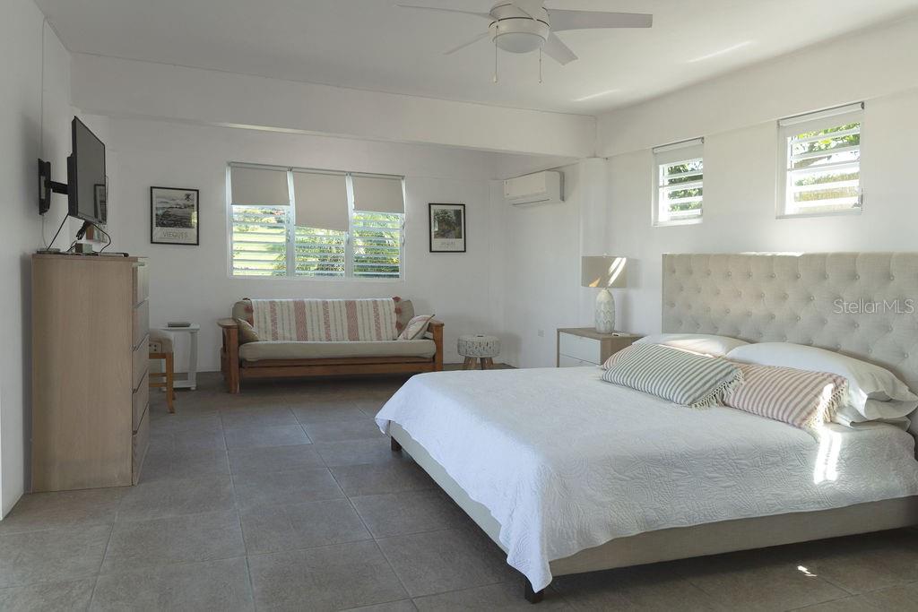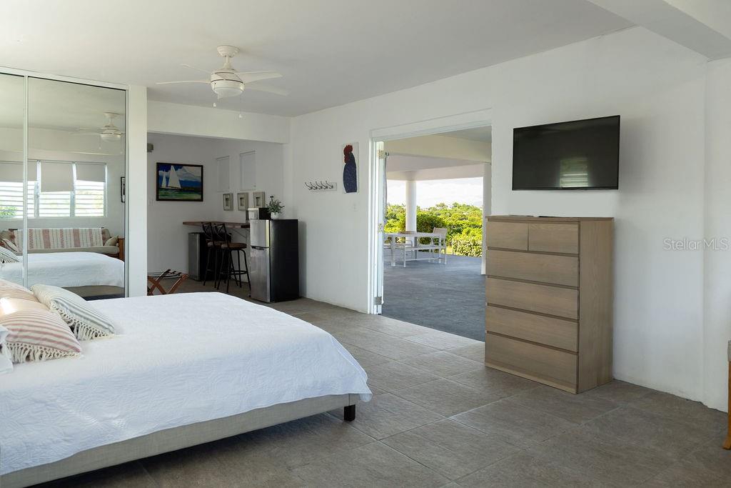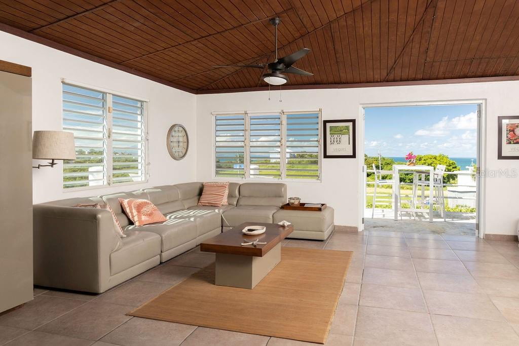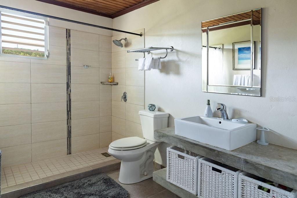 This recently constructed home offers a peaceful retreat with panoramic ocean vistas stretching toward Culebra and the main island. Located on a quiet and generous half acre of land and just a fifteen minute walk from the pristine sands of Bastimento Beach, this property provides the perfect balance of comfort and tranquility. The modern and solidly built two-story structure with Caribbean Lower Antilles-style architecture consists of two private units that exude elegance and style. It’s thoughtful design captures the essence of laid-back island living. The upper level unit is bound by an expansive wrap-around balcony excellent for outdoor dining or relaxing while soaking in the views of the sparkling waters. Inside, the functional open-concept layout seamlessly integrates the kitchen, living, and dining areas, enhanced by vaulted ceilings that amplify the sense of space and natural light. The spacious principal bedroom enjoys ocean views, with a large bathroom shared with the guest bedroom. Downstairs’ the property continues to impress with its expansive covered outdoor terrace, perfect for entertaining or enjoying the outdoors. The lower unit is a spacious open loft with a full bathroom, kitchenette and bar height seating for versatile use - perfect for guests or as a stand-alone vacation rental unit. The property is beautifully landscaped, with a tiled pool positioned to capture the stunning sunsets each evening, offering an additional layer of luxury. Currently a profitable vacation rental, this home is a great opportunity to enjoy island living while generating income. Whether you're looking for a family retreat or a profitable vacation rental, this home offers incredible potential for its next owner.