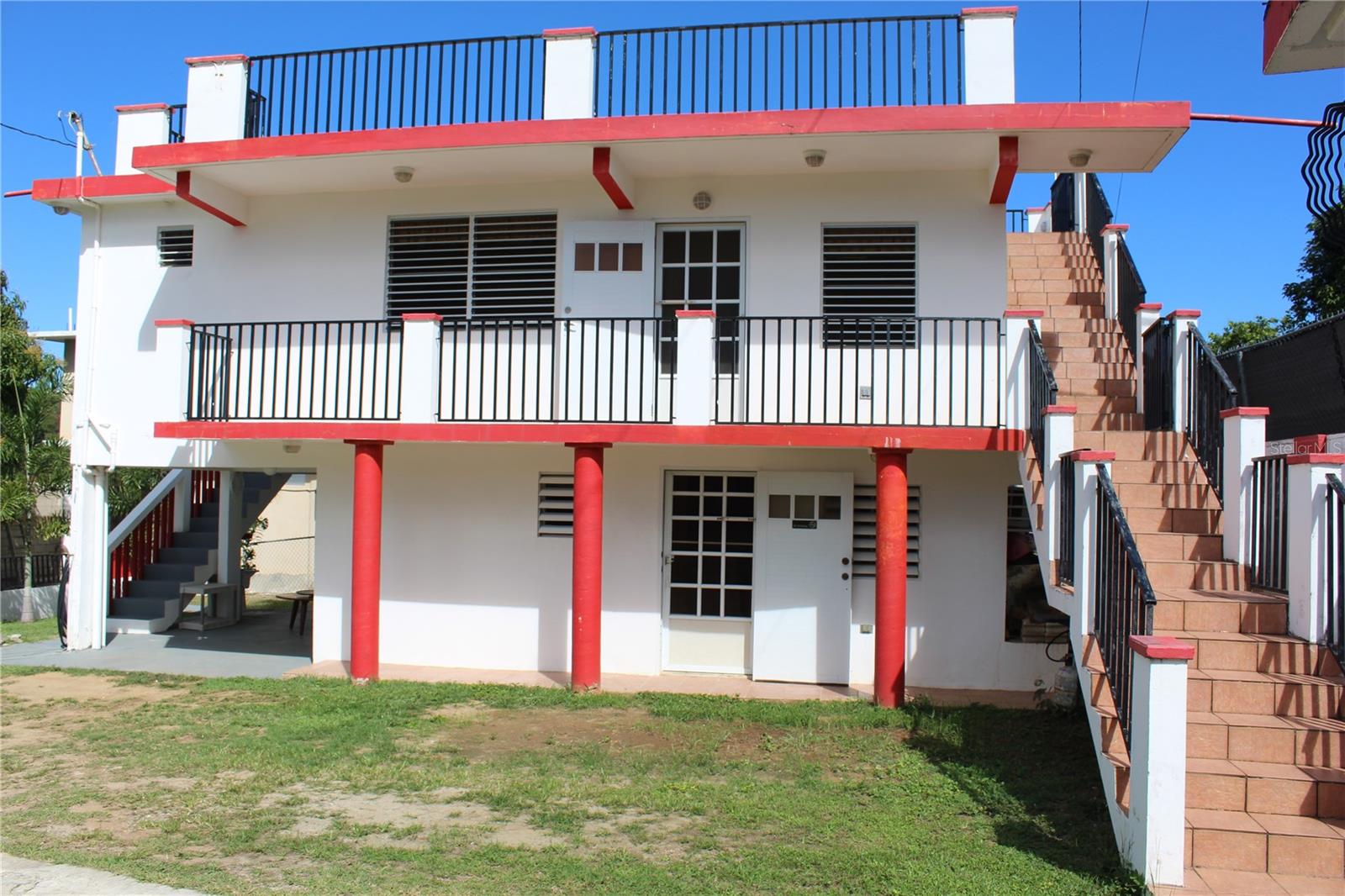Nestled in the sought-after Bravos de Boston beachside neighborhood, Sandczar is just a short walk to multiple beaches and the main town Isabel Segunda's amenities. This versatile duplex features a two-bedroom and one-bathroom main house upstairs and a one-bedroom, one-bathroom house on the lower level. This is an ideal situation for living multi-generational, having extended guests visits or one for renting for supplemental income. Enjoy stunning ocean and island views and Trade Winds from the expansive rooftop terrace. This is also a nighttime spot for star gazing. The is a shared laundry on the first floor as well as a detached concrete storage room with a safe closet inside. Step into the inviting lower-level covered outdoor living room, a favorite spot to relax in the shade and enjoy the day. This is a great all-weather lounge for sipping your morning coffee or hosting a small cocktail party. Sandczar has two beautiful and mature Palm groves with one of Foxtail Palms and one of Christmas Palms. Sandczar is the perfect place to call your retirement home, vacation rental or a serene full-time residence!