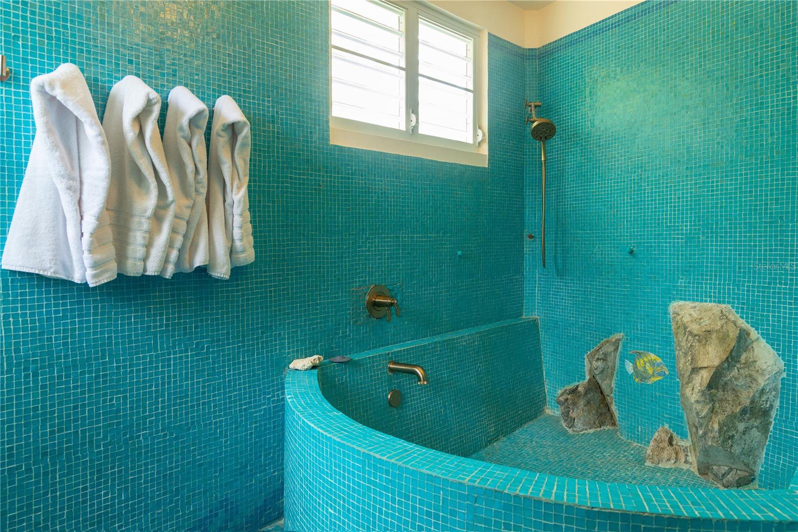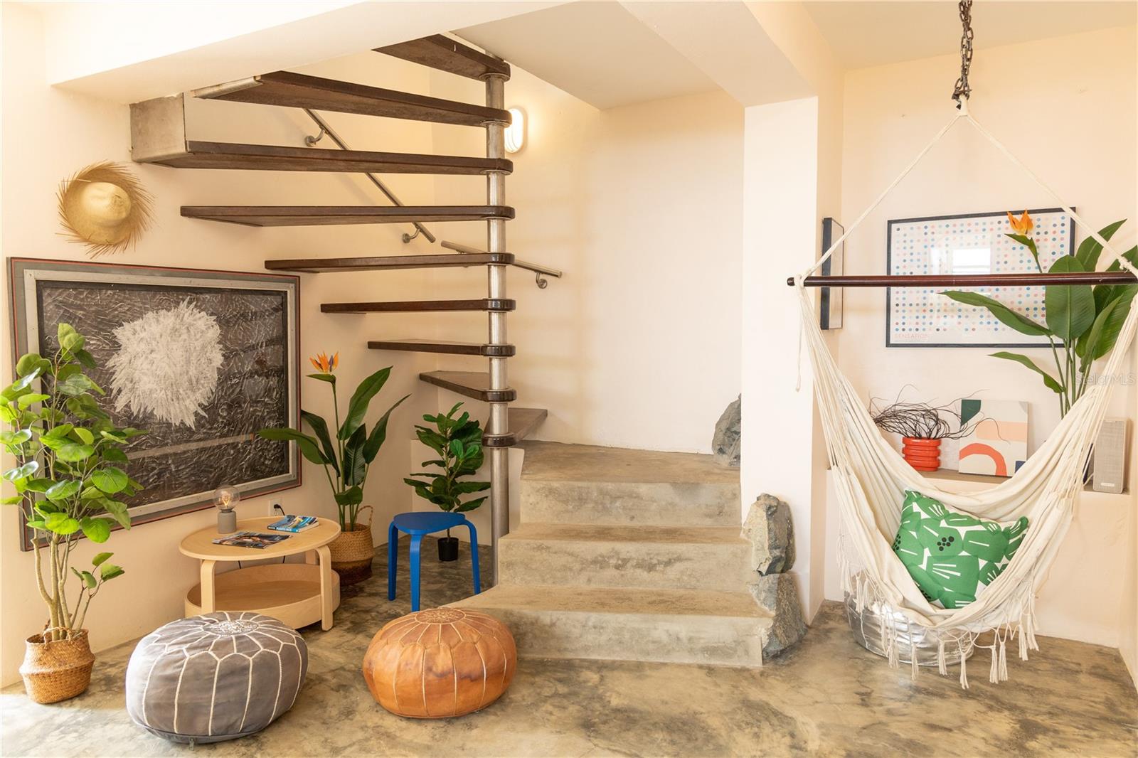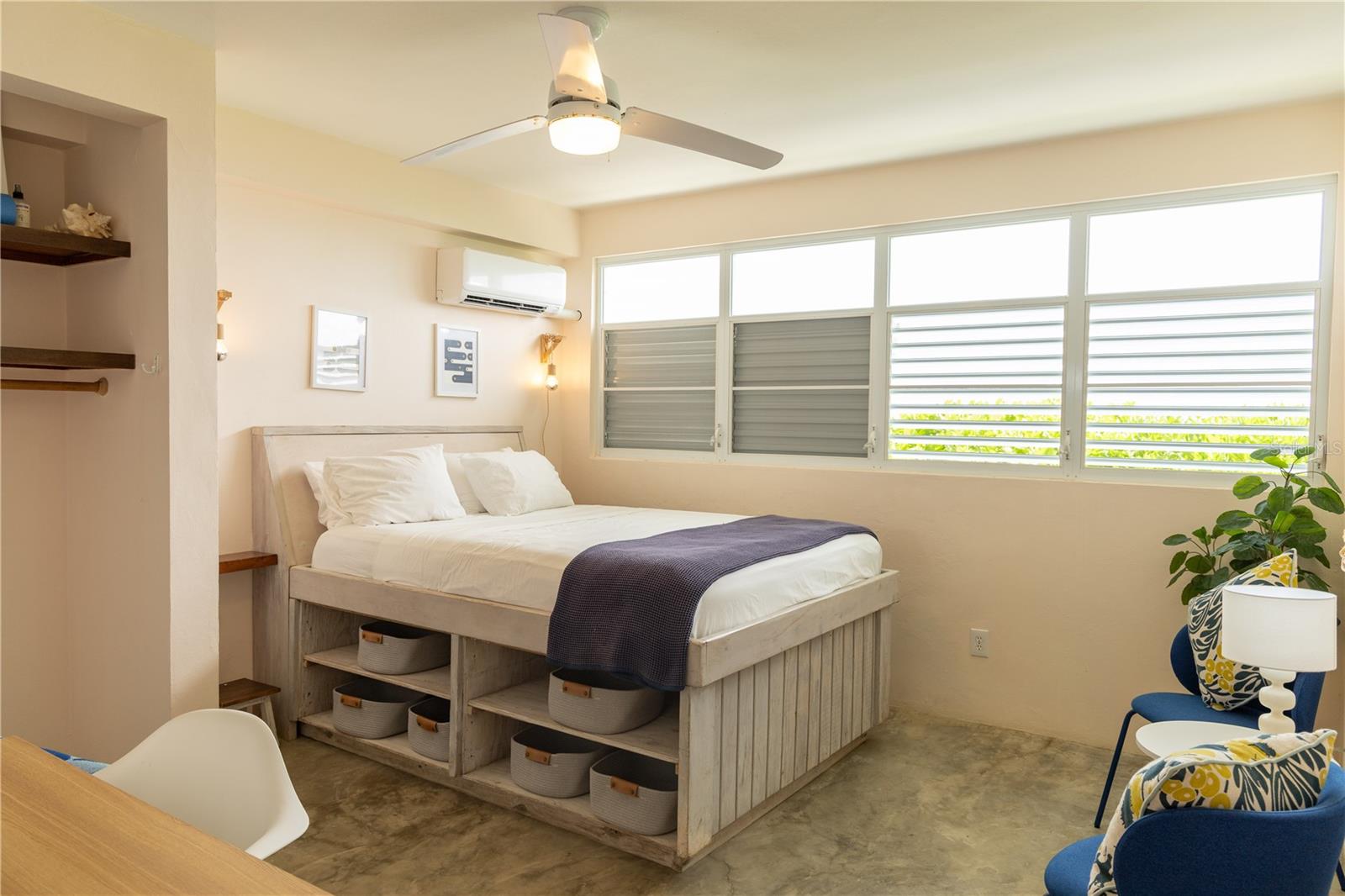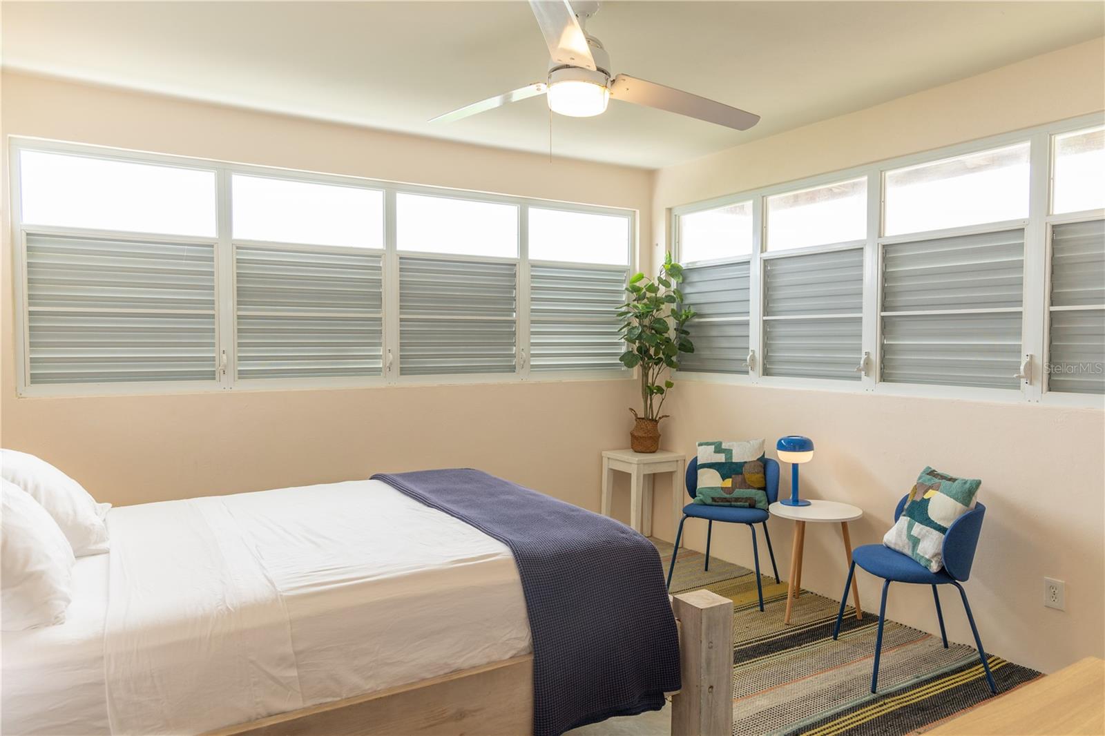 Las Piedras is a rare oceanfront property offering unmatched views and a remarkable connection to its surroundings. Set just above the clear waters of Vieques’ north shore, the home captures a full 180-degree view of the Caribbean—stretching from the coral-lined shallows below to the distant outlines of Culebra, St. Thomas, and St. John on the horizon. To the west, the mountains of mainland Puerto Rico rise against the sky, anchoring the landscape in every direction. A private driveway lined with mature palms and dense tropical foliage leads to the home’s entrance, which reveals a contemporary structure with subtle Spanish Colonial elements—most notably its terracotta-tiled, hipped roof. The three-story residence is solidly built and thoughtfully laid out, with four bedrooms, two and a half baths, and multiple indoor-outdoor living areas that make the most of the setting. The upper level is the heart of the home, with vaulted ceilings and an open-concept kitchen, dining, and living area. Floor-to-ceiling windows and doors frame uninterrupted views of the ocean from nearly every angle. The living space opens onto a wide ocean-facing balcony, ideal for sun lounging or outdoor dining. A half bath and an adjacent auxiliary room—currently outfitted with a bed—offer potential for a flexible use space or an additional bathroom conversion. Anchoring the structure is a central staircase built directly into the landscape, incorporating large natural boulders that not only define the aesthetic but also act as part of the home’s foundation. The second level houses the primary sleeping quarters, including two ocean-view bedrooms. The principal suite includes a modern ensuite bath with a polished cement shower and integrated sink. This level also features a smaller sitting room with a hidden Murphy bed, which opens onto a balcony overlooking the sea and connecting to the pool terrace. A spacious second full bath includes an oversized built-in tiled tub. The ground floor offers two additional cozy, well-proportioned bedrooms and a common area with a reading nook. There’s also a modern full bathroom with a polished cement shower and built-in sink, positioned next to a large laundry and storage room. Beneath the pool deck is a utility and pump room, discreetly tucked away from the main living areas. The bedrooms are fully air-conditioned for comfort, while the rest of the home is designed to take full advantage of natural ventilation, ocean breezes, and crosswinds. Las Piedras combines privacy and presence—set apart from the street, with direct access to the quiet sands of La Chata beach. Landscaped with native palms and low-maintenance gardens, the property includes a walking path that circles the house and offers seamless access to every corner of this uniquely situated coastal home. A gated entrance opens to a parking area that comfortably accommodates two vehicles. Whether as a personal retreat, an elegant space for entertaining, or an income-producing asset, Las Piedras delivers. It is currently operated as a highly successful luxury vacation rental, offering immediate investment potential with a proven rental history.