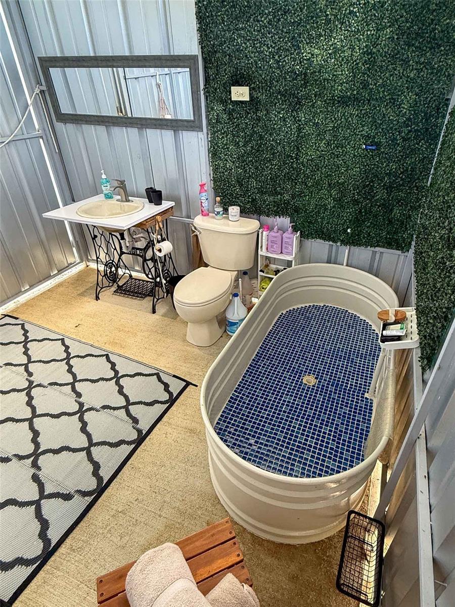 Tres Corazones is a unique, turnkey property located in Villa Borinquen on the island of Vieques, Puerto Rico. This thoughtfully designed compound includes two stylish sleeping structures, an additional full bath/laundry outbuilding, two outdoor soaking tubs, and on-grid utilities, offering flexibility for personal use, vacation rental income, or both. The primary structure is a Forest River Salem Platinum RV (26DBUD floorplan) permanently installed on a concrete pad and protected by a custom-built metal roof. Inside, the RV features a queen-size primary bedroom with built-in closets, a cozy lounge area with decorative fireplace and TV, a full kitchen, dining space, bunk beds, and a full bathroom. Large windows throughout bring in natural light and frame the surrounding tropical landscape. The RV is fully air-conditioned and comfortably sleeps up to six. Just a few steps away is the second structure—a professionally converted shipping container home with queen bed, full kitchen, full bathroom, and covered wooden deck. This unit also features an outdoor shower and satellite TV, making it ideal for guests or renters seeking privacy and comfort. The third structure on the property contains a second full bathroom and a laundry area with washer and dryer. A deep metal soaking tub adds charm to the space, while a second outdoor bathtub is tucked into a private corner of the property for evening stargazing or post-beach relaxation. The lot includes public water, electric service, and septic system. The landscaping offers a mix of shade and open sky, perfect for outdoor living and dining. The structures are well-maintained, and the layout is optimized for privacy, functionality, and island living. Tres Corazones has also proven itself as a strong income-generating short-term rental. It ranks in the Top 5% of most-loved homes on Airbnb in Vieques and has earned consistent Superhost recognition. It is being sold fully furnished and ready to operate as a turnkey investment. Located just a short drive from the ferry terminal, beaches, shops, and restaurants, this property puts you close to everything yet offers a sense of retreat. Enjoy easy access to Playa Caracas, Playa Negra, and the world-famous Bioluminescent Bay, as well as popular dining spots in Isabel Segunda and Monte Santo. If you're looking for a creative, flexible, income-ready property in Puerto Rico, Tres Corazones offers an ideal blend of style, functionality, and Caribbean charm.