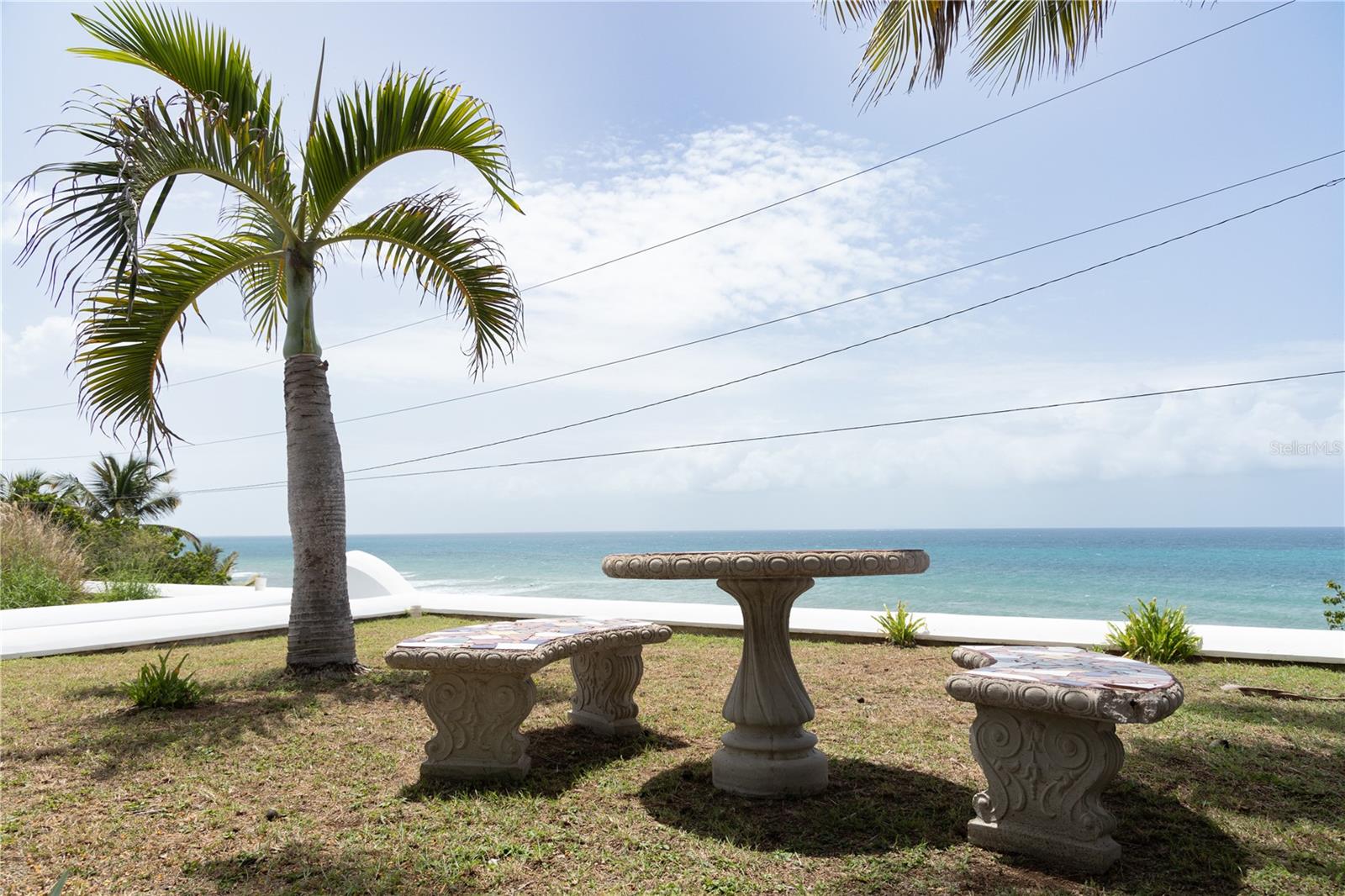 Villa La Riposa is beachfront living at its best. This amazing oceanfront property sits on a large lot that extends between two streets in the exclusive Bravos de Boston neighborhood. The property is bounded by the north shore beaches and less than a 15 min walk to all of the commodities in Isabel II (the ferry, restaurants, shops, and markets), and just 15 minutes from the airport. It’s promontory location gives the property a sense of seclusion and allows for unobstructed 180 ocean views. The art deco style villa elegantly mixes Mediterranean and Caribbean architecture. It’s distinct blue dome has become iconic of the North Shore skyline. The most spectacular space is the upper level apartment which has a unique European vibe with its stone mosaic floors, cathedral-esque arches, and grecian style louvered cabinets. The back drop from the main living space and the large outdoor lounge are the magnificent pool and turquoise ocean. Some of the spaces best features are the exterior bathroom and the amazing rooftop duomo with views of the mainland, Palomino and Culebra. Its doric columns frame the spectacular sunrises and sunsets during the morning and evening hours and the ferries can be seen as they come and go during the days. The lower level apartments each are fully equipped and have their own outdoor spaces and separate entrances. Guests can enjoy a private dinner or evening in but come together for gatherings in the large garden terrace that surrounds the pool and fountain. All the spaces are interconnected and have access to the ocean with a natural tide pool via a stairway built into the rocky cliffside. Every room has it’s own AC unit. The villa also has a parking area for up to three cars and additional private street parking, outdoor storage, and an outdoor shower by the pool area. The villa can be a great home, vacation escape, or an income producing rental.