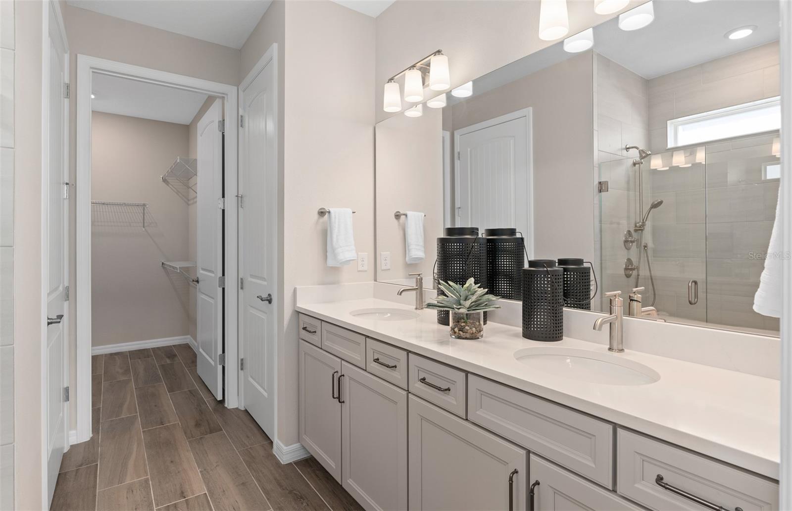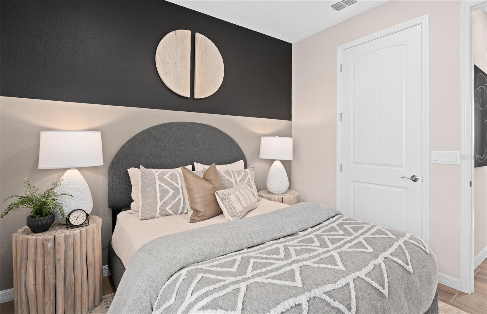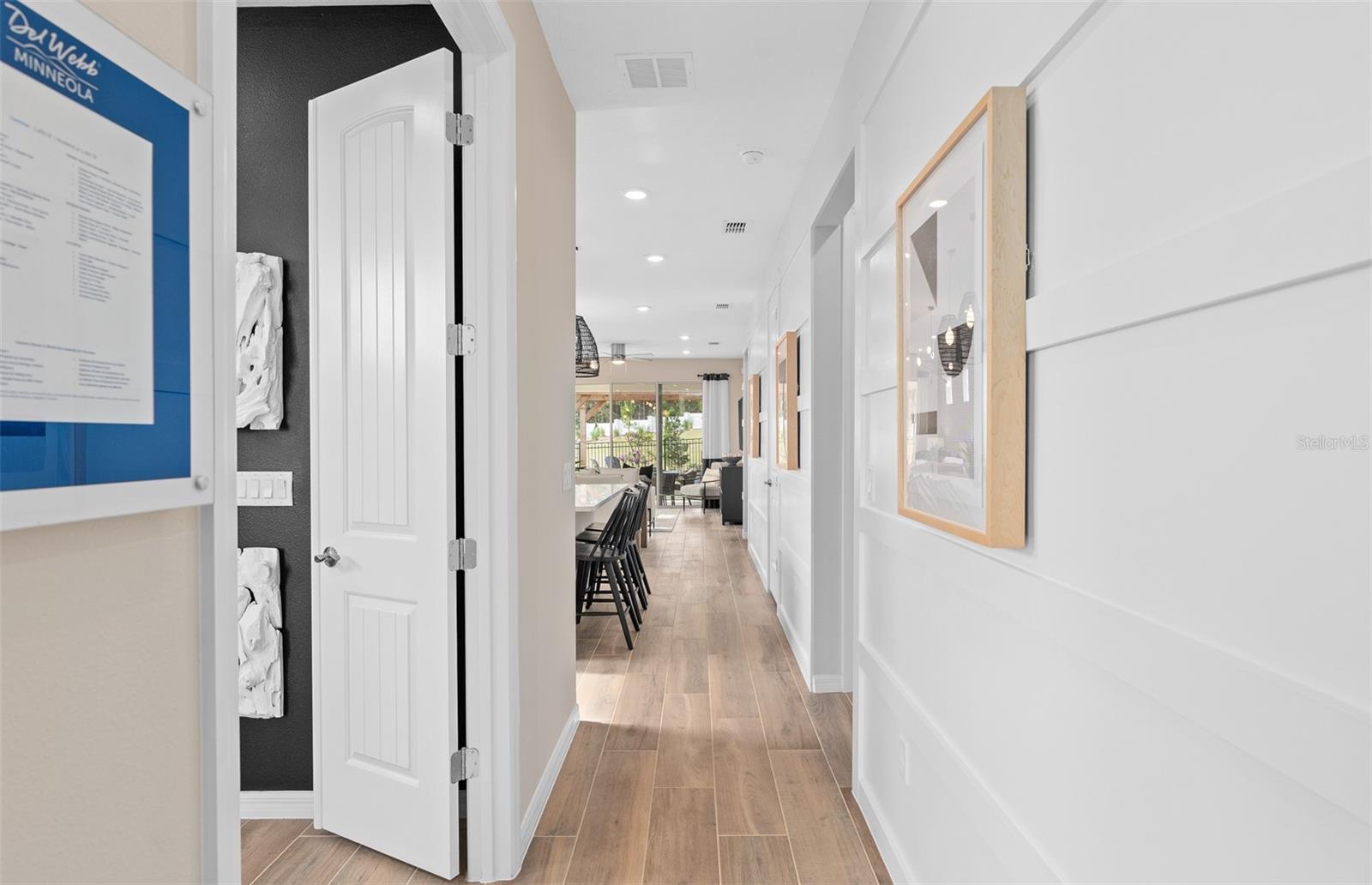 Del Webb at Viera is a luxurious guard-gated 55+ active adult community offering new construction single-family homes on a network of sparkling ponds featuring water view homesites throughout, an unrivaled location on the Space Coast, a planned breathtaking ten-acre waterfront amenity center and an established Town Center. Del Webb at Viera will offer an abundance of resort-style amenities with social events and activities centered in the stunning 30,000-square foot clubhouse, planned by a full-time Lifestyle Director. With a zero-entry pool with sun shelf, lap lanes and a heated spa you'll be relaxing like a pro. Staying fit and grounded will be easy with sports courts, croquet lawn, fitness center, movement studio, community garden and walking/biking trails. Make new friends at one of the dog parks, join a resident club, take a painting class at one of the many art studios, attend a concert or show at the event lawn, grab a bite at the on-site tavern & grille, or chat at the fire pits or Hammock Grove. Del Webb at Viera is also a golf-cart friendly community. Association membership includes all-inclusive landscaping, bulk cable/internet and Gold golf membership with Duran Golf Club. Located just 2 miles from I-95 and close to golfing, boating, beaches and outdoor recreation, this location in a Top 15 Master Planned community can't be beaten! The one-story Contour home by Del Webb features 2 bedrooms, an enclosed flex room, 2 bathrooms, a 2-car garage, and an extended covered lanai. As you step inside, you’re greeted by a naturally lit foyer, thanks to the glass insert in the front door. The heart of this home is the stunning kitchen. It’s appointed with Soft-Close Dana White Cabinetry, elegant Lagoon Quartz countertops, and a decorative tile backsplash. The Whirlpool appliances—including a natural gas range and a refrigerator- make this space a chef's dream. Whether preparing meals or hosting guests, this kitchen inspires. The open-concept design flows seamlessly into the café and gathering room, both flooded with natural light from ample windows. A sliding glass door opens to the covered lanai, merging indoor and outdoor living for an inviting and relaxing experience. The owner's suite, located at the back of the home for maximum privacy, offers a true retreat. The spa-inspired en suite bath features a dual vanity with quartz countertops, an enclosed toilet, a frameless glass-enclosed shower with a built-in bench and ceiling-height tile, a linen closet, and a spacious walk-in closet. At the front of the home, the secondary bedroom and bathroom are paired with the versatile flex room, providing privacy and space for guests or loved ones. The flex room can serve as a home office, hobby space, or anything that fits your lifestyle. Designer touches are evident throughout, with brushed nickel plumbing fixtures and hardware, a Whirlpool washer/dryer, and 2” faux wood blinds. Every detail of this home has been thoughtfully curated, from comfort-height toilets to the Sherwin Williams City Loft interior paint and 8’ interior doors. Inside, wood-look tile flows throughout. Modern technology is integrated seamlessly into this home, with a smart thermostat, smart doorbell, additional LED downlights, digital IP Camera pre-wire, and extra data ports to keep you connected and comfortable. Don’t miss the chance to make this exceptional home yours.
