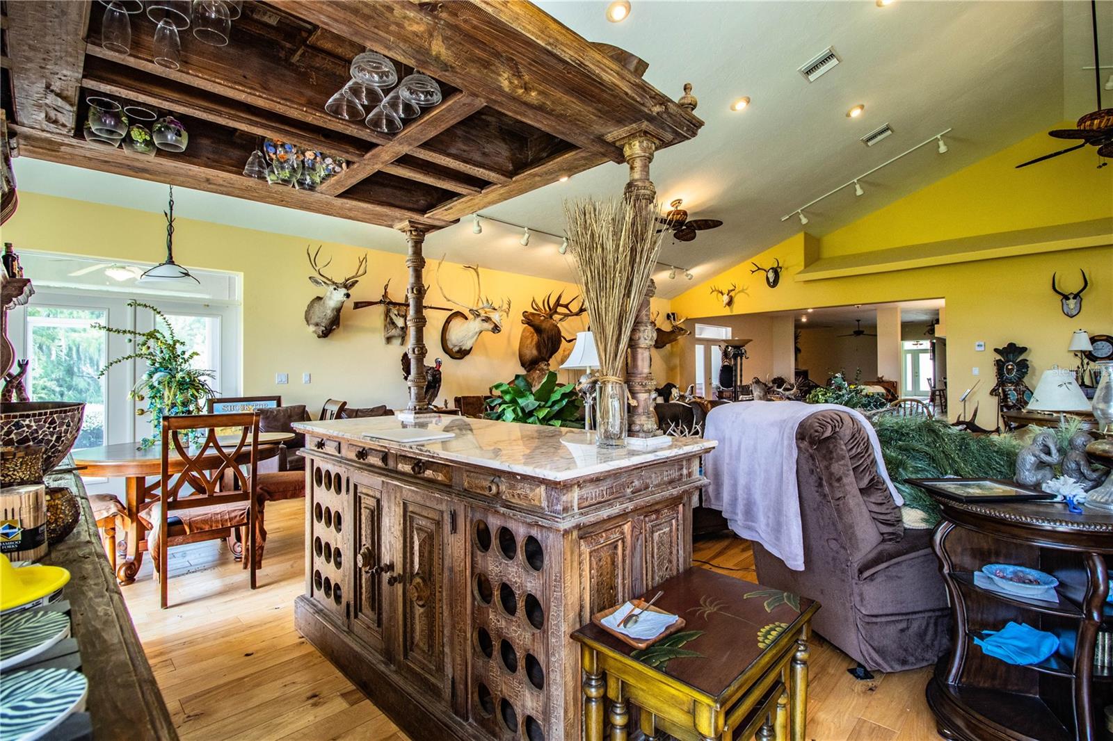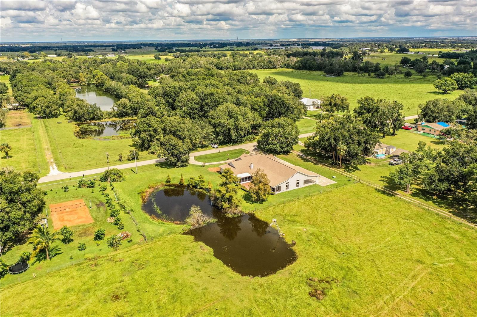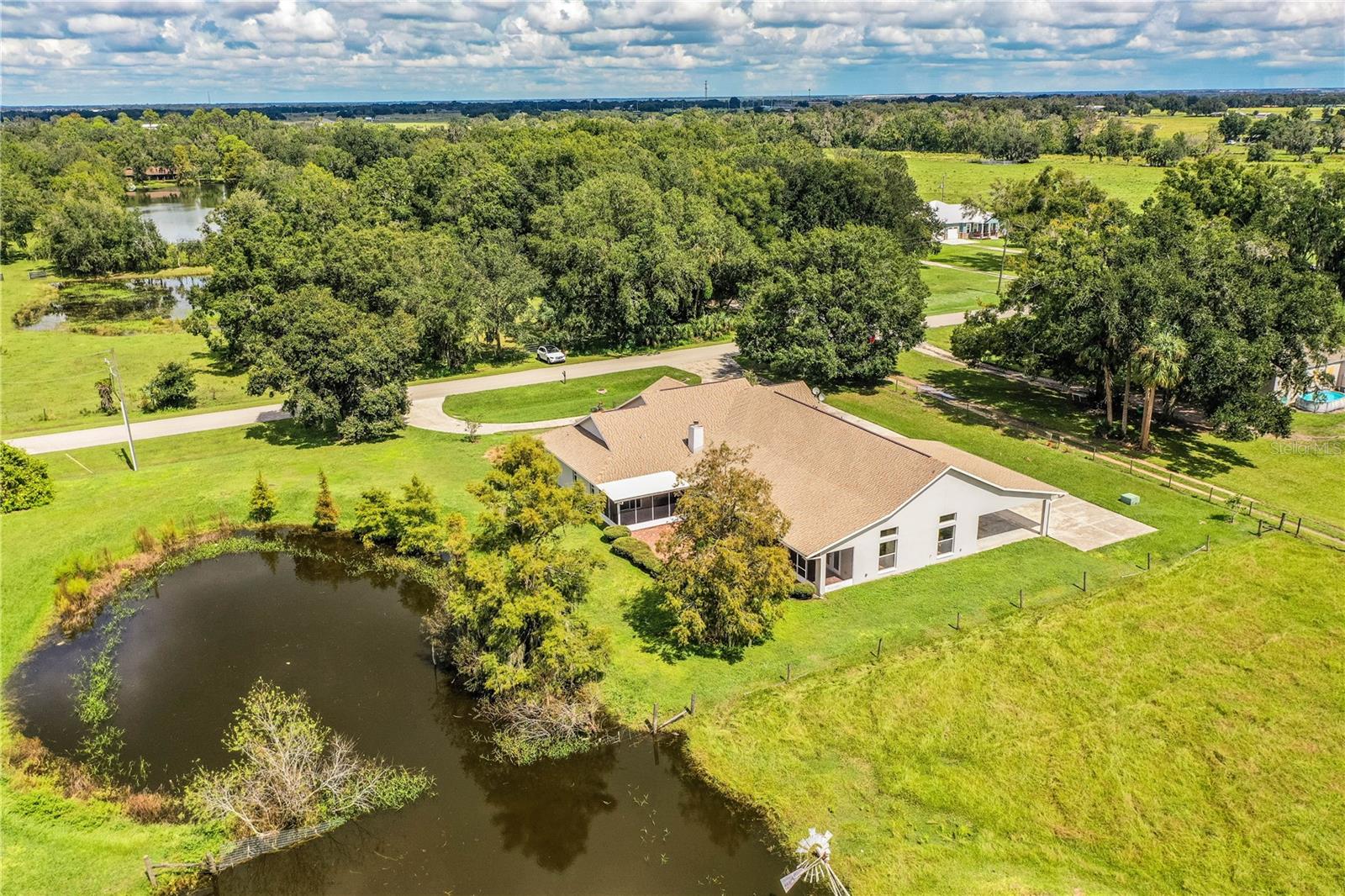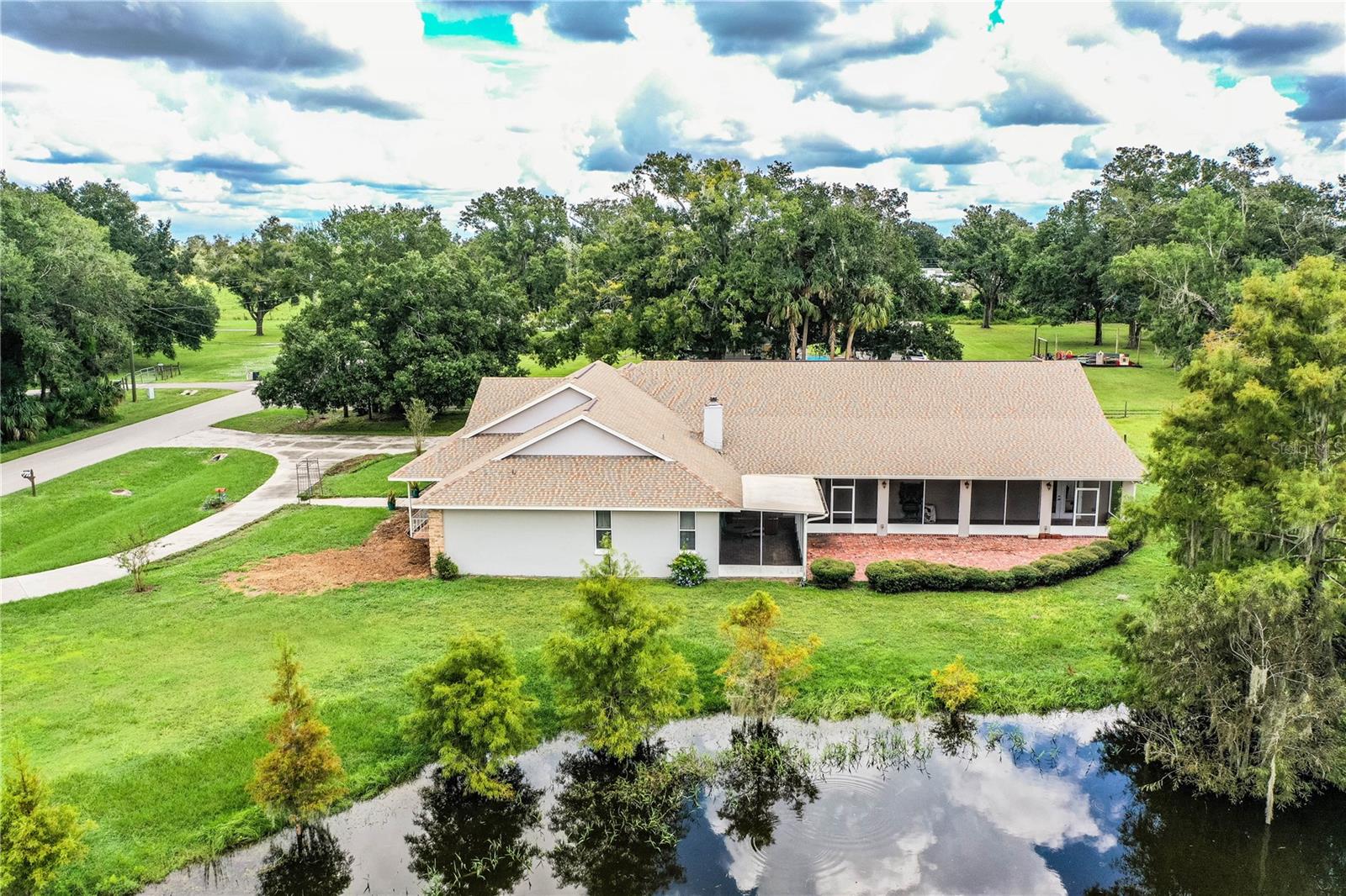 Spacious 4 bedroom, 3 bath home on 1± acre with a pond located on the outskirts of Wauchula Florida. This home features 6,988± total sf with 4,046± sf of open floorplan living area with a new roof! Enter thru the foyer into your private retreat. Pass the dining room and bonus rooms into the open living room with a fireplace & roomy kitchen area. This split plan home has a large master suite with his & hers walk-in closets, doors opening to the patio and a door leading to another bedroom or office area. The master bathroom features a large, beautiful antique vanity, garden tub and large shower. On the opposite side of the home are 2 large bedrooms, common bathroom, laundry room with sink and an 18’x27’ 3-car garage. The highlight of this home is the 30’x37’ great room with cathedral ceilings, an antique wet bar and side doors leading to the screened patio with jacuzzi tub on one side and the covered parking carport on the other.