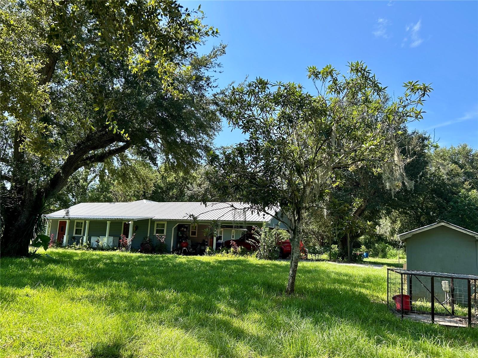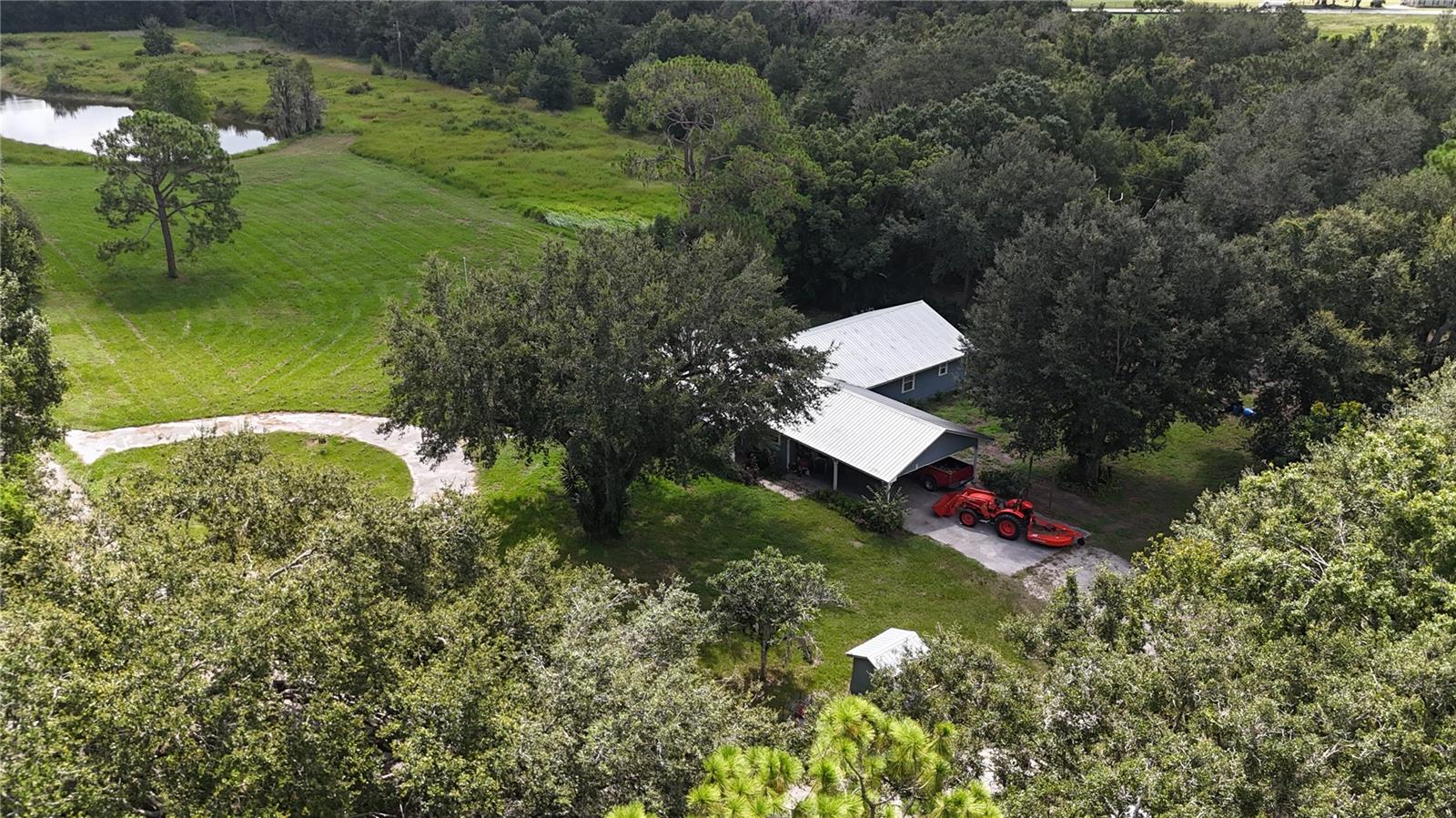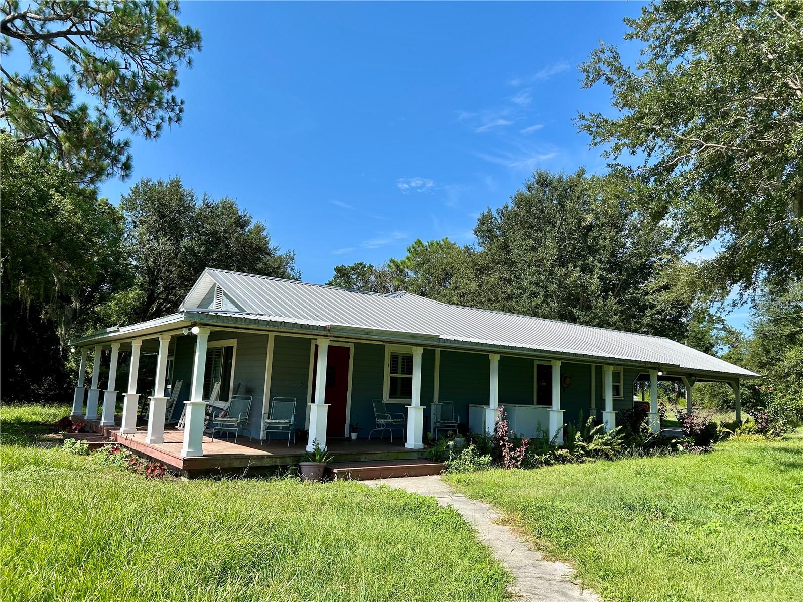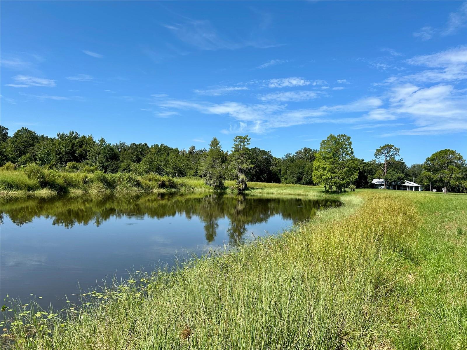 New price! Welcome to your own private retreat—more than 12 acres of peace and privacy, just three miles from town. A winding driveway meanders past stately oak trees, open pasture, and a tranquil one-acre pond stocked with bluegill, tilapia, and bass, leading to a custom-built home with a charming wraparound porch. Inside, you'll immediately appreciate the craftsmanship and character—soaring wood-beamed ceilings in the living room, wide baseboards, classic plantation shutters, and a beautifully remodeled kitchen featuring custom wood cabinetry, granite countertops, stainless steel appliances, a breakfast bar, and a center cooking island. The primary suite overlooks the pond and includes dual walk-in closets and a luxurious bath with a tiled walk-in shower. A spacious laundry room adds functionality with a utility sink, additional toilet, and generous storage space. Need a home office, playroom, or possible fourth bedroom? There's a flexible bonus room ready to meet your needs. This property truly offers the best of both worlds—peaceful country living with town conveniences just minutes away.