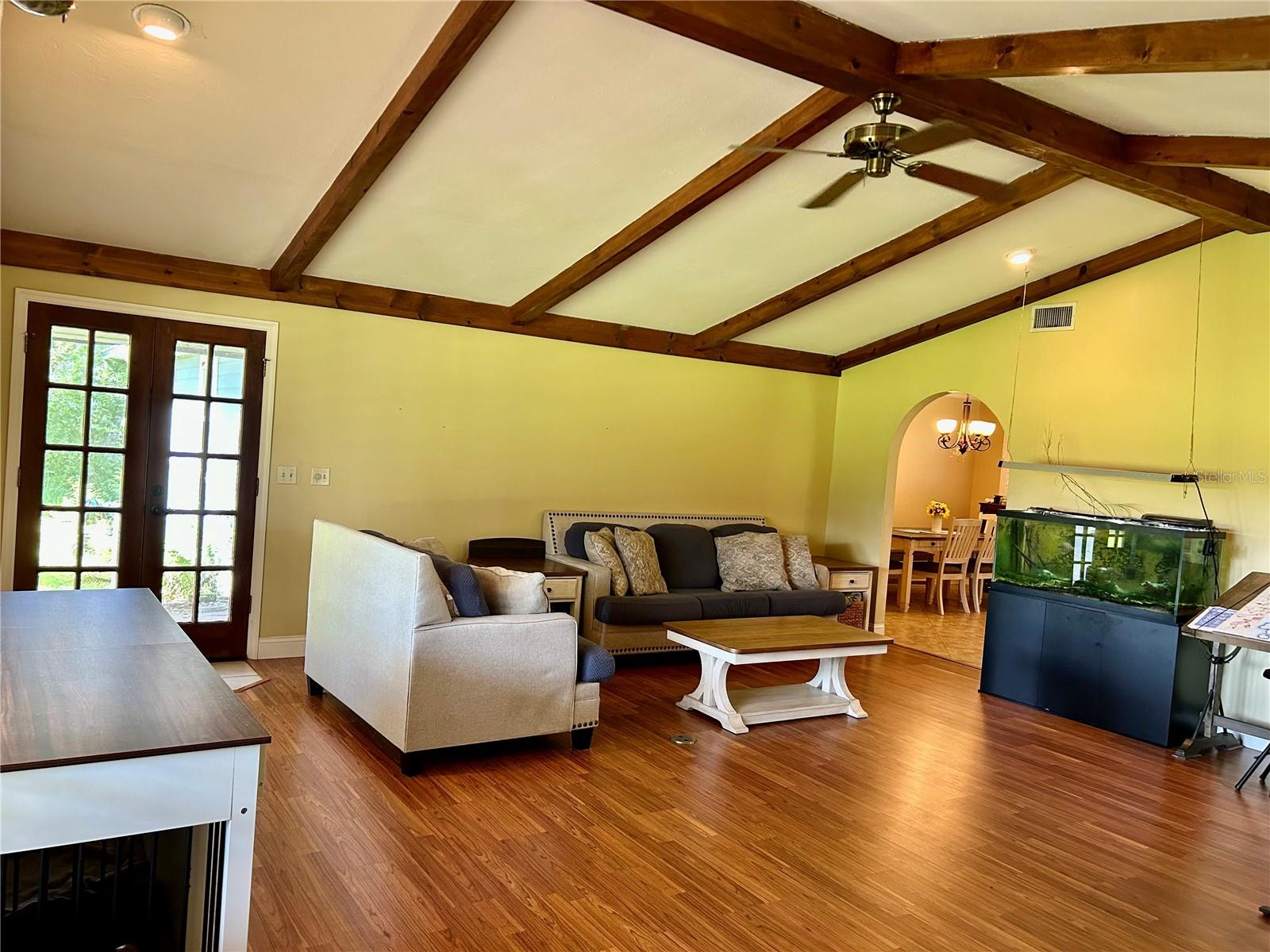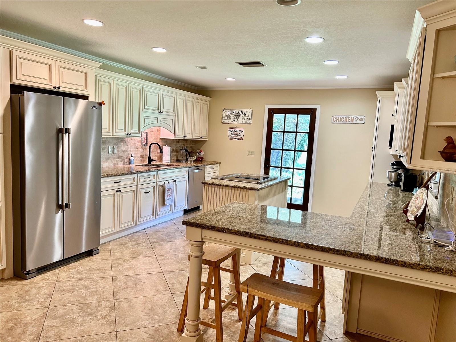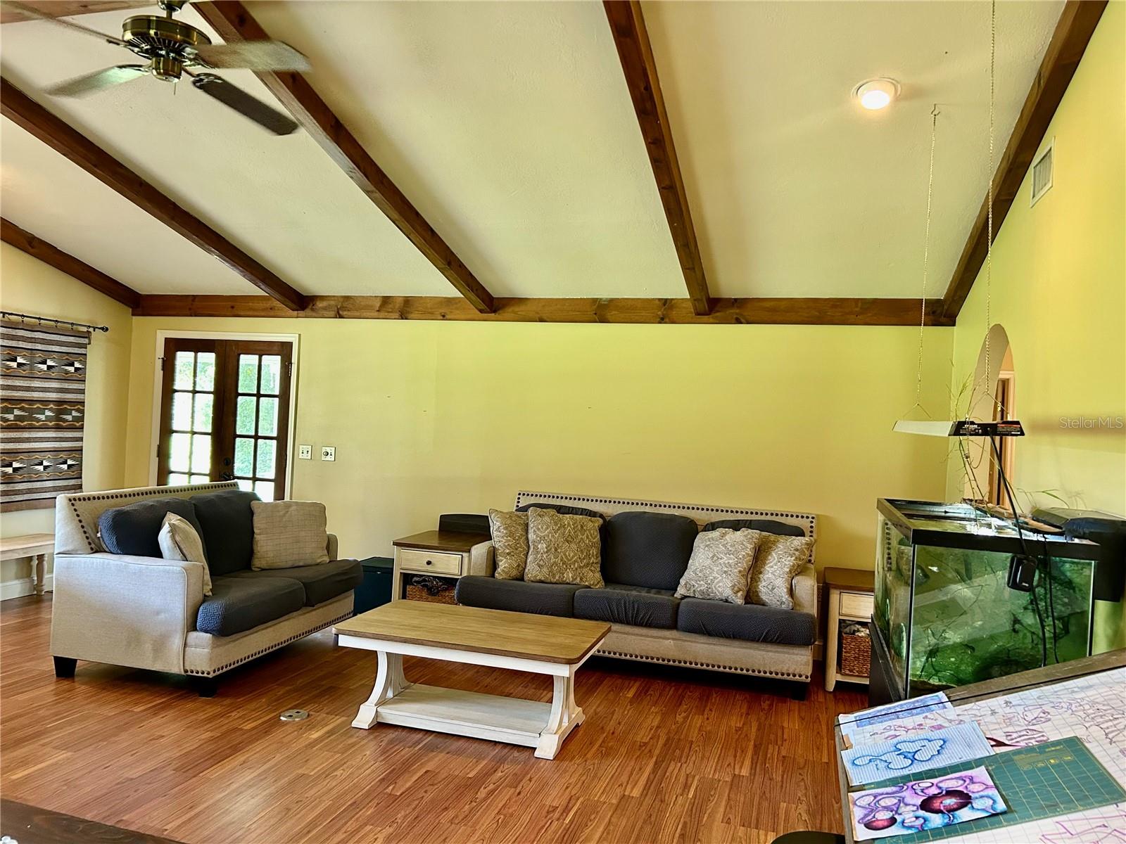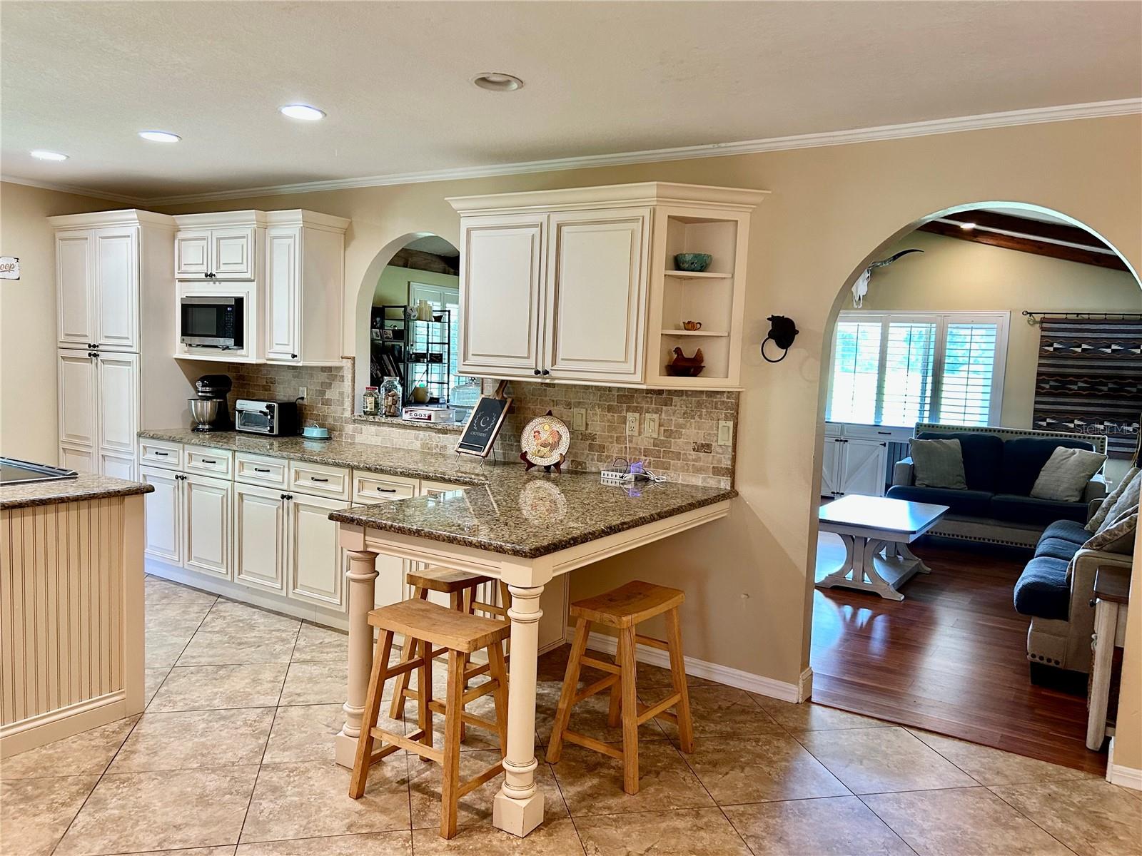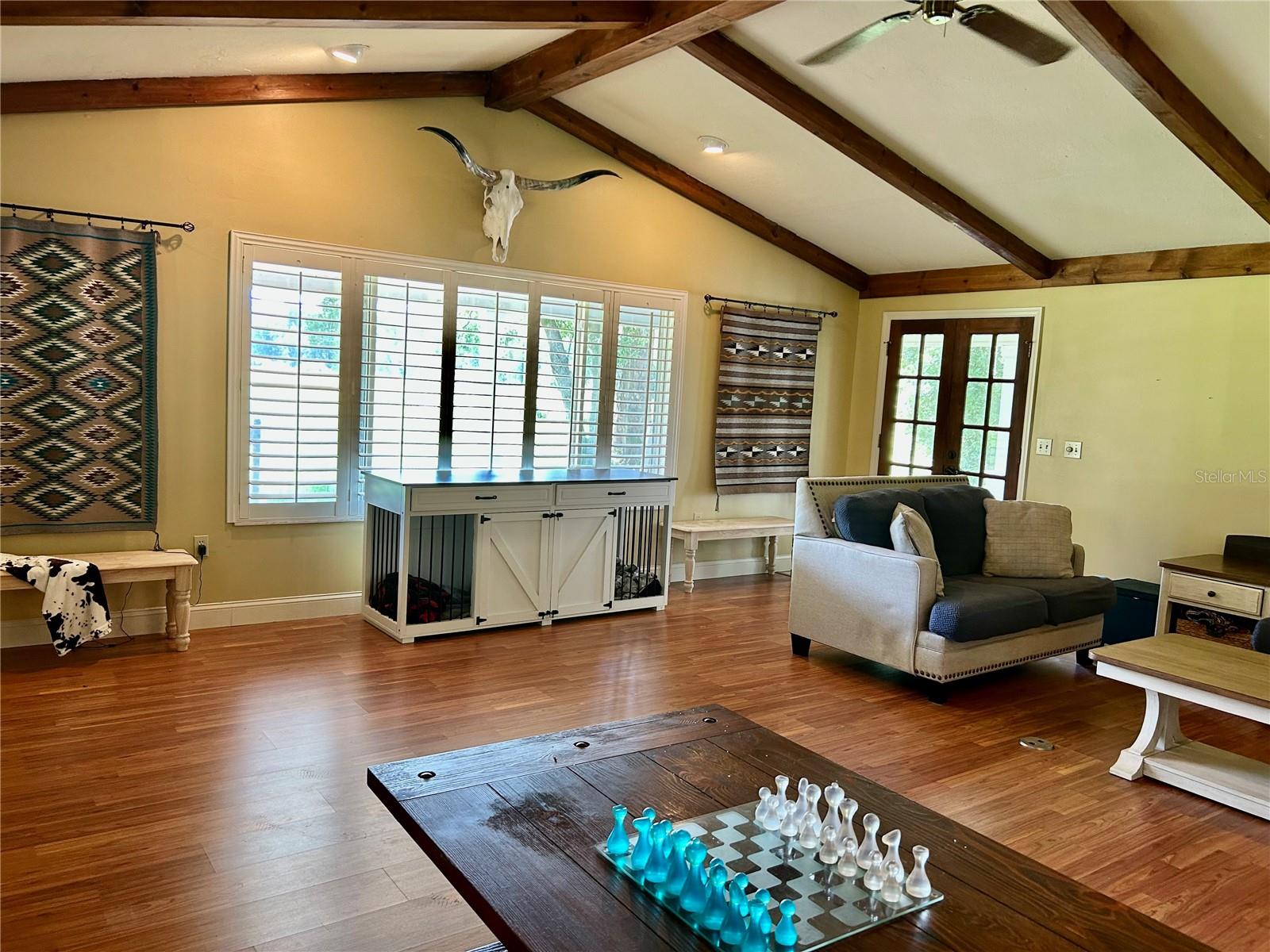 New price! Welcome to your own private retreat—more than 12 acres of peace and privacy, just three miles from town. A winding driveway meanders past stately oak trees, open pasture, and a tranquil one-acre pond stocked with bluegill, tilapia, and bass, leading to a custom-built home with a charming wraparound porch. Inside, you'll immediately appreciate the craftsmanship and character—soaring wood-beamed ceilings in the living room, wide baseboards, classic plantation shutters, and a beautifully remodeled kitchen featuring custom wood cabinetry, granite countertops, stainless steel appliances, a breakfast bar, and a center cooking island. The primary suite overlooks the pond and includes dual walk-in closets and a luxurious bath with a tiled walk-in shower. A spacious laundry room adds functionality with a utility sink, additional toilet, and generous storage space. Need a home office, playroom, or possible fourth bedroom? There's a flexible bonus room ready to meet your needs. This property truly offers the best of both worlds—peaceful country living with town conveniences just minutes away.