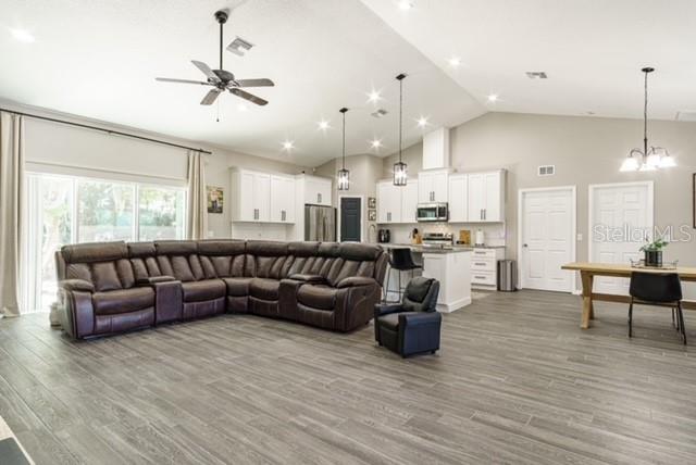 Are you looking for new construction, that is just over a year young and has been taken care of meticulously? Check out this 3 bedroom, 2 bathroom home located in Webster, Florida. Just a few minute walk to the Famous Sumter County Farmers Market, enjoy a 12X27 front lanai/porch area under truss. When you walk through the french double doors, this home offers the perfect blend of modern elegance and county charm. Featuring 3 bedrooms and 2 full bathrooms, this home is designed for comfort and style! The oversized great room is the heart of the home, boasting high ceilings, abundant natural light, and an open floor plan that seamlessly connects the living, dining, and kitchen areas. The modern country feel is highlighted by high end finishes such as tile throughout, a custom cozy fireplace with mantel and sleek contemporary fixtures. The master suite provides a serene retreat with it's own en-suite, and two walk in closets while the two additional bedrooms offer plenty of space for family or guests, and the second bathroom is beautifully appointed with modern amenities. Home is situated on a private lot with no immediate neighbors, perfect for enjoying the peaceful surroundings and picturesque views that Webster has to offer. Call today for a private showing!