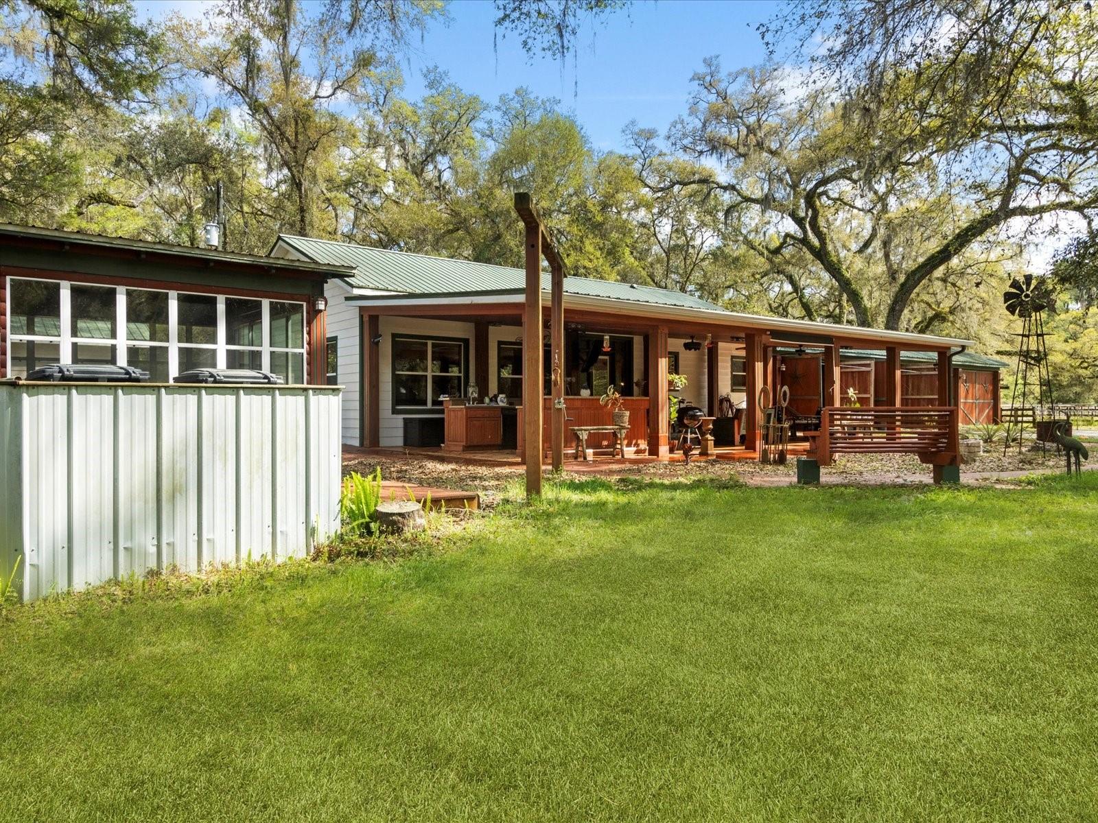 One or more photo(s) has been virtually staged. Don’t miss your once in a lifetime opportunity to own this stunning 10 acre Ranch-style estate in the heart of Webster. The open floor plan interior features marble tile and natural wood accents throughout. The thoughtfully designed kitchen is a chef's dream, featuring newer Stainless Steel Appliances, custom cabinetry with soft-close doors and drawers, and a mobile center island. Venture outside and watch the sunset from the oversized front lanai featuring a full-sized outdoor bar with 2 refrigerators and ample seating. Spend the evenings relaxing in your enclosed jacuzzi room. The oversized garage with 4 automatic doors creates ample workspace and is perfect for all vehicles including tractors and farm equipment. If you are looking for the true Ranch lifestyle experience, this property is perfect for you. The grounds feature a custom-built chicken coop, multiple livestock feeding and watering stations, as well as multiple pole barns. Wild game such as Deer and Turkey are also abundant and seen frequently. There are simply too many features to list, please ask your agent for the Feature Sheet attached in the MLS. The property is in an ideal central location, 45 Minutes to Orlando, Tampa, and Ocala. 35 Minutes to The Villages and West Coast Beaches. High Speed Spectrum Internet now available.