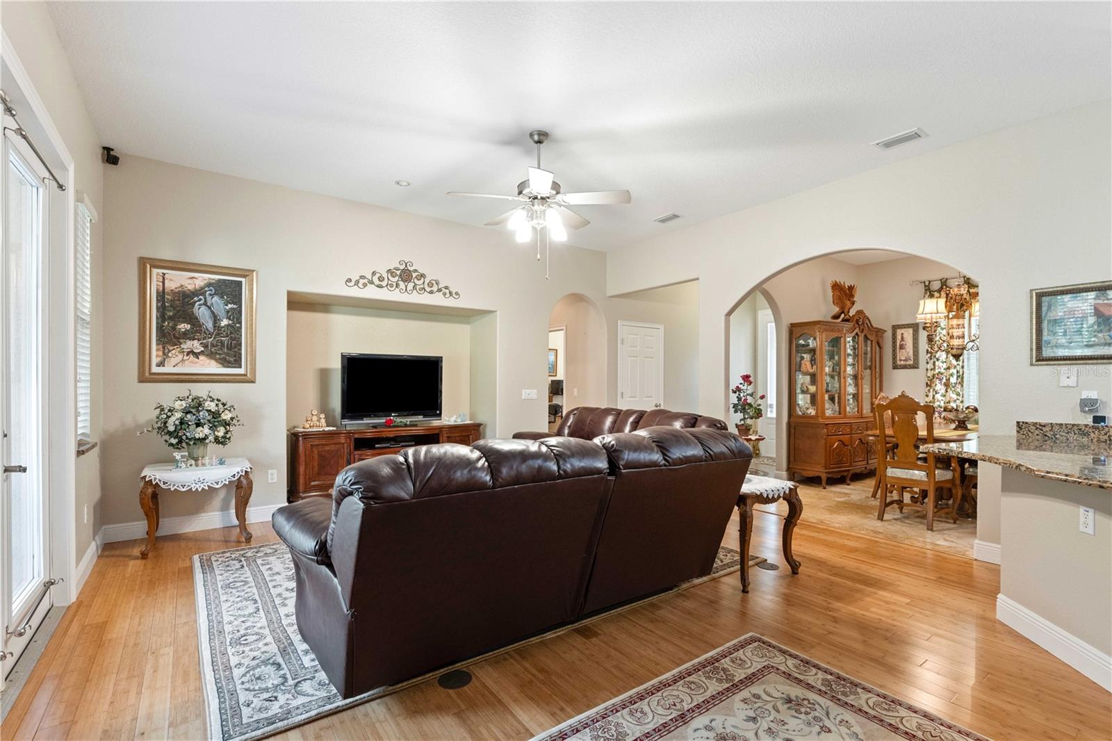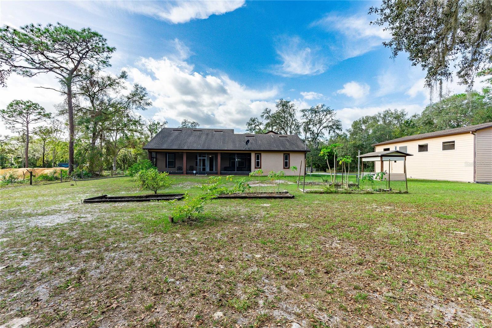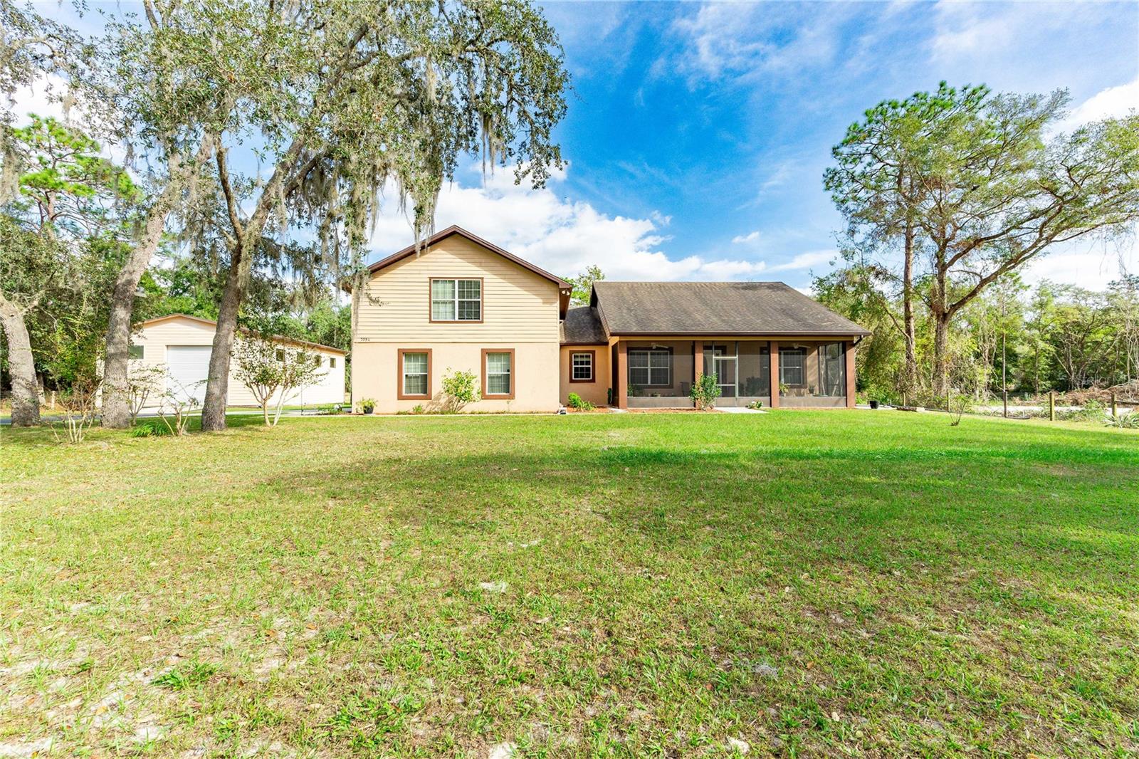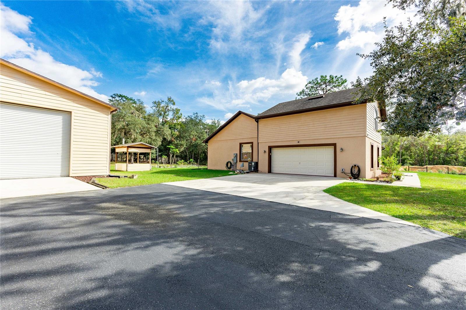 Welcome to this spacious 3-bedroom, 2-bath home nestled on a 1.2-acre lot, offering both tranquility and ample room for outdoor activities in a fully fenced yard. As you enter the home, you'll find a bright and airy living area that seamlessly connects to the dining space, making it perfect for entertaining friends and family. The kitchen is well-equipped and provides a great layout for cooking and gathering. The master bedroom features an en-suite bathroom for added privacy, while two additional bedrooms provides versatility for guests, a home office, or a playroom. Step out back to enjoy the hot tub and view of the expansive grounds, ideal for gardening, outdoor recreation, or simply soaking in the natural beauty around you. The property includes an unfinished RV garage, perfect for storing your recreational vehicles or transforming into a workshop. It is also equipped with an outdoor shower! Additionally, the two-car garage features an unfinished upper level, providing endless possibilities for a studio, guest suite, or extra storage.