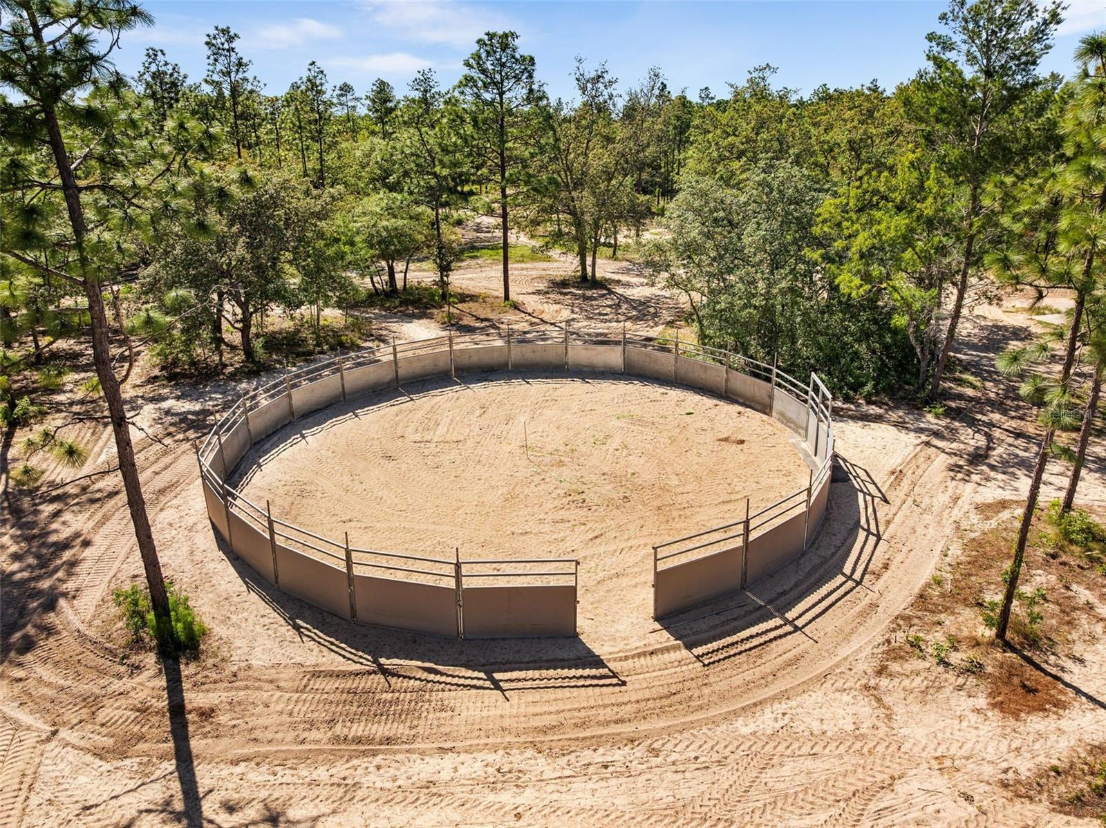 Rare opportunity to acquire a true large scale equestrian property in the heart of Weeki Wachee. Situated on 40 acres in the highly desirable Royal Highlands, this 16-stall facility offers a level of infrastructure, functionality, and location that is increasingly difficult to find in Hernando County. At the center of the property is a substantial MD BarnMaster barn with a metal roof built for durability, safety, and long-term use. The barn includes 16 stalls, multiple tack and feed rooms, washrooms, lighting, and a layout designed for daily operation. Additional equestrian improvements include: 4 4x40 paddocks with Ramm fencing, a 200 ft-diameter riding area, a 60 ft-diameter round pen, a Eurociser, and a track around the perimeter of the property, along with a fully fenced perimeter. Also included in the sale are 4 buildable half-acre lots on the exterior of the property. These are selling for $25,000-$35,000 each and will be included in the sale of the 40 acres. The property is 95% high and dry, with only 2 acres having a little flood zone. The residential component includes 6 park model homes in the middle of the property. Each park model home is a 1-bed 1-bath unit that comes with a front deck, electricity, and water. Each unit has high-end luxury vinyl flooring, a bathroom, a kitchen, fans, and closet space. This allows for staff housing, rental income, or on-site management, with the option to build a custom primary residence. Next to the main barn, your dream home awaits. The foundation for a 4,200 sq ft home has been poured and is ready for completion. The plans for this custom home and the survey come with the property. The property is conveniently situated just minutes from Weeki Wachee Natural Springs, the Gulf of Mexico, professional golf courses, hospitals, schools, shopping options, movie theaters, and restaurants, all within a quick 10-15 minute drive of multiple hiking trails. Live a quiet life with no HOA and all your wants and needs just minutes away! In addition to its current use as a working equestrian facility, the property offers long-term flexibility. With the existing plat, there may be potential for additional homesites, subject to county approval, creating further opportunity for future use or investment. Large properties of this scale and capability are rare in this location. This offering presents an opportunity for a trainer, investor, or owner-occupant to operate an income-producing equestrian business, create a private estate, or capitalize on future potential. Don’t miss the opportunity to make it yours.