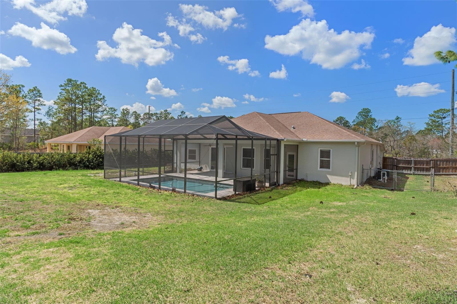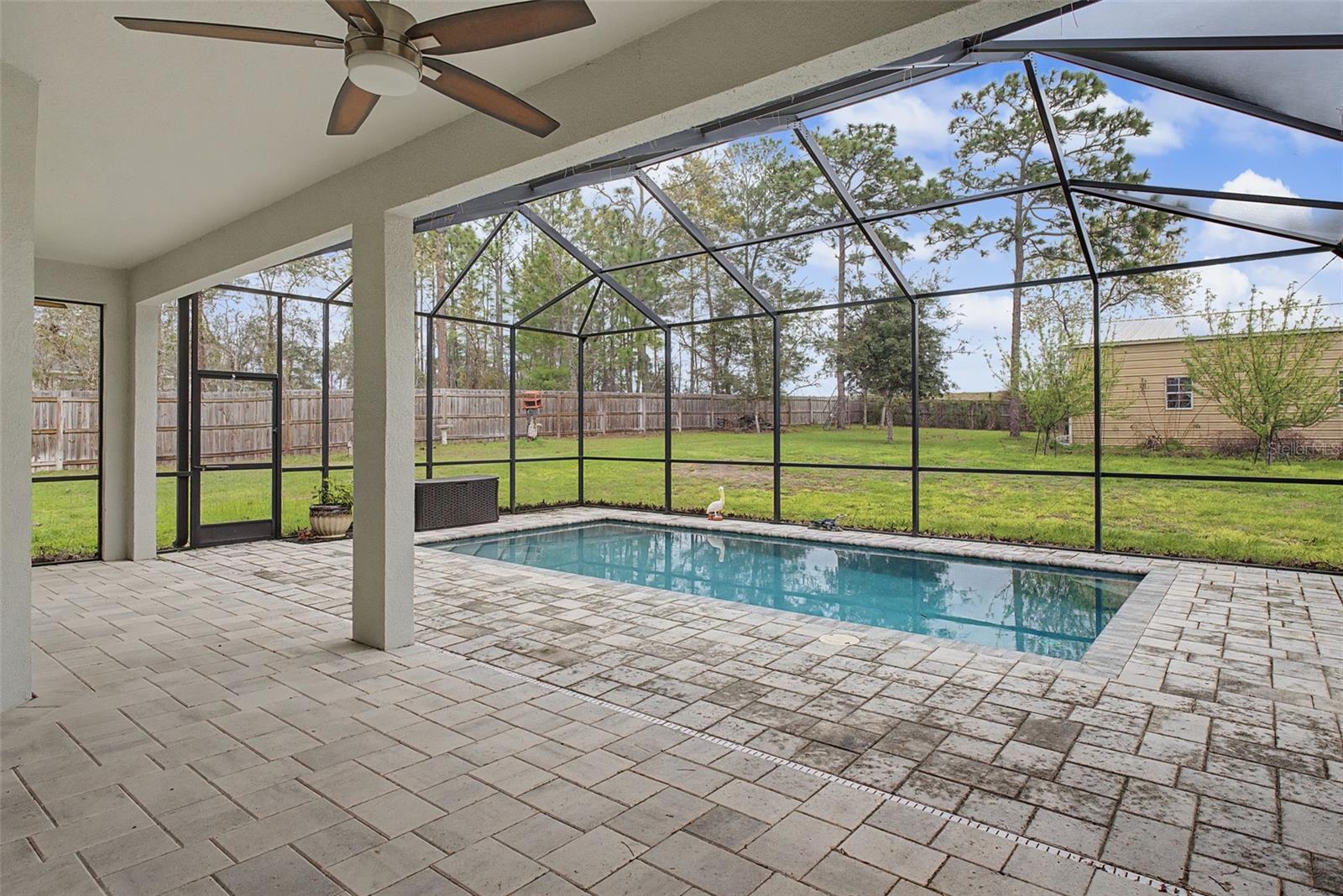 One or more photo(s) has been virtually staged. A lifestyle property for hobbyists, business owners, and RV/toy owners. Rare 40x30 Powered Workshop + Pool Home on Half Acre. Bring Your RV, Boats, Business, or Toys. This beautifully maintained 3-bedroom, 2-bath home offers nearly 2,944 square feet of living space on a spacious 0.55-acre lot, combining comfort, functionality, and exceptional upgrades throughout the property. Step outside to enjoy a in-ground pool surrounded by elegant pavers and a fully screened pool enclosure/lanai, creating the perfect private outdoor retreat for relaxing or entertaining. A standout feature of the property is the 40' x 30' metal building/workshop, constructed on a slab foundation with tie-downs, spray foam insulation, and electric service. The building also has separate power through WREC, making it ideal for a workshop, storage for recreational vehicles, or hobby space. The entire backyard is enclosed with wood fencing, providing privacy and security, while a 7-zone irrigation system supports the new sod and professional landscaping, keeping the grounds lush and well-maintained year-round. Additional improvements include gutters with screened gutter guards and storm-ready downspouts, a new electrical panel with generator connection, and hurricane-rated windows and doors with a transferable warranty—providing both peace of mind and energy efficiency. This property offers the rare combination of space, upgraded infrastructure, and outdoor living, making it ideal for those who want room to enjoy their home, hobbies, and Florida lifestyle.