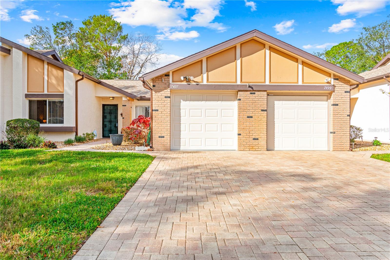 Welcome to Your Dream Home! This beautifully updated 2-bedroom, 2-bathroom villa with a versatile den offers the perfect combination of comfort, style, and convenience. Featuring a 2023 roof, 2023 garage door, 2016 window replacements, and a 2014 AC, this home offers modern upgrades and worry-free living. Freshly painted throughout, this move-in-ready gem is just waiting for its new owner. Step Inside The spacious living and dining areas boast elevated ceilings that create an open, airy ambiance. The updated kitchen is a chef’s delight, with brand-new appliances, sleek new countertops, and a generous pantry area. Gorgeous waterproof vinyl flooring and plush carpeting add warmth and elegance throughout the home. Versatile Living The den is perfect for a home office, media room, or a cozy reading nook—complete with ample space for your large-screen TV. Or unwind by the fireplace in the living room for a relaxing evening at home. Comfortable Bedrooms The primary bedroom offers ample closet space, while the secondary bedroom features a large layout and generous closet—great for family, guests, or additional storage needs. Convenience & Security The one-car garage offers laundry facilities and access to extra attic storage, making organization and maintenance a breeze. Plus, a modern security system provides added peace of mind. Outdoor Living & Lifestyle Enjoy a beautifully landscaped exterior and a welcoming community that's just moments away from shopping, dining, and local amenities. Don’t Miss This Opportunity! This move-in-ready home offers the perfect blend of style, function, and convenience. Schedule your private showing today and make this villa yours!