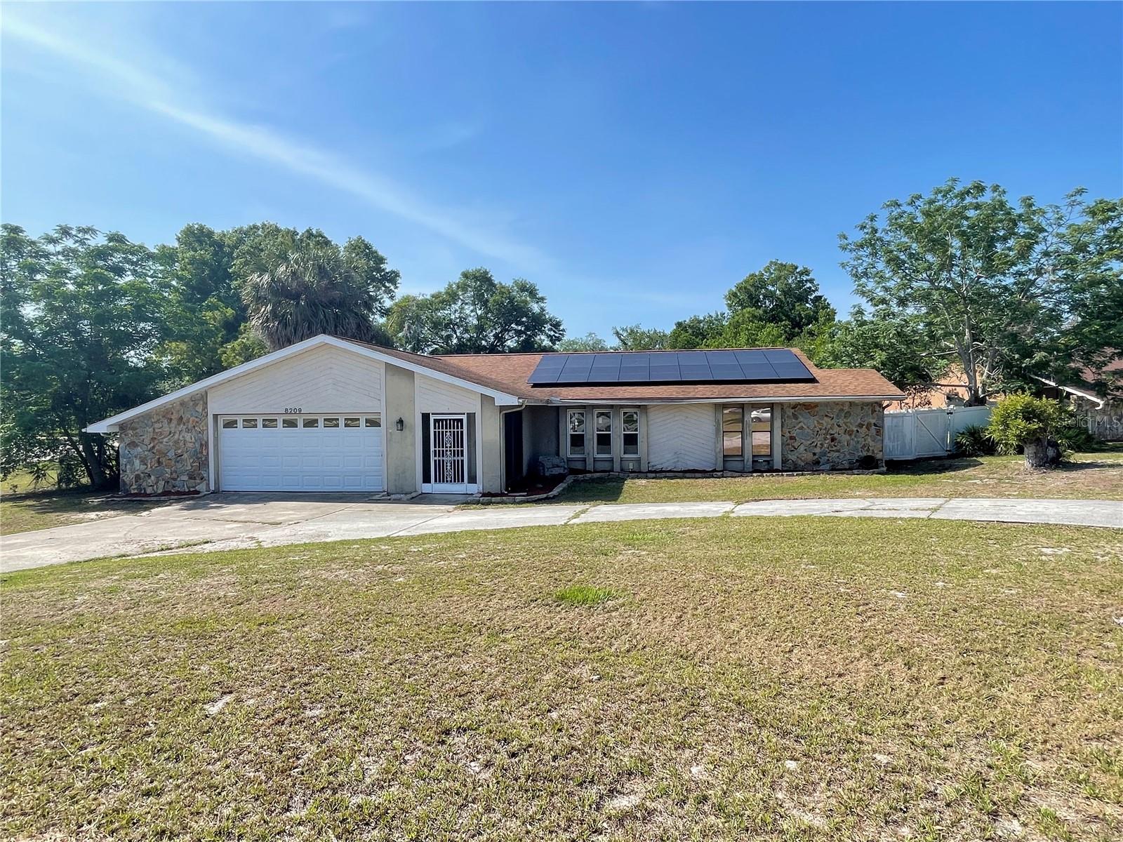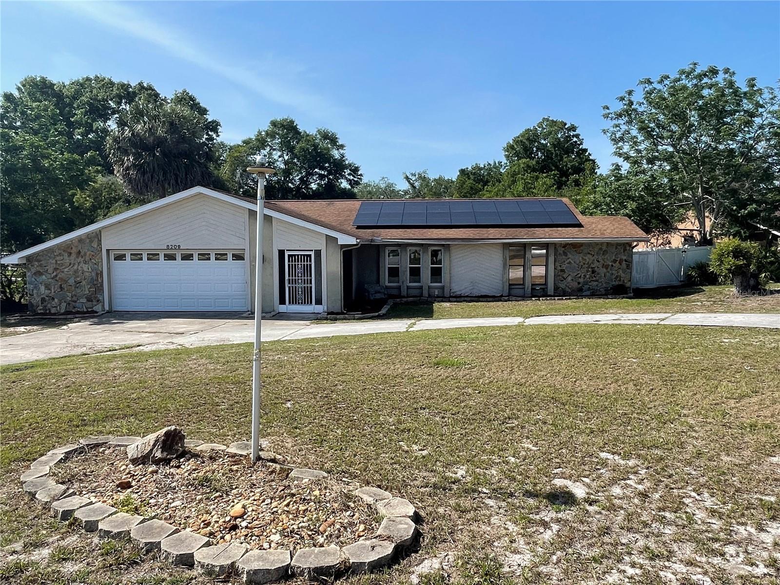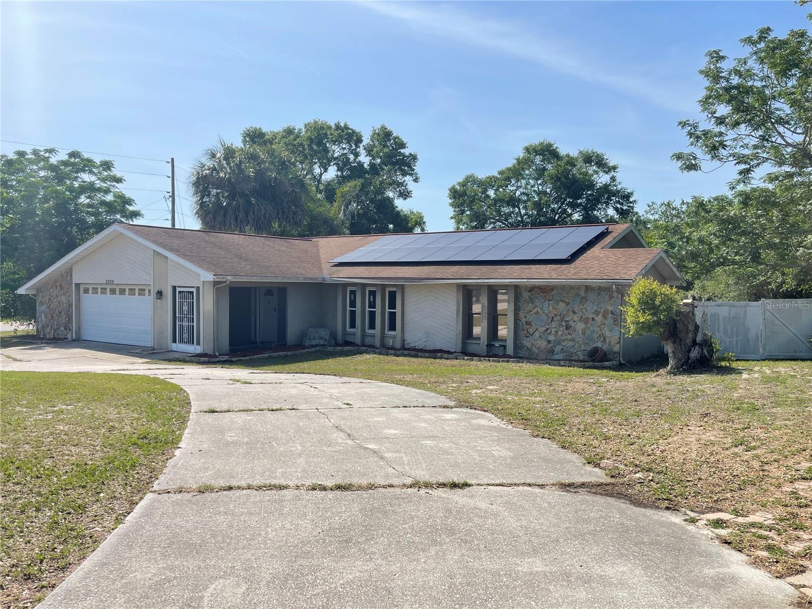 Calling INVESTORS! Listed way under market value for a solid pool home. 3/2/2, fenced, POOL home on a HALF an ACRE, in the sought after community of River Country Estates. Property needs TLC, cleaning and painting. Will most likely pass the 4-point inspection, as the Roof, AC, pool equipment, plumbing and electric are all in good working condition. Whole home solar system installed 2024 (buyer to assume installments), 2 bedrooms have new flooring and there are many new light fixtures installed throughout. LARGE home with 1944 sf., huge yard and cozy fireplace. It has an open/split floor plan with a large formal living room, dining room and family room. Pool pump is new, AC new in 2024, Roof 2013, hot water heater is 5 years old. This home is brimming with potential and is waiting for you to finish off the last needed paint and updates. Give this home some love and attention you'll have instant equity! Priced under market value, but all of the important, large ticket items will serve you well here. All of the appliances are included.