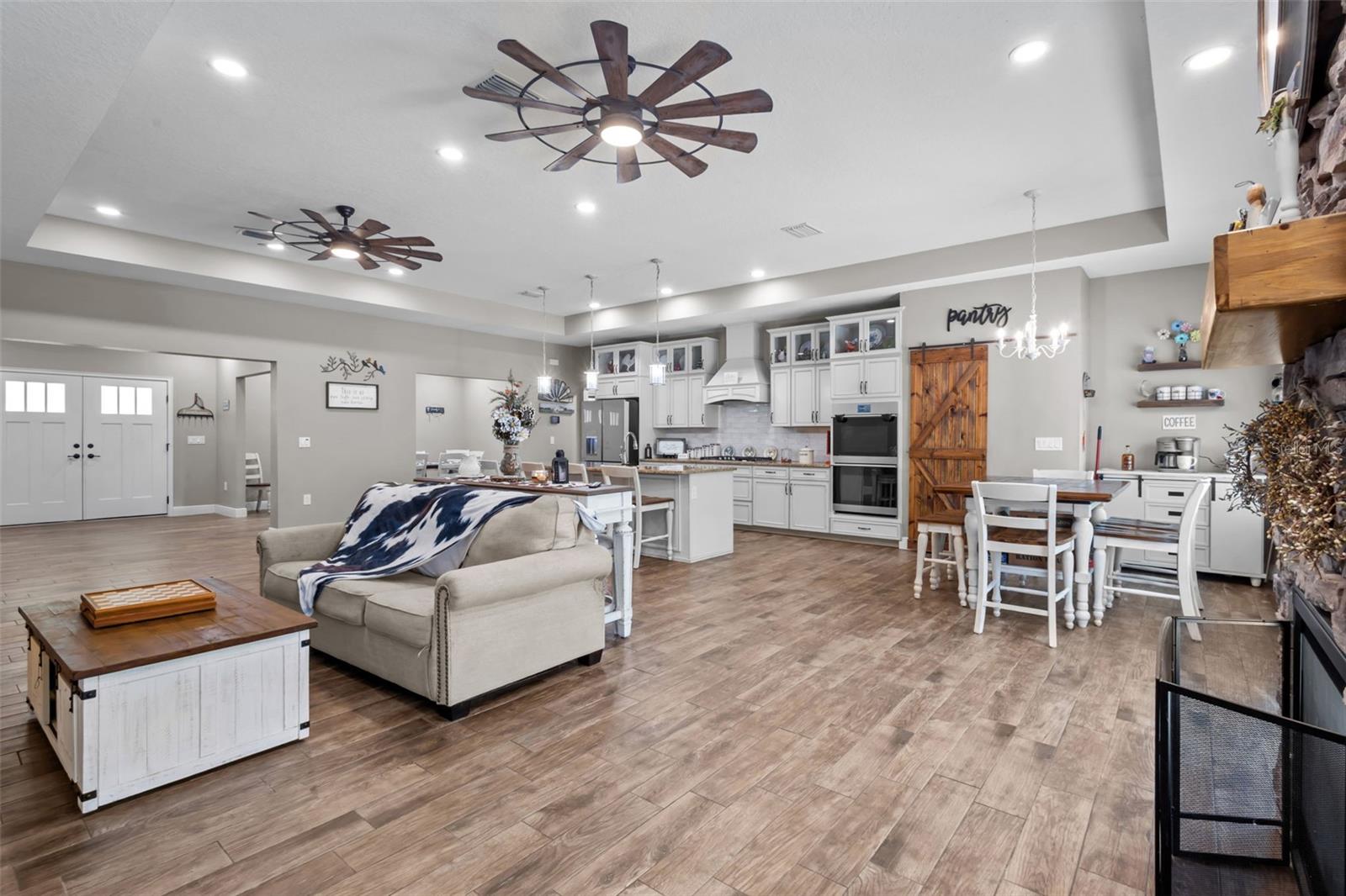One or more photo(s) has been virtually staged. Welcome to 12090 Thames Avenue, a stunning custom-built residence nestled on 2.3 acres in peaceful Weeki Wachee. This 4-bedroom, 2.5-bathroom home offers the perfect blend of luxury, functionality, and privacy, ideal for families, entertainers, or anyone seeking a serene lifestyle with room to grow. Step inside to a bright and airy open-concept living space filled with natural light and exquisite craftsmanship throughout. The heart of the home is a chef’s dream kitchen, featuring high-end GE Café Series glass appliances, double upper cabinets, a designer vent hood, and a double oven setup, perfect for hosting and everyday cooking alike. A spacious eat-in area provides the perfect spot for casual dining or morning coffee. Each of the four bedrooms offers generous space and comfort, while the elegant bathrooms boast stylish finishes. The home also includes a versatile hobby room and a dedicated laundry room, highlighting the flexibility of the modern floor plan designed to suit any lifestyle. Outside, enjoy the expansive front porch that stretches across the front of the home which is ideal for relaxing and taking in the tranquil surroundings. The fully usable 2.3-acre lot is zoned AG, offering endless possibilities for gardening, outdoor recreation, or even small-scale farming or livestock. Built in 2021, this property delivers modern energy-efficient systems and finishes while offering unmatched seclusion and privacy. Discover the lifestyle you've been searching for—schedule your private tour today!