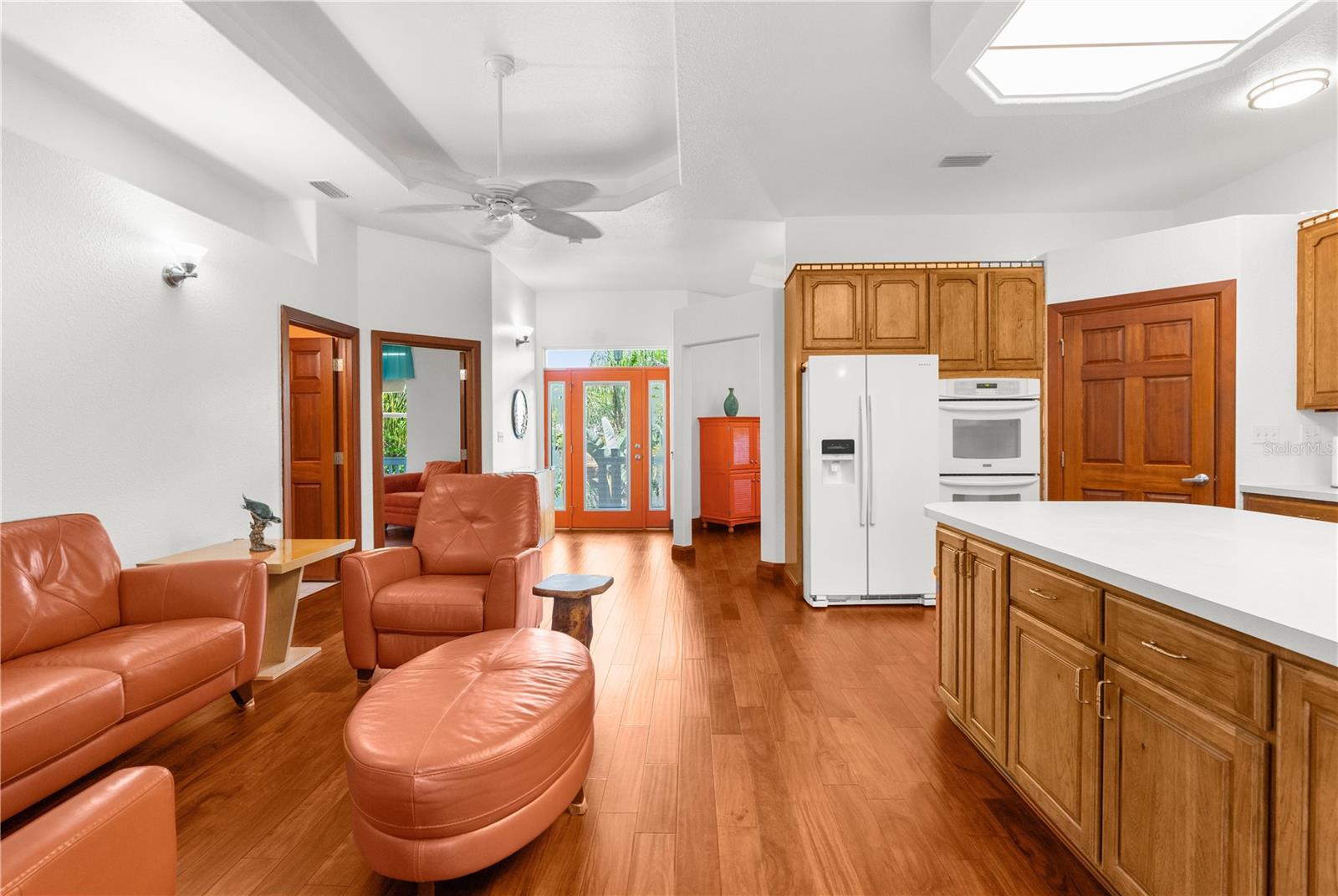This amazing Custom 3 bedroom 3 bath MOVE IN READY home is located in very friendly Palm Grove Colony, Weeki Wachee, 2 mi from the Gulf of Mexico. See beautiful sunsets, Mudd River & the spring from the back balcony or upper level screen porch with Winding Salt Creek view to the south. With only one neighbor on one side, this home offers amazing privacy! Navigate to Gulf of Mexico in 10 min with no bridges as the Mudd River flows into the Gulf with a scenic 15-min boat ride! Enjoy island hopping, scalloping, fresh AND salt fishing! See manatees, dolphins, raccoons, & sea otters in your own backyard. The Weeki Wachee River is about 10 min by boat, or you can kayak there by a shortcut through the marsh. Fish off your own PRIVATE 8x12 dock (carefree composite wood). Enjoy lush landscape with large oak & cedars & very little grass to mow. All rooms on the main floor have tray ceilings with lights, plant shelves, ceiling fans, newly painted WHITE ceilings and walls. The foyer leads into the living room & kitchen area with a triple patio door opening out onto a screened lanai! The kitchen has a 10 Ft. island, abundant custom hickory cabinets & soft close drawers, built-in newer appliances, & a walk-in pantry! The office features custom built-in hickory cabinets & bookshelves. The second bedroom has a double mirror closet. Stepping into the master bedroom, you will see 3 large windows that overlook the water, walk in mirrored closet, en-suite NEWLY REMODELED bathroom with dual sinks, a jetted tub & a walk-in shower! FRESHLY PAINTED Downstairs features a the 3rd bedroom, bathroom, kitchen, living room, laundry room, 2022 Mitsubishi Mini Split & waterside screen room! The 12x20’ cedar lighted pavilion with USB ports can be used as a lounging area to enjoy the sea breeze or for additional parking. An ADORABLE furnished ‘she’ shed built by the Amish is the centerpiece of the garden. The mermaid in front conveys along with the extra large stainless steel propane grill. There is a paved fire pit area & a dumbwaiter to effortlessly lift heavy items or groceries to the 2nd floor! This quality built energy efficient home has a lifelong steel roof with 140 mph wind rating, hurricane double pane insulated windows, concrete driveways, stucco exterior, storm shutters, low maintenance composite decking balconies on three sides of the home & stairways, & lots of exterior lighting! 2019 TRANE AC, poured concrete seawall (Covered in Pavers for extra beauty) with 70 Ft of waterfront, low maintenance composite floating dock, a stainless steel fish cleaning sink!! The 10 Ft. garage doors will accommodate a large boat or an RV & the garage also includes an AC window unit, workbench with sink, & lots of storage shelves. No HOA or CDD. A community boat ramp adjoins this property & private swimming lagoon is just a 5 min walk. Be sure to view the 3D VIRTUAL TOUR of MAIN level & there is ALSO a WALK THROUGH VIDEO of THE LOWER level. NOTE:5/‘24 updates are not shown in some pictures & video as they were taken prior. NEW UPDATES include beautiful acacia wood flooring throughout main level, freshly painted white walls and ceilings(formerly tangerine), new white tile in primary bathroom. Home is located with-in minutes of 5 area parks including Pine Island Beach, Bayport Pier, Rogers Park on Weeki Wachee River, 11000 acre Weeki Wachee preserve, and the world famous Weeki Wachee State Park with live performing underwater mermaids & yet still easily accessible to TIA.