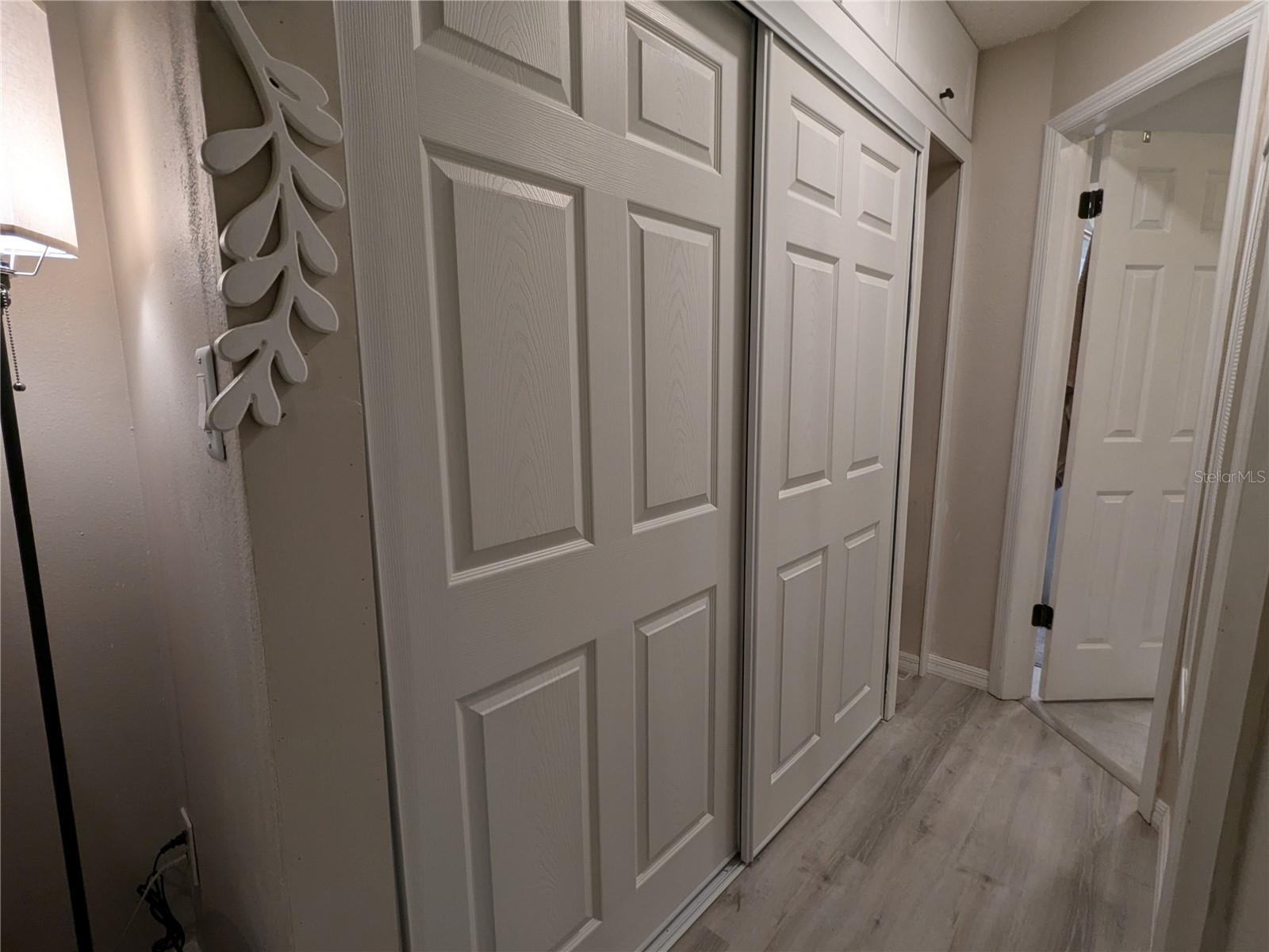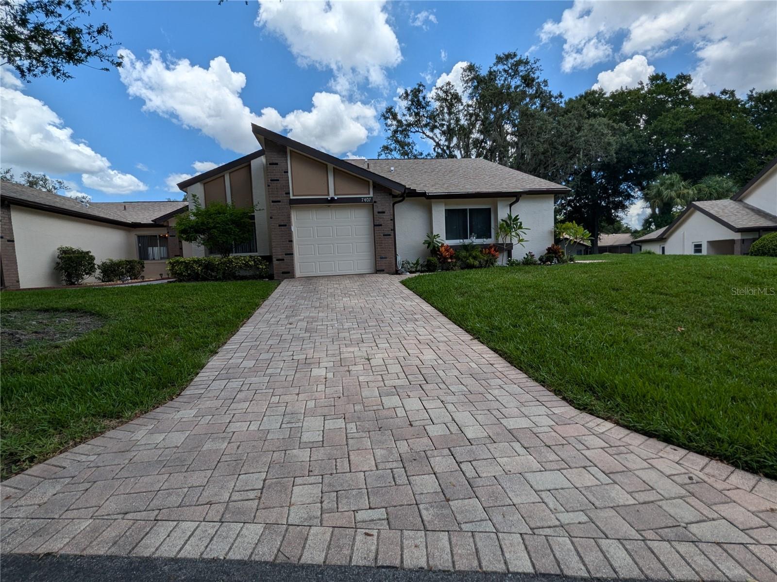 STUNNINGLY UPDATED VILLA YOU WON'T WANT TO MISS!! This GORGEOUS 3 BED 2 BATH END UNIT villa is just as beautiful in person as it is in the pictures. Open concept kitchen with updated lighting, 3 pantries featuring soft-close pull-out drawers, a cookie tray cabinet, and a spice rack cabinet for easy organization. SPACIOUS LIVING ROOM with high vaulted ceilings for a flexible layout. ITALIAN CERAMIC TILES adorn the walls of both bathrooms, complemented by soft-close cabinets. RECENT UPDATES include new windows in 2021, an A/C unit in 2022, a glass storm door, and a FIREPROOF GARAGE ENTRANCE DOOR. Enjoy the enclosed back patio as a cozy FLORIDA ROOM WITH AIR CONDITIONING and lovely views of lush trees. Skylights in the kitchen and patio add natural light to the space. HOA covers building insurance, cable, internet, lawn and pool care, as well as pavers on the driveway and walkway. All appliances, including the washer and dryer, are included in the sale. Impeccably maintained and resembling a model home – don't miss out on this opportunity!