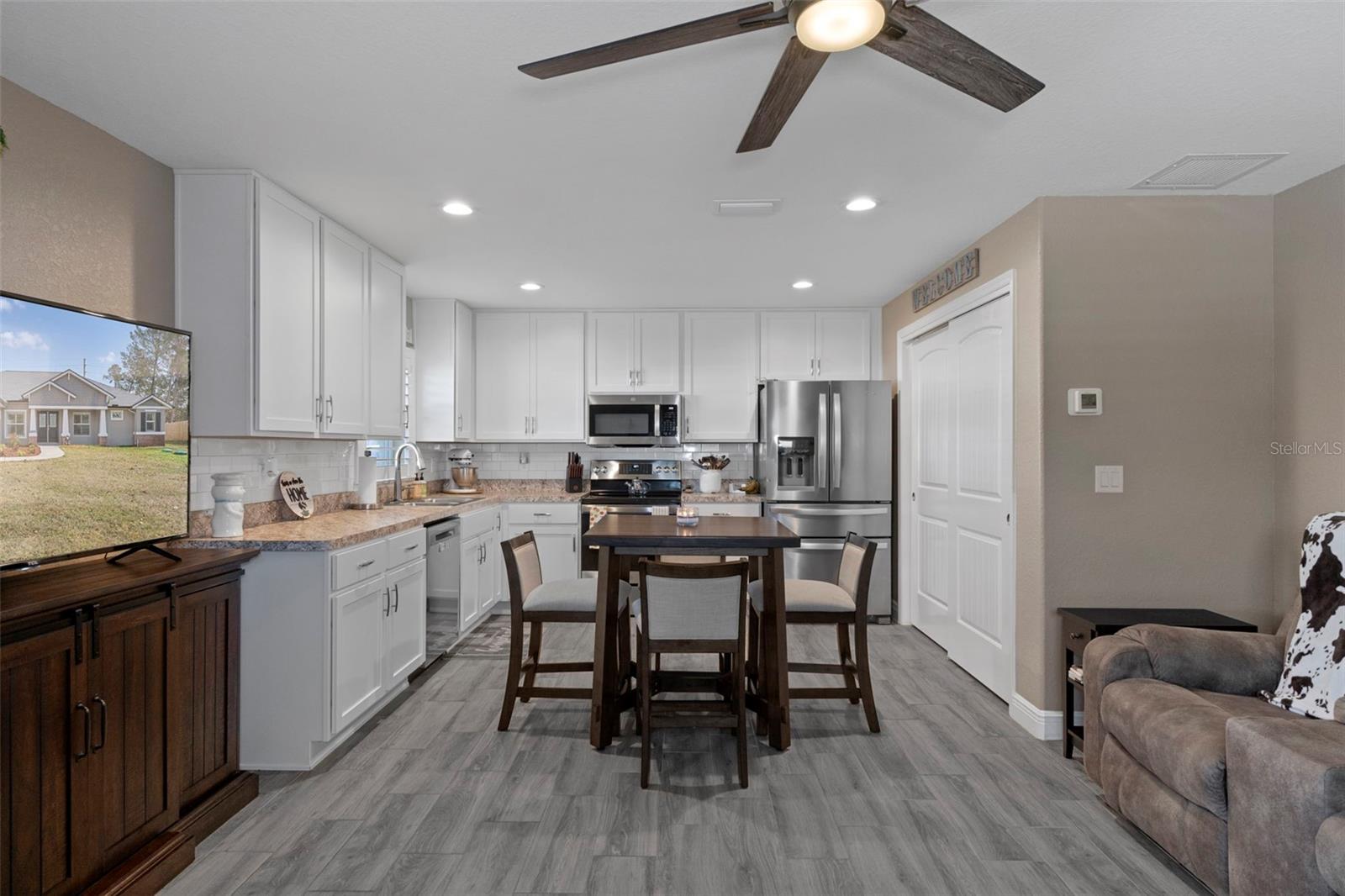 IN-LAW SUITE WITH A SEPARATE PRIVATE ENTRANCE NEW, NEW, NEW, or better than new! 2023/2024 Built home on .998 of an acre with an In-law-Suite! Yes, this Mother Inlaw Suite features its very own separate entrance, full kitchen, living room, washer & dryer, private bathroom, bedroom, and walk-in closet! The home's main living area features an open floor plan with a very large island/breakfast bar! THAT PANTRY! OH MY! And I can imagine the gatherings in store for the lucky buyers of this home! All three bedrooms in this area of the home are well-appointed. The Primary Bathroom features a shower with multiple jets and heads for a relaxing spa atmosphere. Enjoy the extra large screened lanai with the large Hot Tub to complete your relaxation! Storage?? Check the closet in the laundry room!! There is storage throughout this home that gives lots of versatility. The attached side-load garage has plenty of driveway space for guests as well. Need an extra garage space? then take a look at the additional garage/workshop for your toys or hobbies. Call today for your tour.