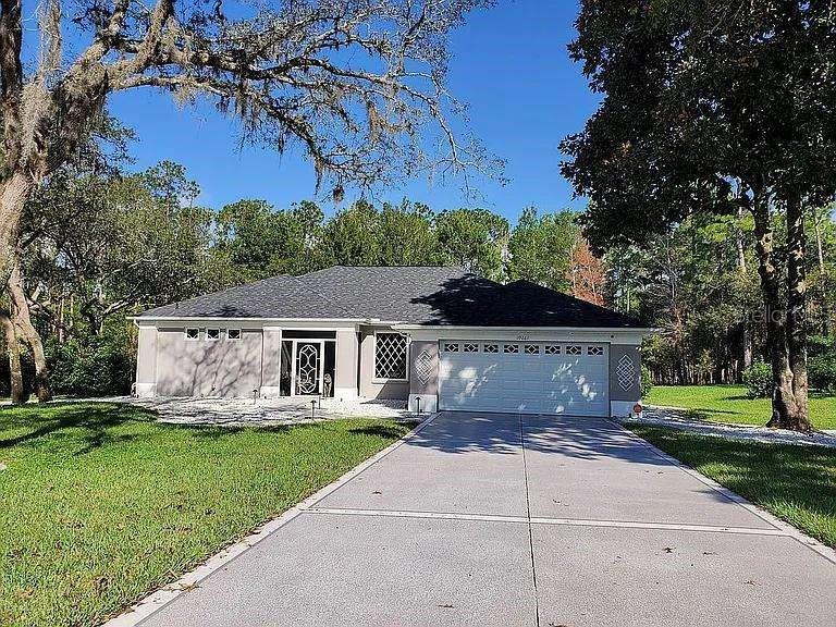 This home is the most peaceful oasis in Woodland Waters. 1.80 acres of forest with wildlife, all species of birds and butterflies. Large double paned hurricane strength windows overlook the lush green yard beautiful landscaping with the forest the icing on top. The homeowner clearly loves this home and has added many updates with new top of the line Samsung Elite stainless appliances, custom led accent lighting throughout the home, electric fireplace and a wonderful brand new $6,000 heat pump for the pool that heats up so fast and so warm. The guest bath has been completely renovated with a new vanity, all new fixtures and tiled expanded shower with a magic mirror that plays music, changes colors and shows everyone in their best light. All 4 bedrooms are spacious with a split floorplan that can easily accomondate a multi generational family. The owners suite includes a walkin closet and bath with a separate shower and garden tub. All countertops are granite and some of the cabinetry is new. The sunroom has new carpet as well as a new french door and sliders that open to the heated pool. The brand new double door glass entry doors add such luxury to the home. Dont let fedex drop packages out in the open. This home includes a screened and pavered entry and walkway. The garage is spacious with a newer hurricane strength garage door and pull down stairs for extra storage. Mature hedges award privacy from the distant neighbors. If you don't see this home you will miss out. Some lucky family will get the buy of a lifetime in this beautiful deed restricted neighborhood that includes a private park and picnic area along with tennis courts and a boat launch. The roof is 2020 and trane ac is in great condition. The home includes a vivint security system and exterior motion lights. Schedule a walk through today if you want to see the best deal in Woodland Waters.