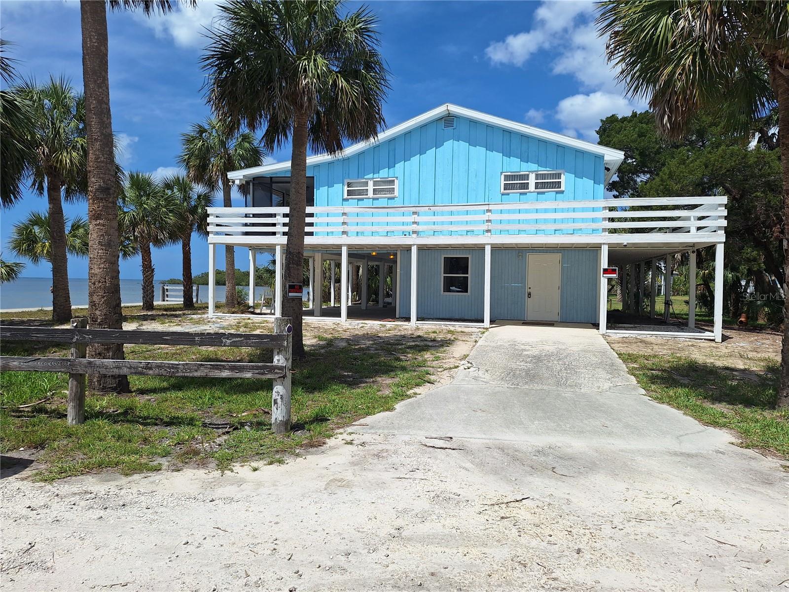 Welcome home to Pine Island! One of the last Islands offering Old Florida Charm! Sitting DIRECTLY ON THE GULF OF AMERICA, WITH 126 FEET OF WONDERFUL PRIVATE BEACH, is where you will find this charming, updated KEY WEST Style Stilted Home offering great views from all the way around it. This 2 Bedroom 2 Bath home has a lovely lower-level Game Room with picturesque beach view, which could become a Giant Primary Bedroom Suite easily, if desired, giving you a 3rd Bedroom. Newer Windows throughout. Upstairs there's a Big Eat in Kitchen with Wood Cabinets, Granite Counter Tops, Stainless Steel Appliances, Beachfront Living Room and Main Bedroom. COMPLETELY FURNISHED AND TURN-KEY READY FOR IMMEDIATE USE! There is a wonderful 34 ft long Screened Lanai upstairs offering Western direct water views and AWESOME SUNSETS!! There are Wood Decks that wrap around the entire upstairs! Incredible views!! You are sure to enjoy the back yard along the beach as well as the natural palm tree setting along the rest of the .33Acre Lot. There is a Huge 19x34 ft Covered Open Patio to have great family fun on. Room to pull the kayaks and all your water toys out of the sand on this huge two lot parcel. There is a Seawall and Fire Pit area too! NO HOA!! West of the Weeki Wachee Park and past the Marshland and Grassy Tundra is where you will find Pine Island. DON'T LET THE CLOSED SIGN STOP YOU!! ONLY THE PUBLIC PARK IS CLOSED. PRIVATE FINANCING FOR RIGHT CANDIDATE!
