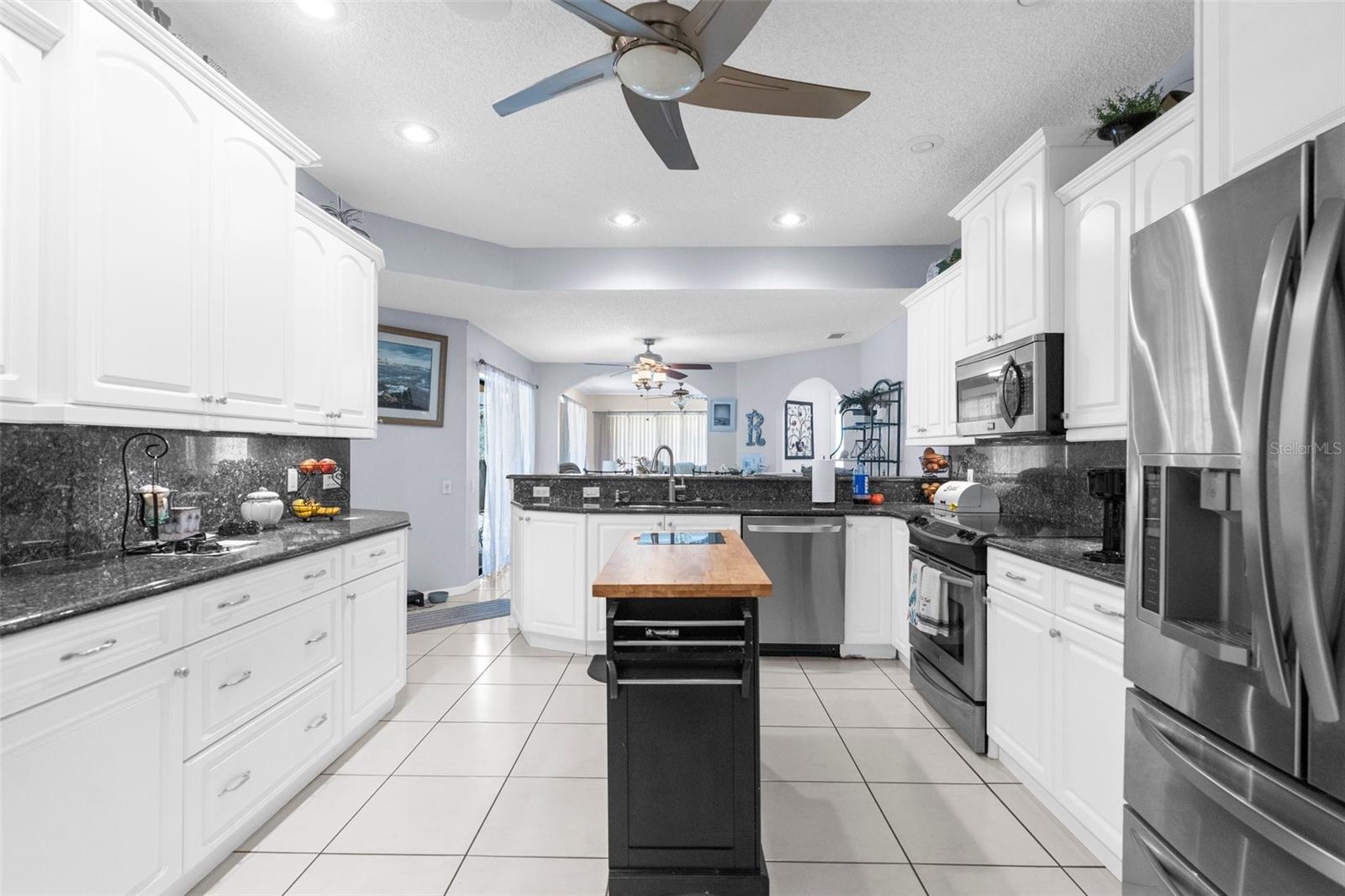 HUGE PRICE REDUCTION. Seller WANTS TO SELL! This is the opportunity you have been waiting for. Seller is open to creative financing, lease to own, and more! Secure this stunning resort-style home on a rare double lot overlooking the 16th tee of GlenLakes Golf & Country Club at a dramatically improved new price. This is an absolute steal for the space, features, and location offered. With the spacious interior, screened lanai, and oversized garage, you have nearly 3,700 total square feet to enjoy. Live the vacation lifestyle on your own terms. The social membership is completely optional, so you decide when to utilize the community pool, clubhouse, fitness center, golf, and pickleball. Right within the neighborhood, you already have immediate access to a dog park, play area, bocce, horseshoes, shuffleboard, basketball, and more. Inside, discover over 2,300 square feet of vibrant, well-cared-for living space. High ceilings, elegant crown molding, and an open layout amplify the abundant natural light. Seamless laminate flooring and tile enhance the main areas, while a whole-house audio system and all-new ceiling fans provide ultimate everyday comfort. The great room and formal dining area will take your breath away with panoramic fairway views framed by classic French doors. The chef's kitchen is a showstopper. It features stainless steel appliances, granite counters with a matching backsplash, and impressive 42-inch staggered cabinets. Storage is unbeatable with two pantries, including one equipped with its own freezer. A breakfast bar and sunny breakfast nook flow effortlessly into the family room, creating the perfect gathering hub. Retreat behind double French doors to the massive primary suite, boasting a tray ceiling and an oversized walk-in closet. The fully accessible ensuite bath offers dual vanities, a wheelchair-friendly shower, and a brilliantly discreet laundry area. Total privacy is ensured with two additional guest bedrooms and a spacious full bath on the opposite side of the residence. A separate executive-style office sits adjacent to the primary suite for ideal remote work conditions. Your outdoor living game just leveled up. Entertaining is spectacular on the nearly 1,000-square-foot screened lanai, finished with pavers and offering sweeping golf course vistas. Car enthusiasts and hobbyists will be amazed by the oversized garage. With front and side entries, it easily fits multiple cars, a golf cart, and even a 20-foot boat. This incredible space also includes abundant cabinetry, an automatic door opener, a handy half bath, and an extra oven perfect for holiday cooking. This home is loaded with premium updates and features for total peace of mind, including whole-house handicap accessibility, multiple surrounding sidewalks, a central vacuum system, and a newer 2018 roof. Just installed in 2025 are a brand-new HVAC system, and a new Radiant barrier to reduce heat gain and improve energy costs. At this new price, this property will move fast. Arrange your private showing today and grab the best deal in GlenLakes. Follow this link to view property Video: https://apex-imaging-media-1.aryeo.com/videos/0199a669-1bb1-71ae-92df-7e18b9107cae?v=218 All information in the MLS is intended to be accurate; buyer and buyer's agent to verify. Appt. required.